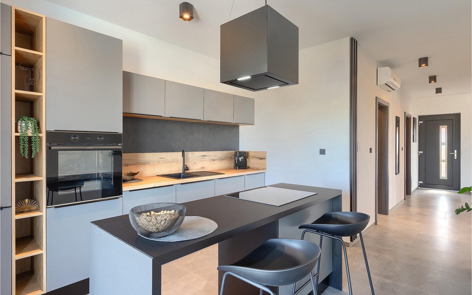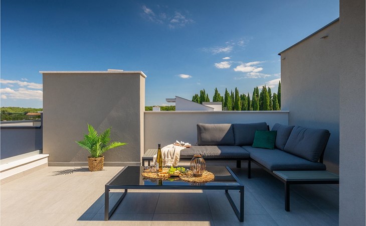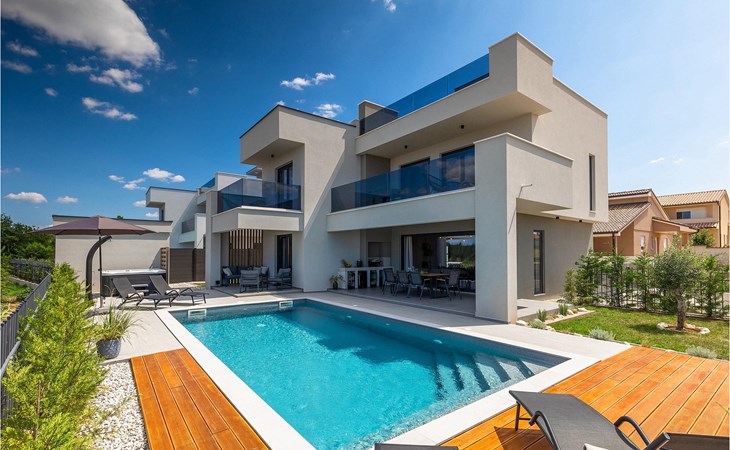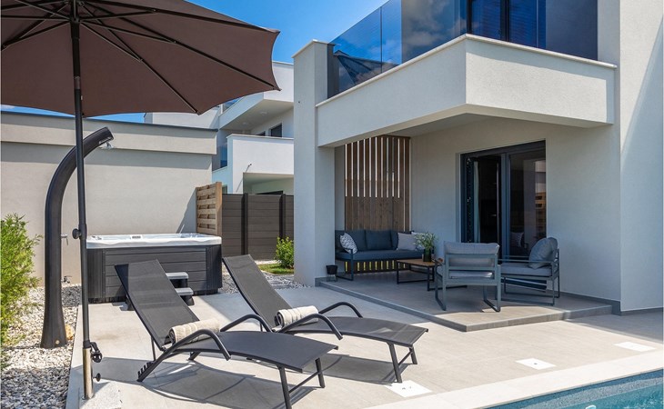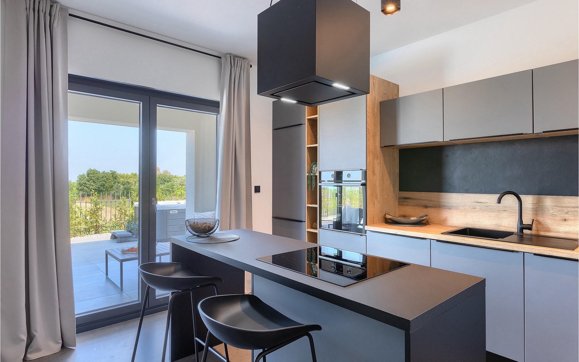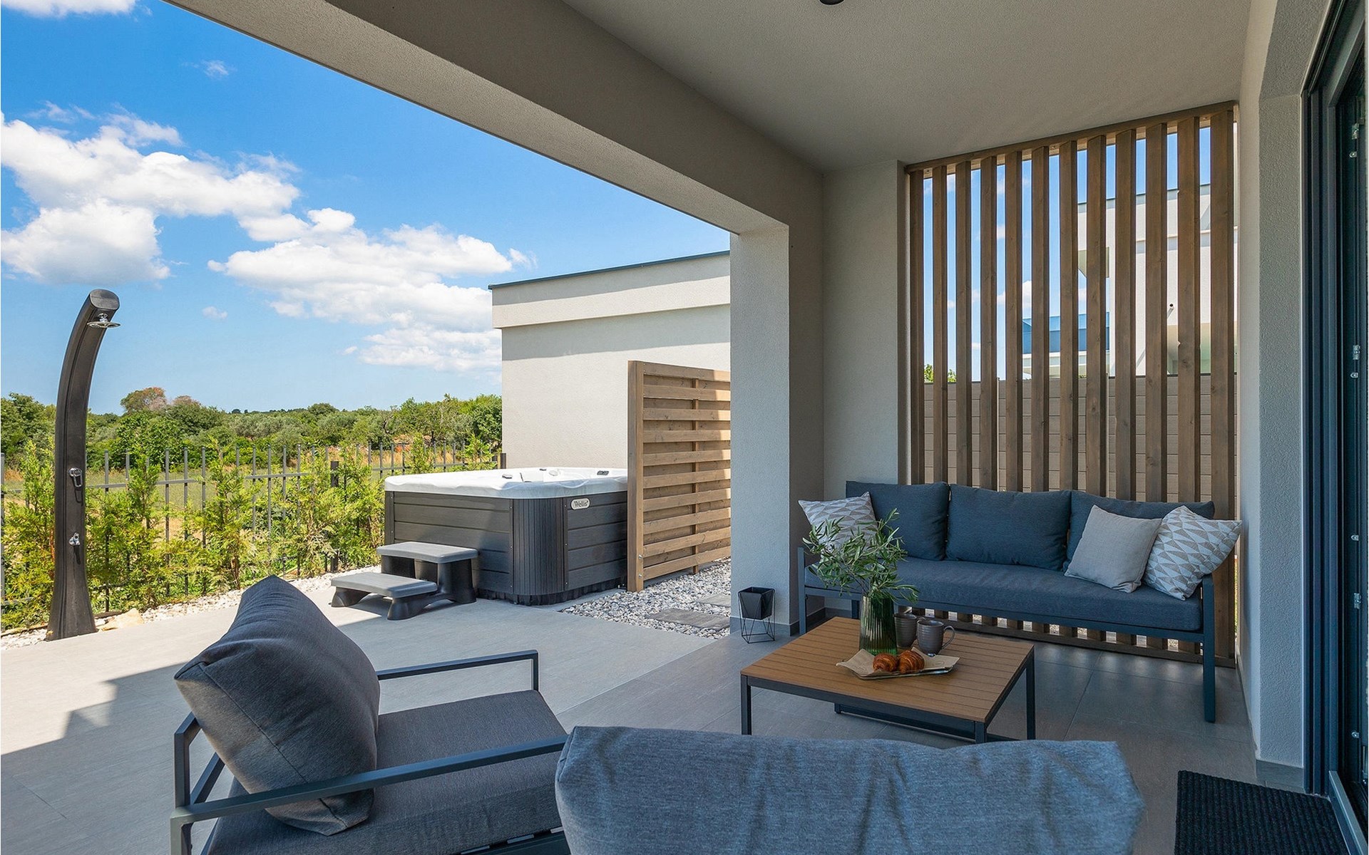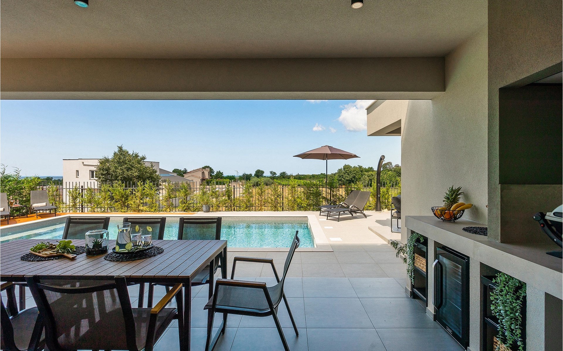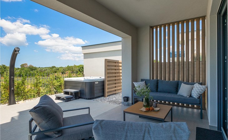 Villa IVaLA is een prachtige familievilla in de buurt van Pula, ideaal voor een droomvakantie met familie en vrienden. Voor de villa ligt een prachtig zwembad van 32 m2. Tijdens de zomerhitte vind je verfrissing in het zwembad, terwijl zonaanbidders kunnen genieten van de Istrische zon op de ligstoelen direct bij het zwembad. Ontspan in de jacuzzi buiten. Geniet van Istrische gerechten bereid op de barbecue in een overdekte ruimte aan de voorkant van de villa, waar een eettafel voor 8 personen staat. De jongste gasten kunnen zich vermaken op de kinderspeelplaats, die is uitgerust met schommels en klimrekken. Maar ook binnen in de villa is er genoeg te beleven. Op het terras op de eerste verdieping van de villa kun je een potje tafelvoetbal spelen. Op de begane grond van de villa is een gezellige woonkamer met een prachtig uitzicht op het zwembad. In de open ruimte is er ook een uitgeruste keuken met alles wat je nodig hebt om heerlijke maaltijden te bereiden en een eetkamer met 6 zitplaatsen. Op dezelfde verdieping is er een badkamer en een apart toilet. De slaapkamers bevinden zich op de eerste verdieping. De eerste slaapkamer heeft een tweepersoonsbed en een en-suite badkamer. De andere twee slaapkamers hebben tweepersoonsbedden en er is een aparte badkamer op deze verdieping. Alle slaapkamers hebben airconditioning, TV en een eigen terras waar je 's ochtends van je koffie kunt genieten terwijl je het prachtige uitzicht op zee bewondert. Het bijzondere aan de villa is het dakterras, dat zich op de tweede verdieping bevindt. Geniet van het unieke uitzicht op de Brijuni-eilanden en de prachtige zee, die je de adem zal benemen. Mis een unieke vakantie in Villa IVaLA met panoramisch uitzicht niet en geniet van de sfeer van het charmante dorpje Galizana. Galizana is een dorp in Istrië tussen Vodnjan en Pula. Galizana heeft een rijke geschiedenis en traditie die teruggaat tot de oudheid. De lokale bevolking zal je verrukken met hun producten. Mis het proeven van extra vergine olijfolie, schapenkaas en andere lokale producten niet. Vermaak je tijdens lokale evenementen zoals Galicische nachten en folklore. Mis een bezoek aan Vodnjan met zijn rijke gastronomische aanbod niet. Verken Vodnjan met zijn interessante muurschilderingen, de kerk van St. Foska, waar zich drie kazuns bevinden, traditionele onderkomens gemaakt van Istrische steen. Natuurliefhebbers zullen genieten van het dorp Peroj en het prachtige uitzicht op het Fazana kanaal en de Brijuni archipel bewonderen. Een niet te missen bestemming is de grootste Istrische stad Pula, waar u de Pula Arena, de Tempel van Augustus, de Gouden Poort en vele andere culturele en historische monumenten kunt bezoeken. Aan het einde van je Istrische avontuur verken je de Brijuni-archipel met het beroemde Brijuni Nationaal Park en zijn safaripark.