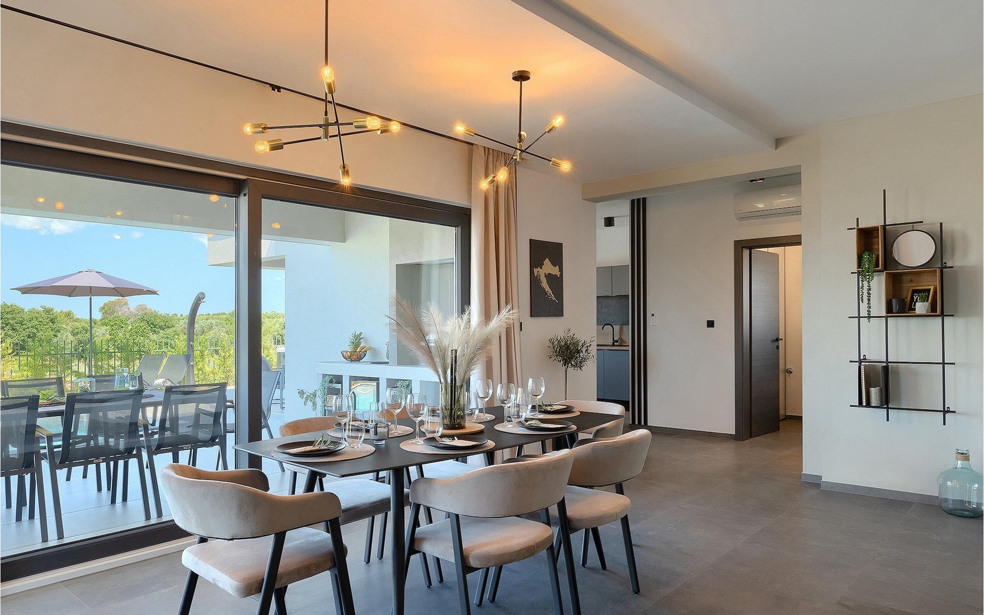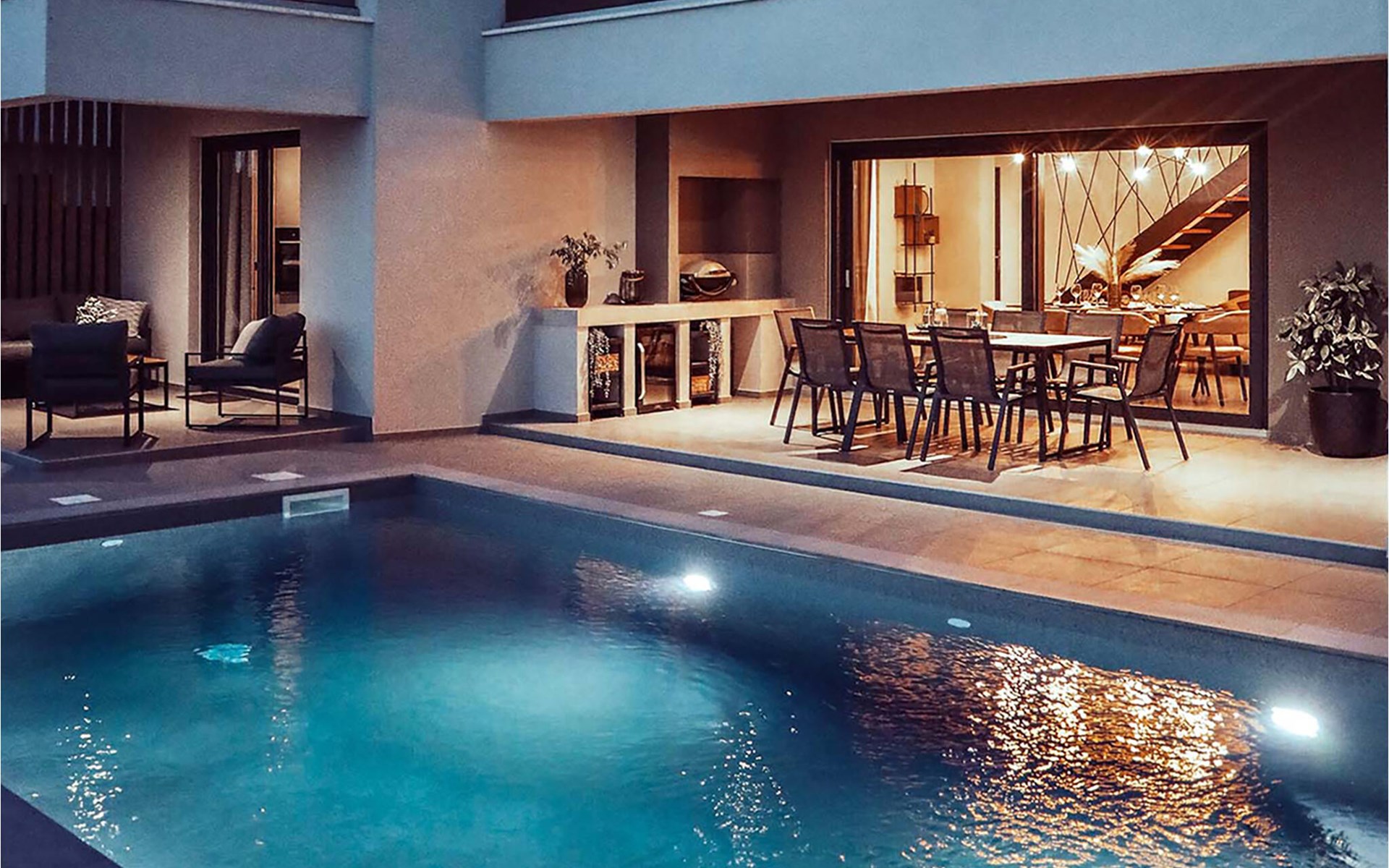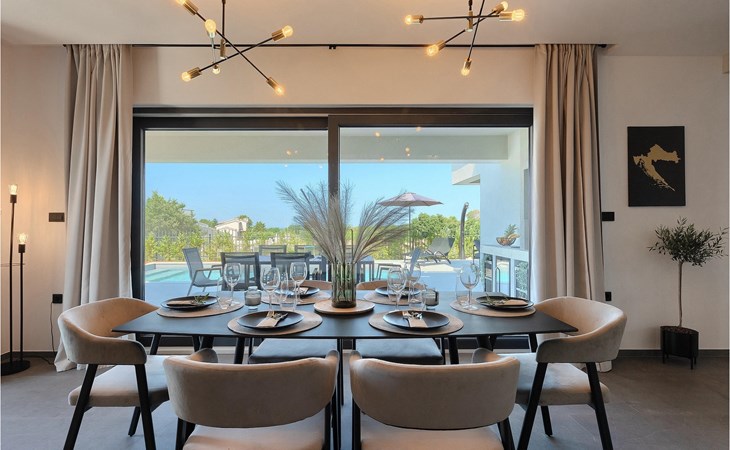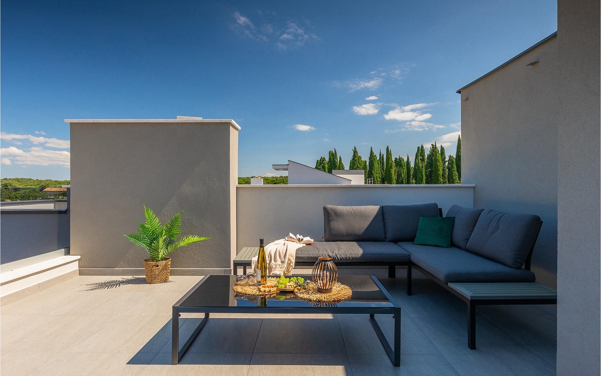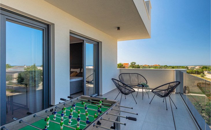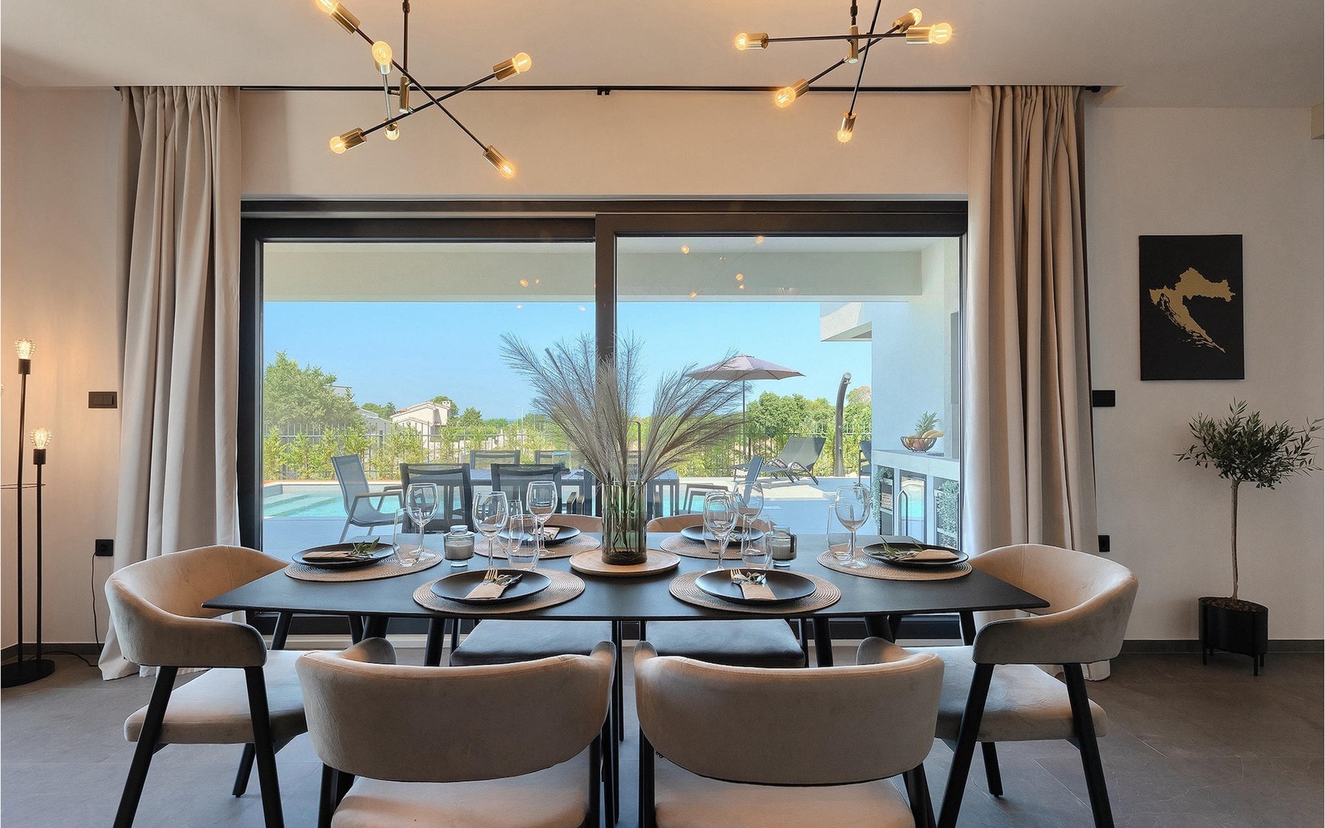 Villa IVaLA is een prachtige familievilla in de buurt van Pula, ideaal voor een droomvakantie met familie en vrienden. Voor de villa ligt een prachtig zwembad van 32 m2. Tijdens de zomerhitte vind je verfrissing in het zwembad, terwijl zonaanbidders kunnen genieten van de Istrische zon op de ligstoelen direct bij het zwembad. Ontspan in de jacuzzi buiten. Geniet van Istrische gerechten bereid op de barbecue in een overdekte ruimte aan de voorkant van de villa, waar een eettafel voor 8 personen staat. De jongste gasten kunnen zich vermaken op de kinderspeelplaats, die is uitgerust met schommels en klimrekken. Maar ook binnen in de villa is er genoeg te beleven. Op het terras op de eerste verdieping van de villa kun je een potje tafelvoetbal spelen. Op de begane grond van de villa is een gezellige woonkamer met een prachtig uitzicht op het zwembad. In de open ruimte is er ook een uitgeruste keuken met alles wat je nodig hebt om heerlijke maaltijden te bereiden en een eetkamer met 6 zitplaatsen. Op dezelfde verdieping is er een badkamer en een apart toilet. De slaapkamers bevinden zich op de eerste verdieping. De eerste slaapkamer heeft een tweepersoonsbed en een en-suite badkamer. De andere twee slaapkamers hebben tweepersoonsbedden en er is een aparte badkamer op deze verdieping. Alle slaapkamers hebben airconditioning, TV en een eigen terras waar je 's ochtends van je koffie kunt genieten terwijl je het prachtige uitzicht op zee bewondert. Het bijzondere aan de villa is het dakterras, dat zich op de tweede verdieping bevindt. Geniet van het unieke uitzicht op de Brijuni-eilanden en de prachtige zee, die je de adem zal benemen. Mis een unieke vakantie in Villa IVaLA met panoramisch uitzicht niet en geniet van de sfeer van het charmante dorpje Galizana. Galizana is een dorp in Istrië tussen Vodnjan en Pula. Galizana heeft een rijke geschiedenis en traditie die teruggaat tot de oudheid. De lokale bevolking zal je verrukken met hun producten. Mis het proeven van extra vergine olijfolie, schapenkaas en andere lokale producten niet. Vermaak je tijdens lokale evenementen zoals Galicische nachten en folklore. Mis een bezoek aan Vodnjan met zijn rijke gastronomische aanbod niet. Verken Vodnjan met zijn interessante muurschilderingen, de kerk van St. Foska, waar zich drie kazuns bevinden, traditionele onderkomens gemaakt van Istrische steen. Natuurliefhebbers zullen genieten van het dorp Peroj en het prachtige uitzicht op het Fazana kanaal en de Brijuni archipel bewonderen. Een niet te missen bestemming is de grootste Istrische stad Pula, waar u de Pula Arena, de Tempel van Augustus, de Gouden Poort en vele andere culturele en historische monumenten kunt bezoeken. Aan het einde van je Istrische avontuur verken je de Brijuni-archipel met het beroemde Brijuni Nationaal Park en zijn safaripark.