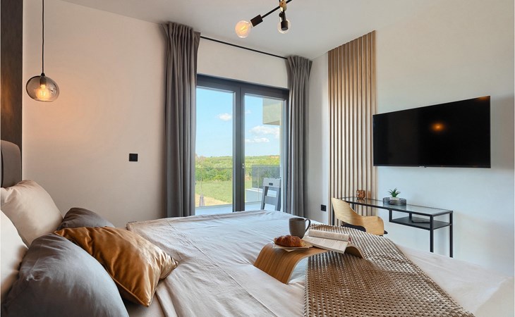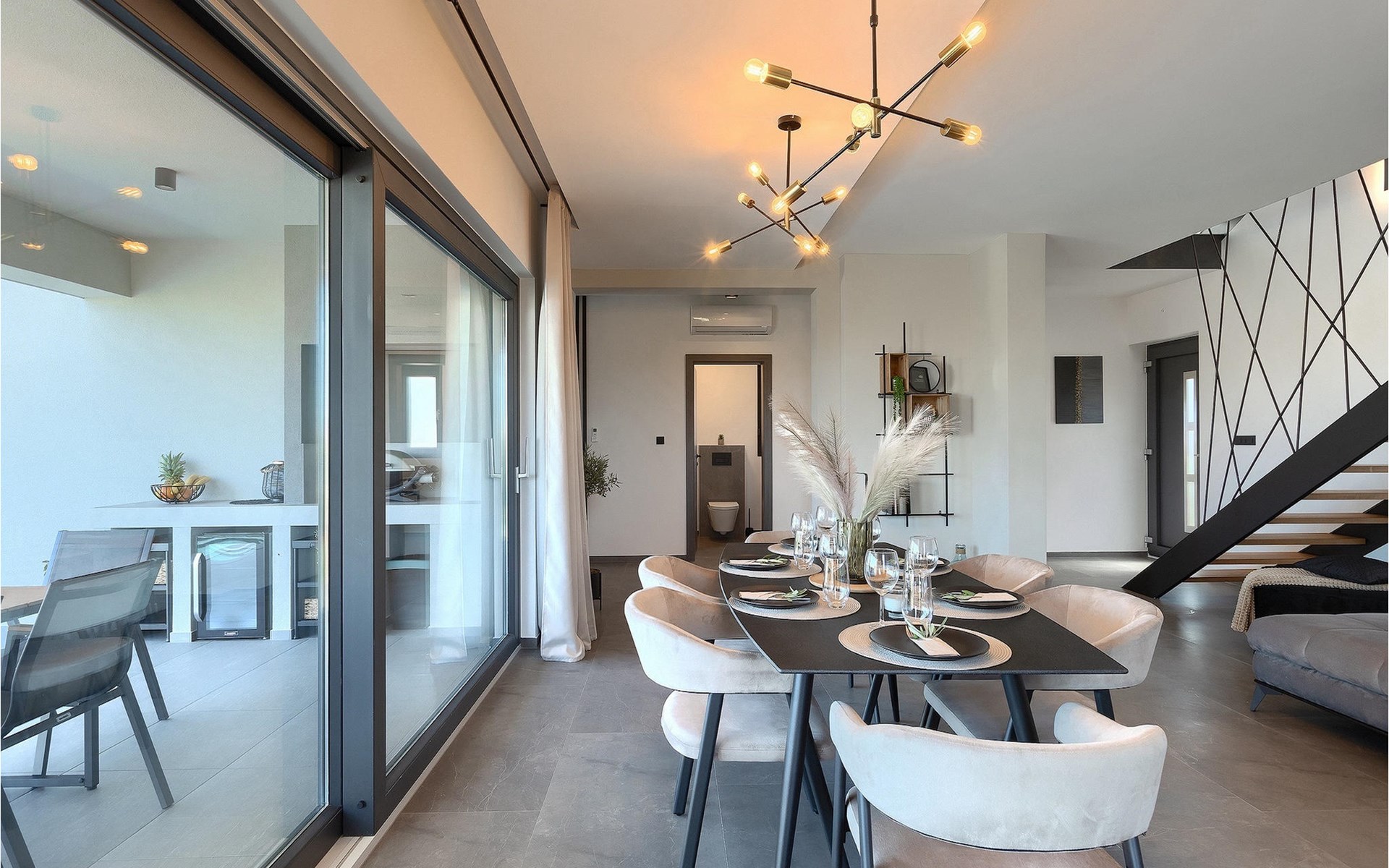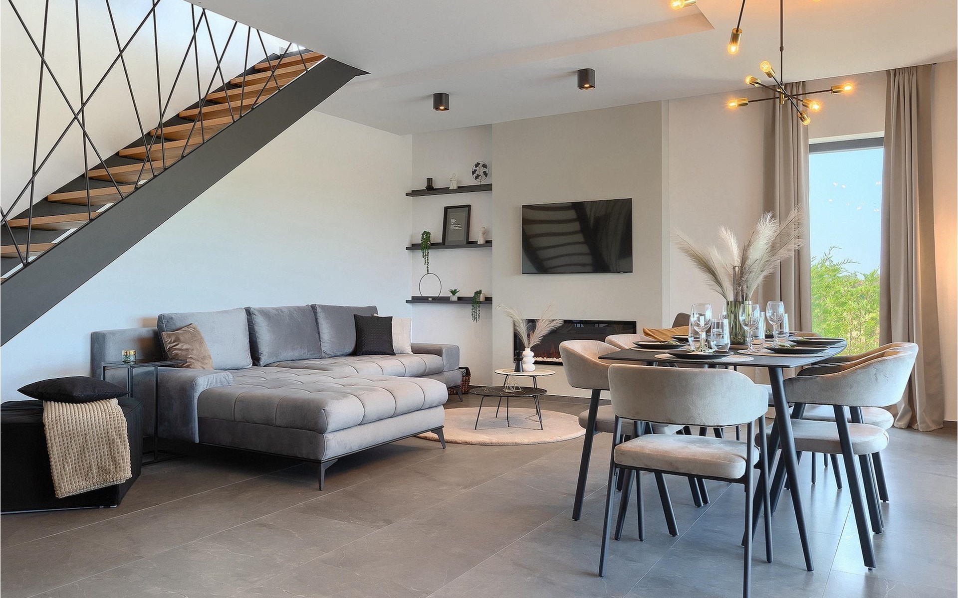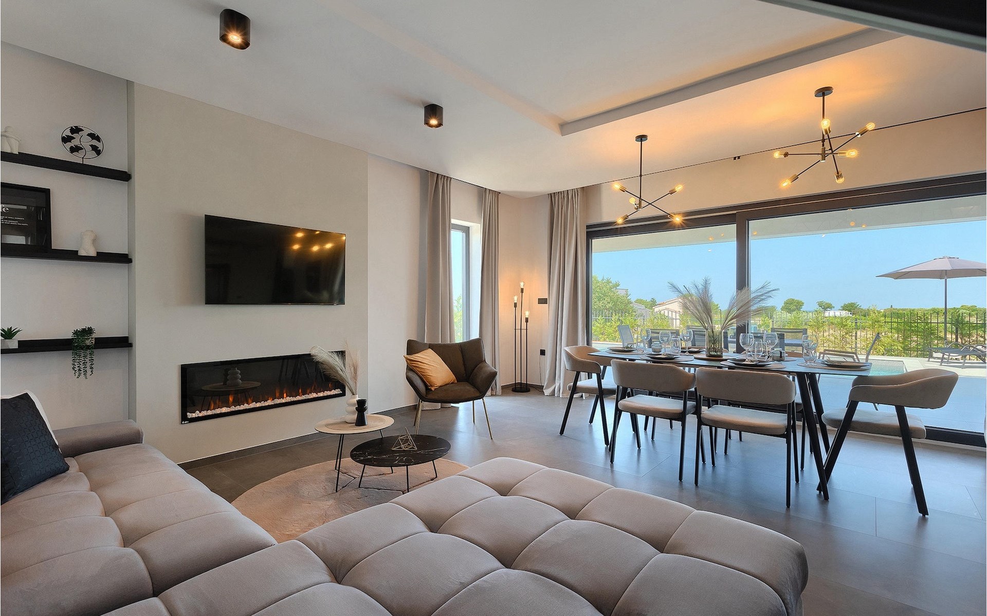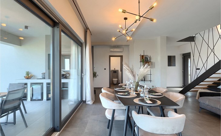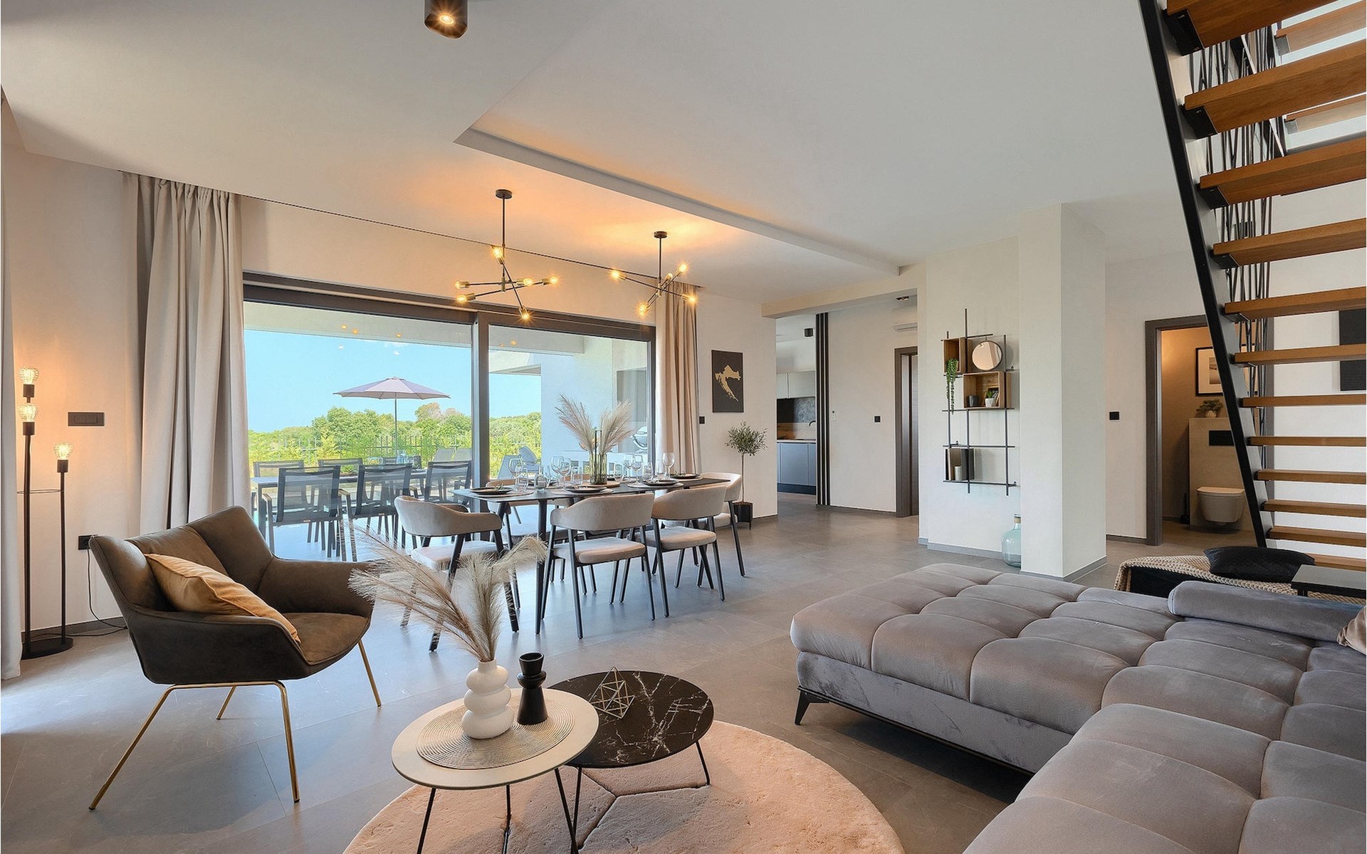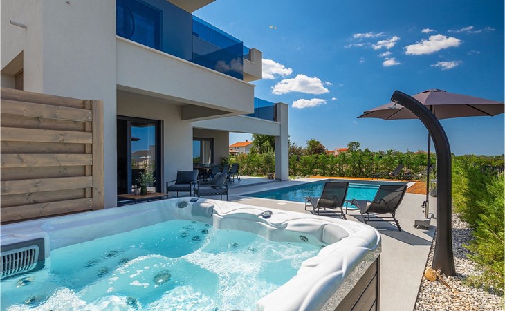 Villa IVaLA is een prachtige familievilla in de buurt van Pula, ideaal voor een droomvakantie met familie en vrienden. Voor de villa ligt een prachtig zwembad van 32 m2. Tijdens de zomerhitte vind je verfrissing in het zwembad, terwijl zonaanbidders kunnen genieten van de Istrische zon op de ligstoelen direct bij het zwembad. Ontspan in de jacuzzi buiten. Geniet van Istrische gerechten bereid op de barbecue in een overdekte ruimte aan de voorkant van de villa, waar een eettafel voor 8 personen staat. De jongste gasten kunnen zich vermaken op de kinderspeelplaats, die is uitgerust met schommels en klimrekken. Maar ook binnen in de villa is er genoeg te beleven. Op het terras op de eerste verdieping van de villa kun je een potje tafelvoetbal spelen. Op de begane grond van de villa is een gezellige woonkamer met een prachtig uitzicht op het zwembad. In de open ruimte is er ook een uitgeruste keuken met alles wat je nodig hebt om heerlijke maaltijden te bereiden en een eetkamer met 6 zitplaatsen. Op dezelfde verdieping is er een badkamer en een apart toilet. De slaapkamers bevinden zich op de eerste verdieping. De eerste slaapkamer heeft een tweepersoonsbed en een en-suite badkamer. De andere twee slaapkamers hebben tweepersoonsbedden en er is een aparte badkamer op deze verdieping. Alle slaapkamers hebben airconditioning, TV en een eigen terras waar je 's ochtends van je koffie kunt genieten terwijl je het prachtige uitzicht op zee bewondert. Het bijzondere aan de villa is het dakterras, dat zich op de tweede verdieping bevindt. Geniet van het unieke uitzicht op de Brijuni-eilanden en de prachtige zee, die je de adem zal benemen. Mis een unieke vakantie in Villa IVaLA met panoramisch uitzicht niet en geniet van de sfeer van het charmante dorpje Galizana. Galizana is een dorp in Istrië tussen Vodnjan en Pula. Galizana heeft een rijke geschiedenis en traditie die teruggaat tot de oudheid. De lokale bevolking zal je verrukken met hun producten. Mis het proeven van extra vergine olijfolie, schapenkaas en andere lokale producten niet. Vermaak je tijdens lokale evenementen zoals Galicische nachten en folklore. Mis een bezoek aan Vodnjan met zijn rijke gastronomische aanbod niet. Verken Vodnjan met zijn interessante muurschilderingen, de kerk van St. Foska, waar zich drie kazuns bevinden, traditionele onderkomens gemaakt van Istrische steen. Natuurliefhebbers zullen genieten van het dorp Peroj en het prachtige uitzicht op het Fazana kanaal en de Brijuni archipel bewonderen. Een niet te missen bestemming is de grootste Istrische stad Pula, waar u de Pula Arena, de Tempel van Augustus, de Gouden Poort en vele andere culturele en historische monumenten kunt bezoeken. Aan het einde van je Istrische avontuur verken je de Brijuni-archipel met het beroemde Brijuni Nationaal Park en zijn safaripark.