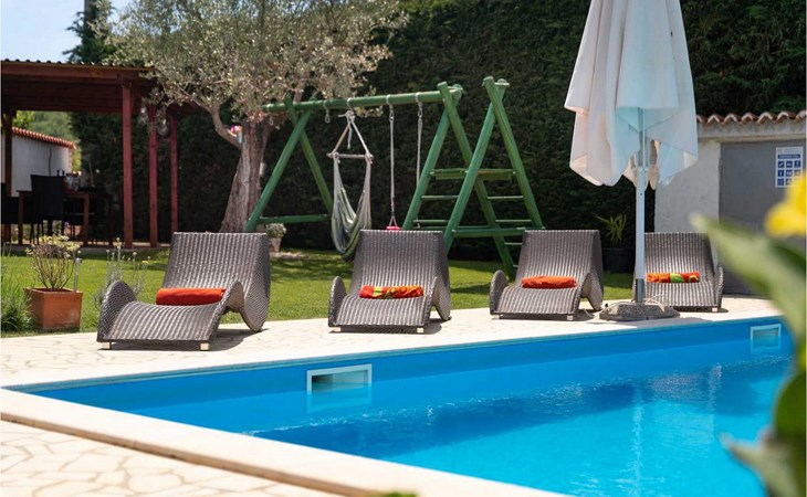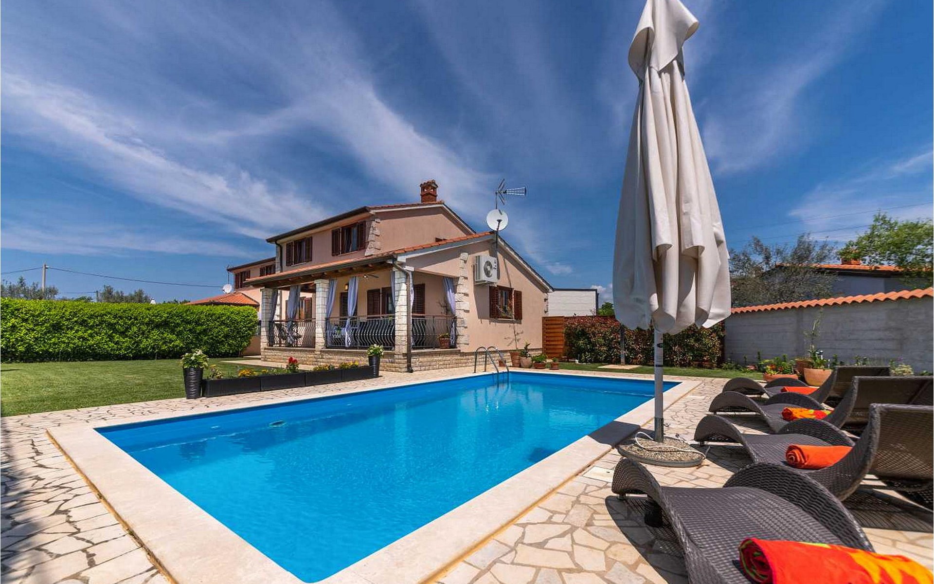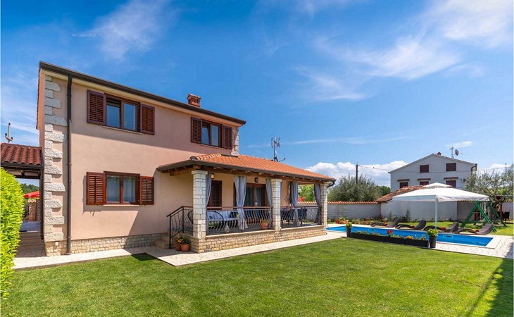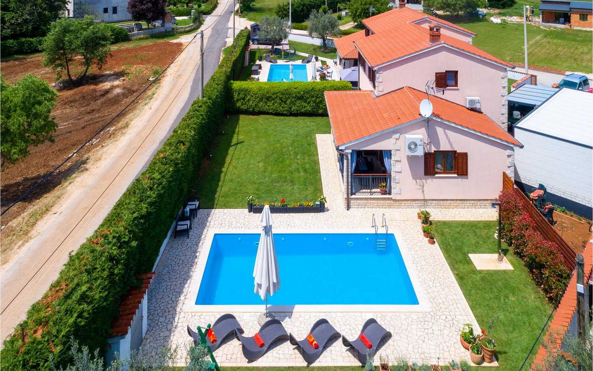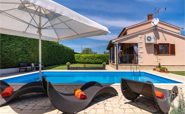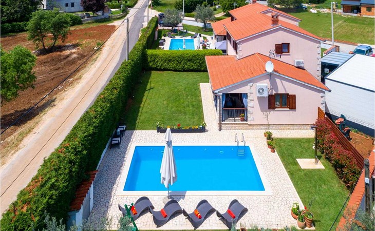 Vakantiehuis voor 6-8 personen met een bewoonbare oppervlakte van 135 m², op de begane grond is er een woonkamer met SAT-TV en slaapbank voor 2 personen, eettafel, mediaruimte met slaapbank voor 1 persoon en SAT-TV, volledig uitgeruste keuken, een douche/toilet en een kleinere bijkeuken met wasmachine. Vanuit de woonkamer is er toegang tot het terras met eettafel en gezellige zitplaatsen met uitzicht op het zwembad. Op de eerste verdieping zijn er drie slaapkamers, twee met tweepersoonsbedden en een met twee eenpersoonsbedden, een douche/toilet. Het huis heeft airconditioning op beide verdiepingen. Het interieur en de tuin zijn gedeeltelijk opgeknapt voor het zomerseizoen van 2020.