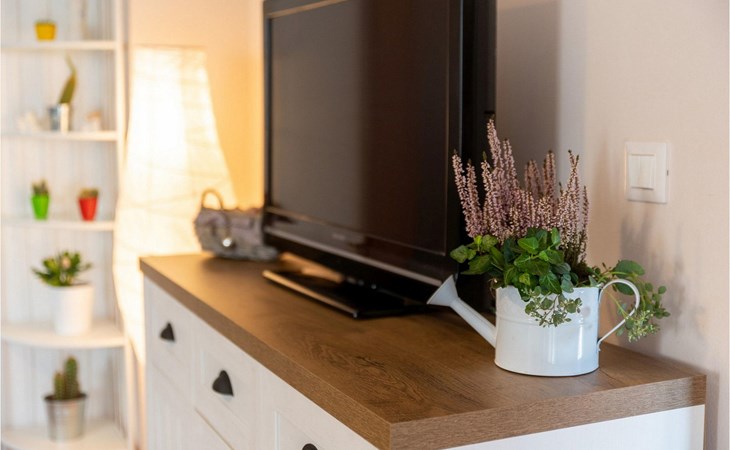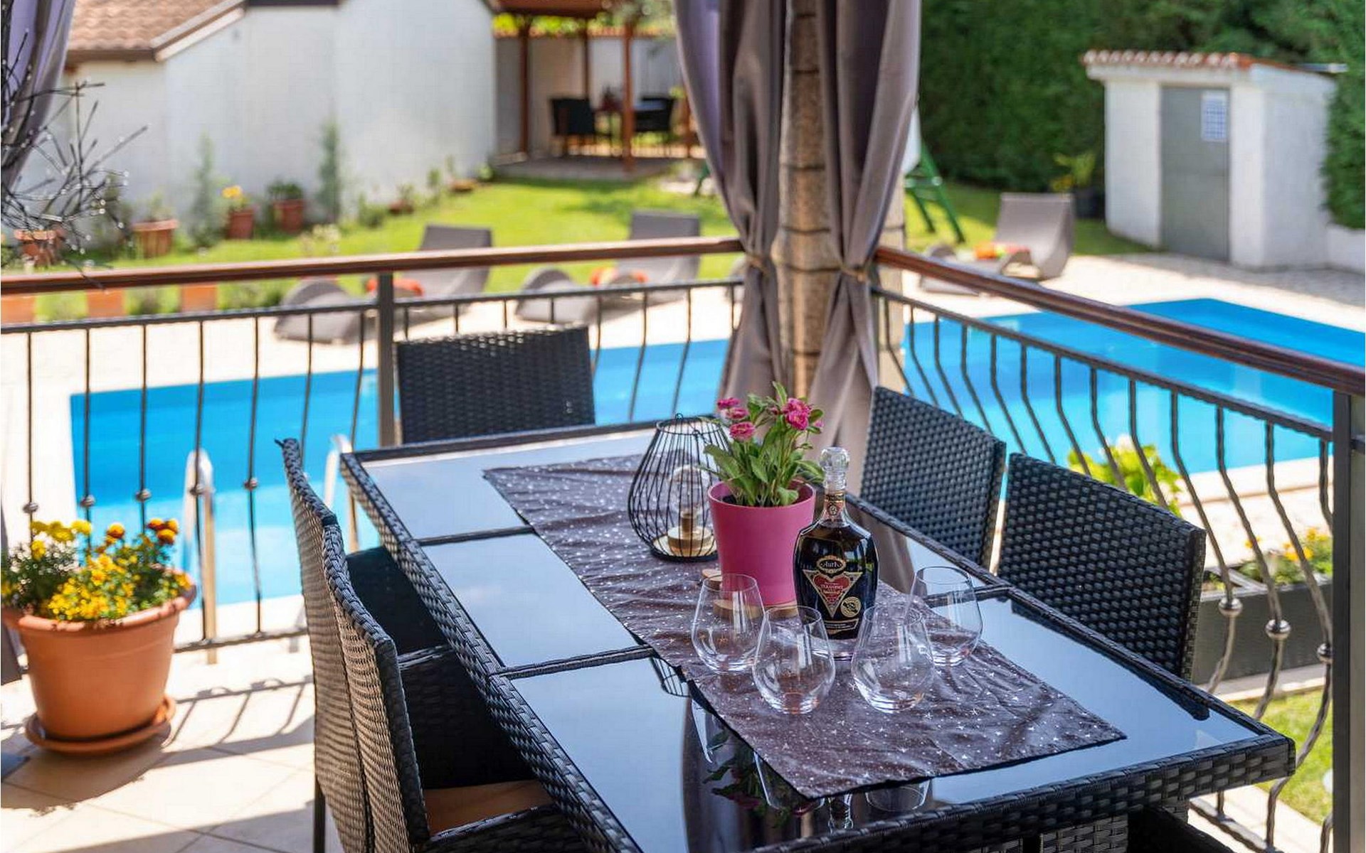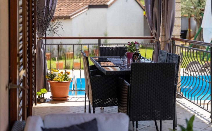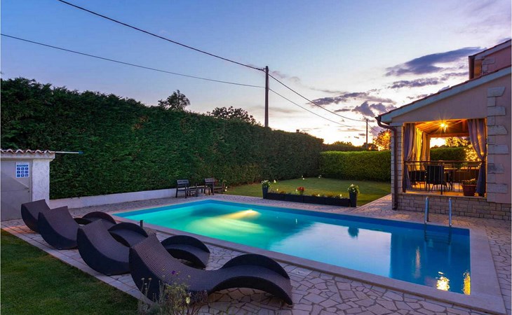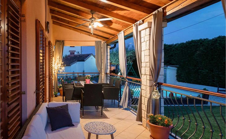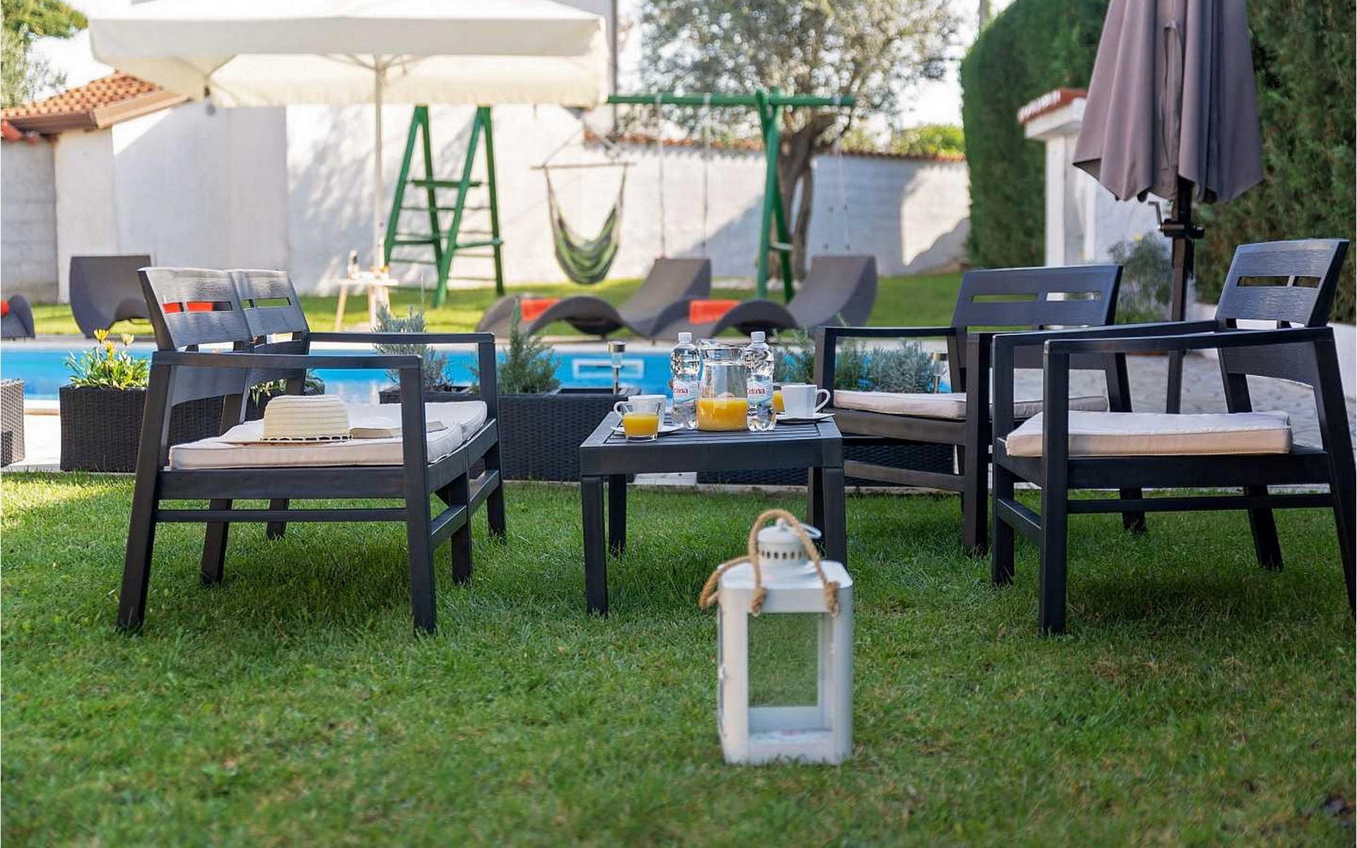 Vakantiehuis voor 6-8 personen met een bewoonbare oppervlakte van 135 m², op de begane grond is er een woonkamer met SAT-TV en slaapbank voor 2 personen, eettafel, mediaruimte met slaapbank voor 1 persoon en SAT-TV, volledig uitgeruste keuken, een douche/toilet en een kleinere bijkeuken met wasmachine. Vanuit de woonkamer is er toegang tot het terras met eettafel en gezellige zitplaatsen met uitzicht op het zwembad. Op de eerste verdieping zijn er drie slaapkamers, twee met tweepersoonsbedden en een met twee eenpersoonsbedden, een douche/toilet. Het huis heeft airconditioning op beide verdiepingen. Het interieur en de tuin zijn gedeeltelijk opgeknapt voor het zomerseizoen van 2020.