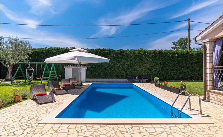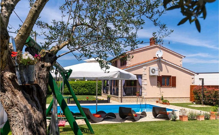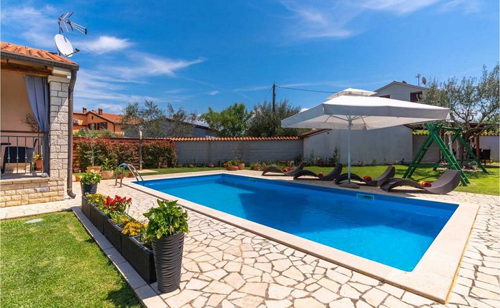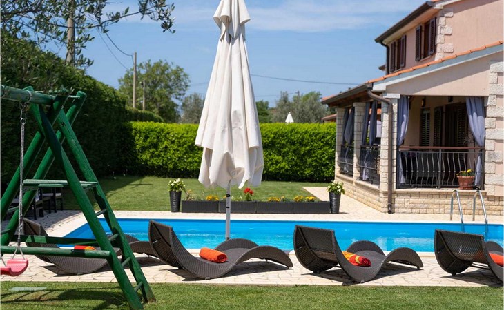 Het huis is gebouwd in 2007 en uitgerust met nieuw en modern meubilair. Het ligt op een eigen grondstuk van 500 vierkante meter en biedt zijn gasten een buitenzwembad, een goed onderhouden tuin met loungeset en barbecue, een overdekt terras met zitje, een speeltuin en een eigen parkeerplaats.