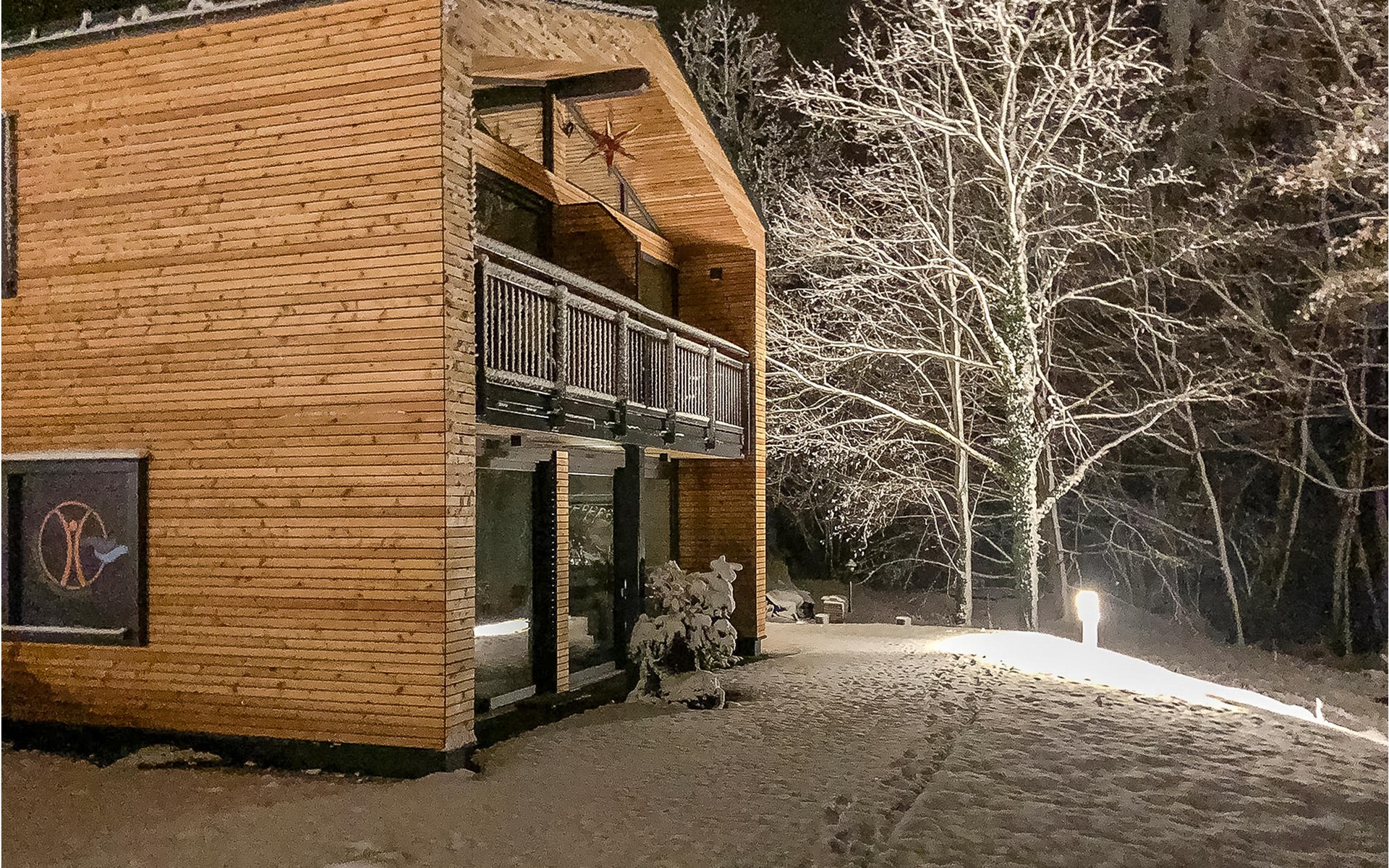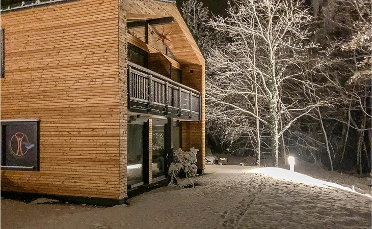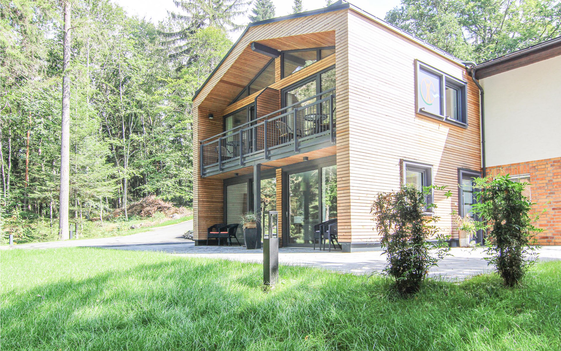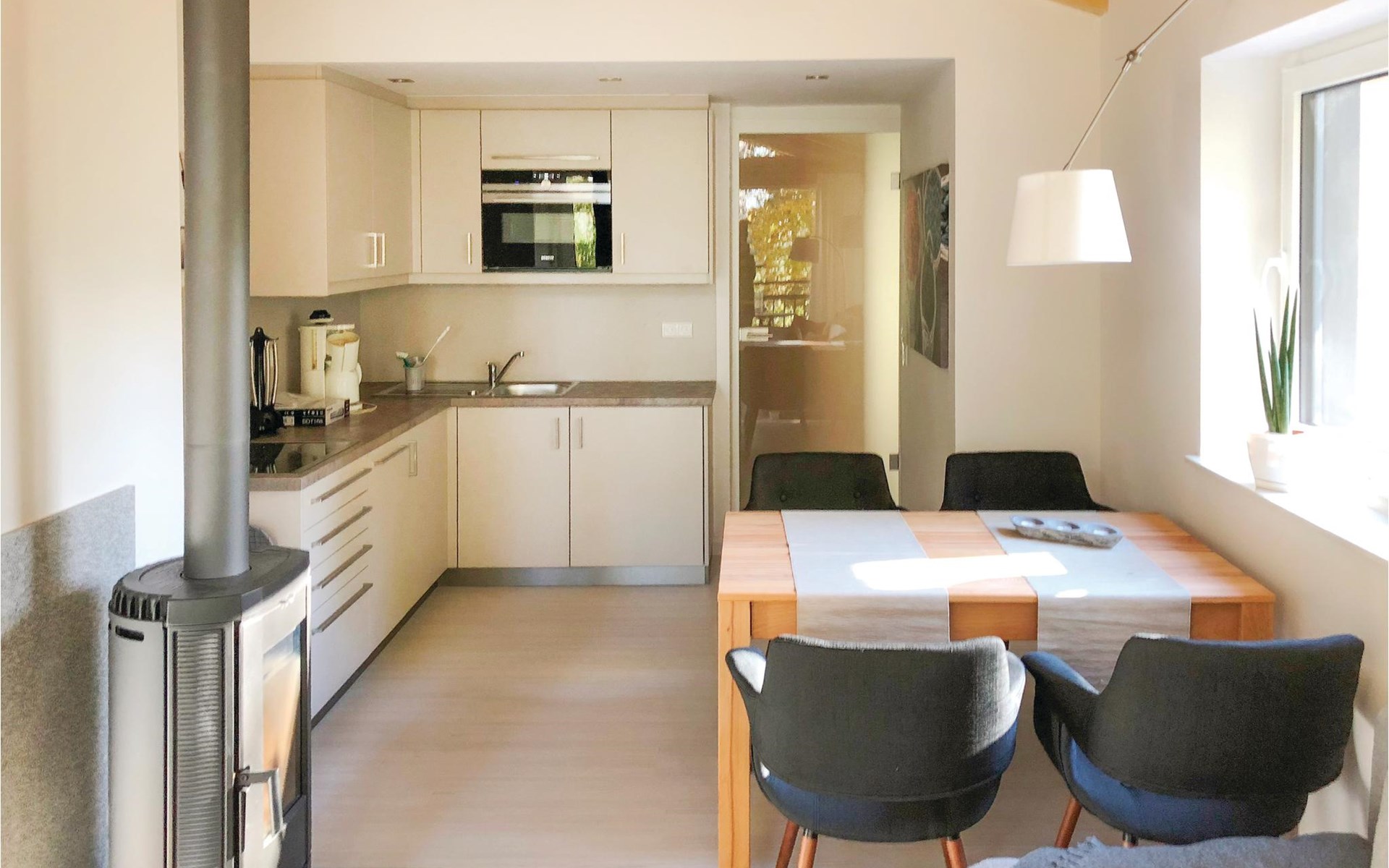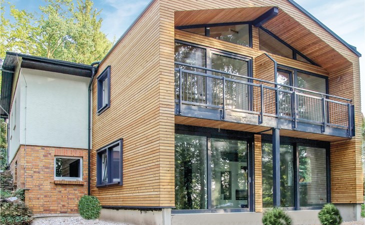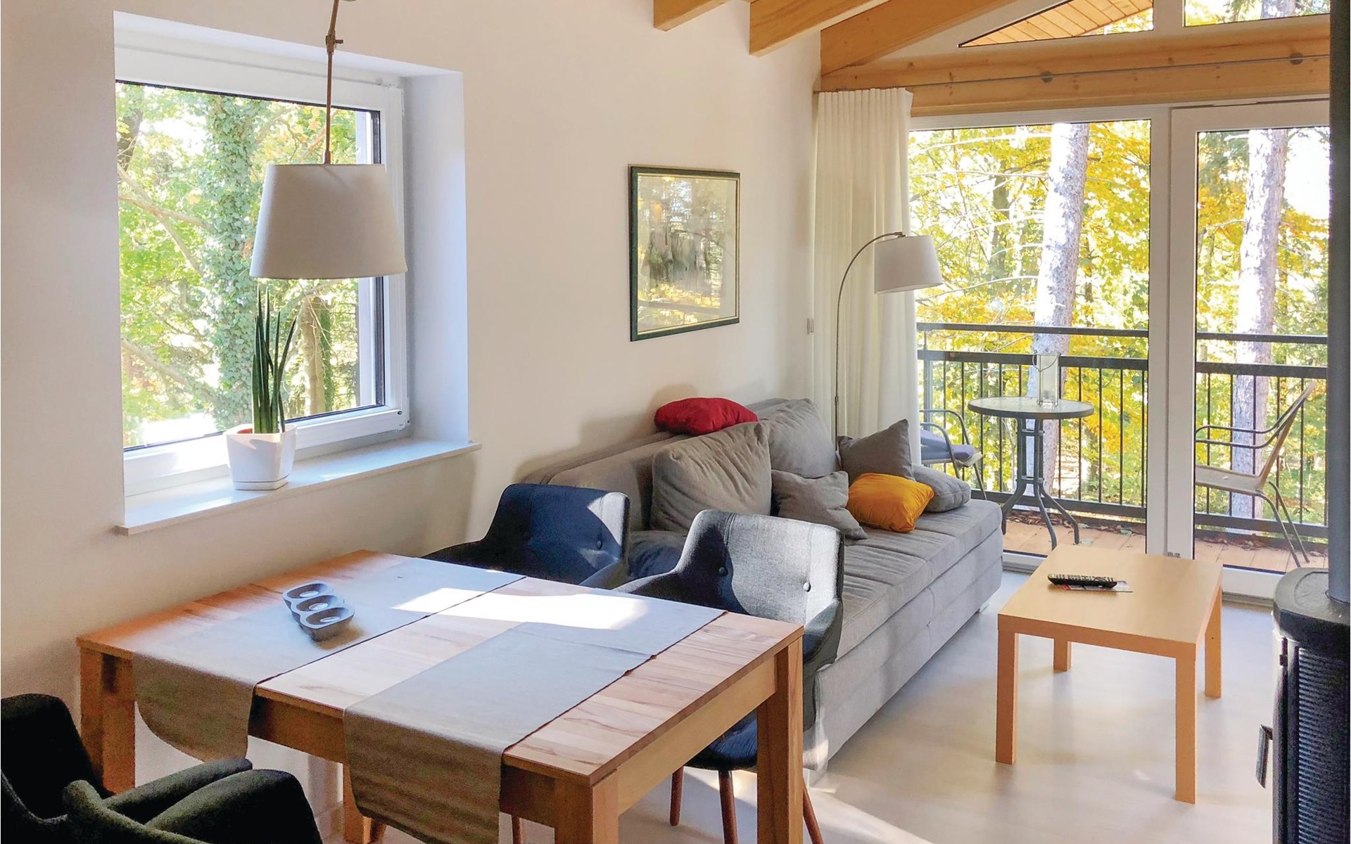 De vakantiewoning bevindt zich in een huis dat in 2018 is uitgebreid met een lichte aanbouw, waarin zich een ruime, moderne eetkeuken en het overdekte balkon bevinden. De panoramische ramen van vloer tot plafond laten de zon naar binnen schijnen en het uitzicht naar buiten dwalen. De slaapkamer en badkamer bevinden zich in het oudere deel van het huis.
