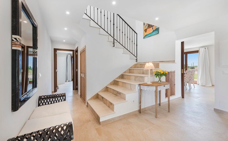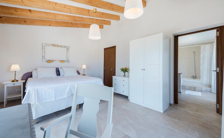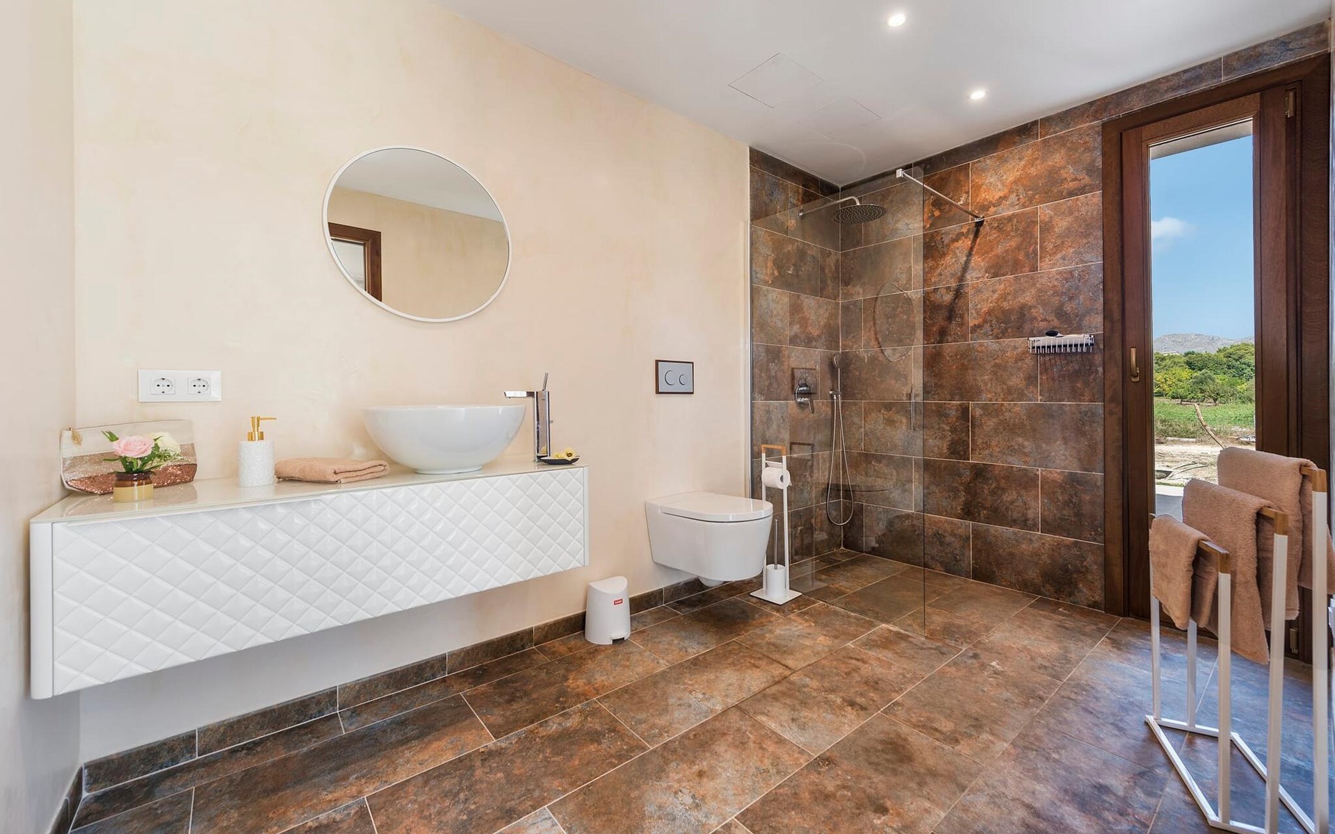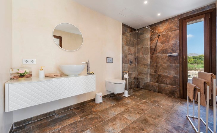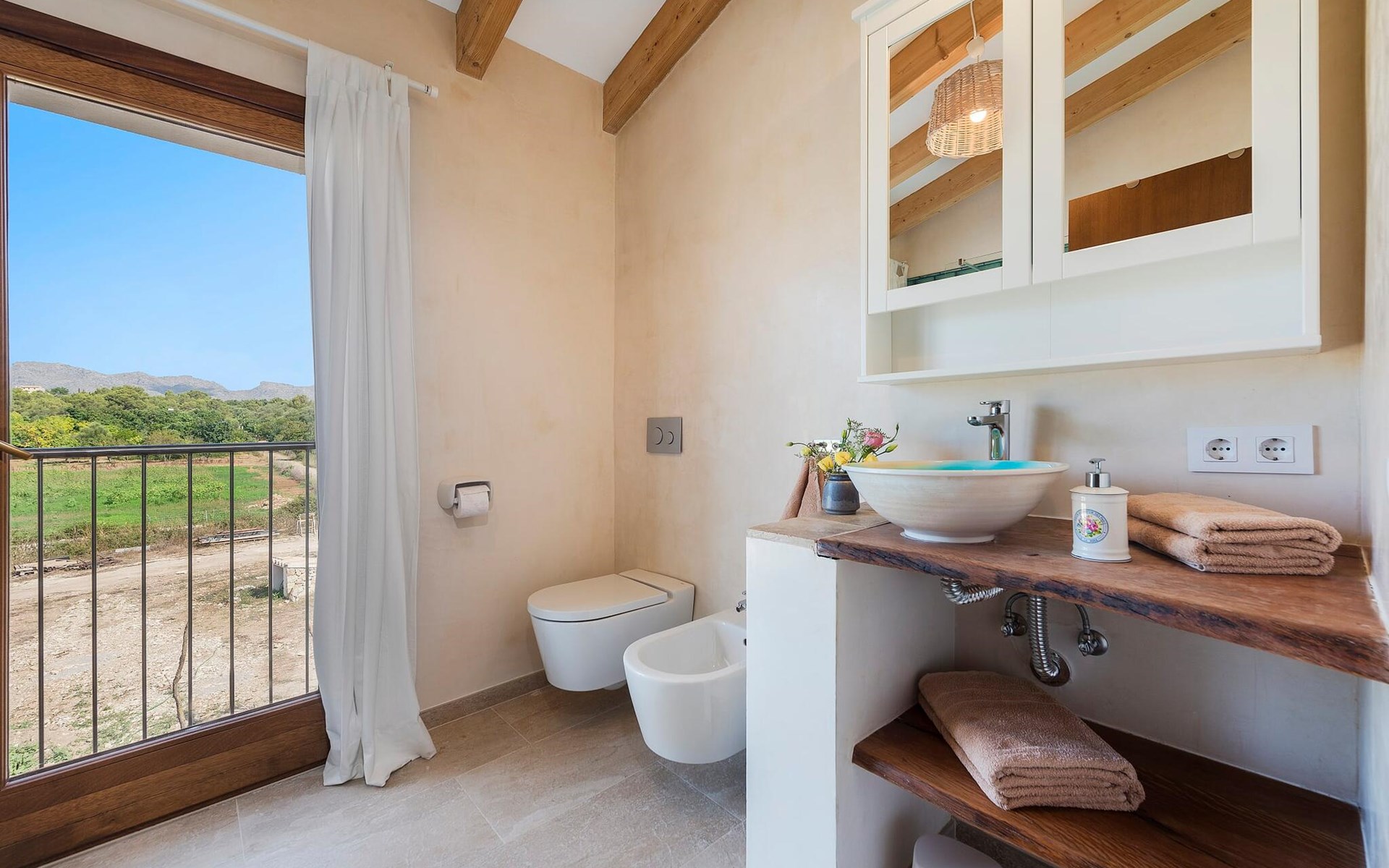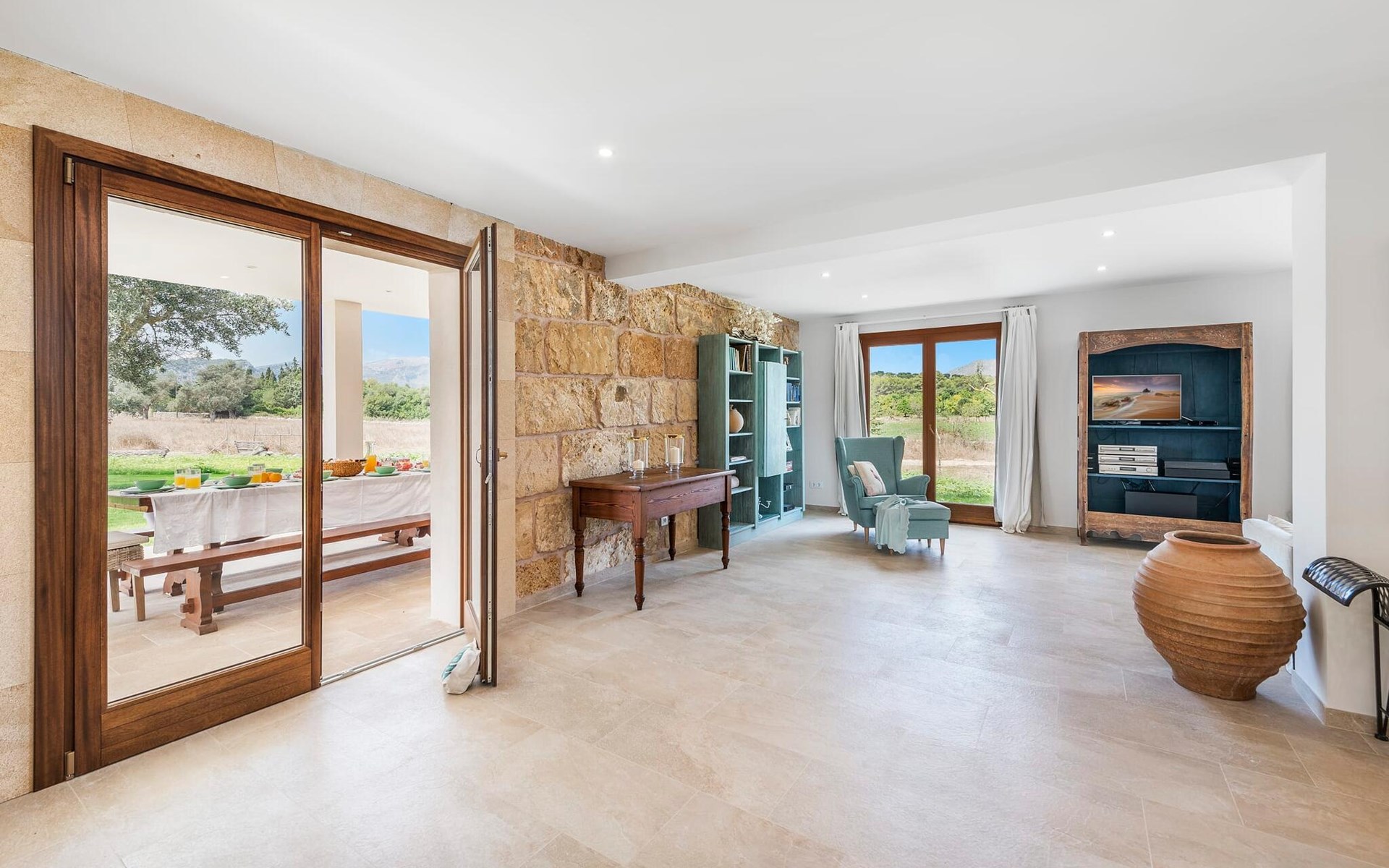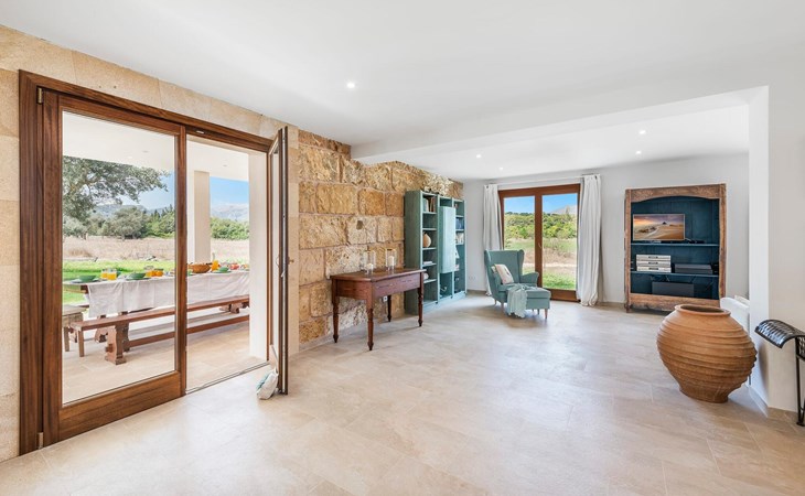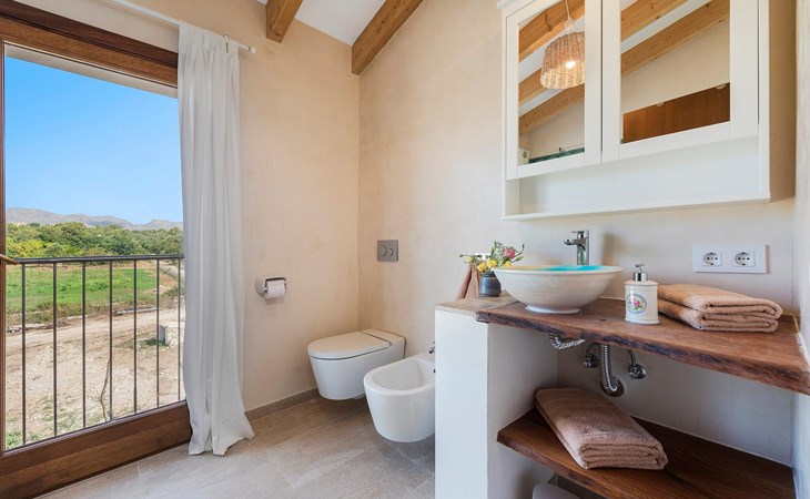 Het interieur van de gerenoveerde finca is ook ontworpen met veel aandacht voor detail, waardoor een ongelooflijke charme is gecreëerd met een hoge feel-good factor. Zowel families als groepen vrienden zullen dit waarderen. Oud is gecombineerd met nieuw en het zichtbare metselwerk gaat bijzonder goed samen met de landelijke meubels met een vintage flair. Je kunt genieten van het uitzicht op de tuin vanuit de ruime woonkamer en vanuit de volledig uitgeruste keuken met kookeiland in casual off-white en eethoek. De vele ramen van vloer tot plafond verbinden je direct met het omliggende terraslandschap. Het huis met zijn barrièrevrije eenkamerappartement op de begane grond is ook geschikt voor mensen met een handicap. Naast een slaapkamer met een chique eigen badkamer is er een extra woonkamer (de open haard kan hier niet worden gebruikt) en directe toegang tot de tuin. De andere tweepersoonsslaapkamers (een met een eigen badkamer en een andere badkamer met een inloopdouche) bevinden zich op de bovenverdieping. Wat vooral leuk is, is dat je vanuit elk van deze ontspanningsruimtes ook toegang hebt tot ofwel het dakterras met prachtig uitzicht op zee ofwel een tweede kleiner terras. Dit betekent dat je het hele jaar door kunt genieten van de meest prachtige uitzichten die dit prachtige huis te bieden heeft zodra je 's ochtends opstaat, vooral omdat het huis vloerverwarming heeft. Morell Nou is dus een echte klassieker in een vernieuwend en prachtig jasje. Het traditionele landhuis in een nieuw jasje, Morell Nou, ligt op een prachtige afgelegen locatie dicht bij de baai van Pollença en het gelijknamige dorp in het noorden van het eiland. In ongeveer 15 minuten met de auto bereik je niet alleen de golfbaan van Pollença en het natuurpark aan de kust l'Albufereta, maar ook de aantrekkelijke dorpjes en prachtige stranden die de baai van Pollença kenmerken. Alleen al het weidse uitzicht op zee en de majestueuze bergen laten duidelijk de diversiteit van deze regio zien.