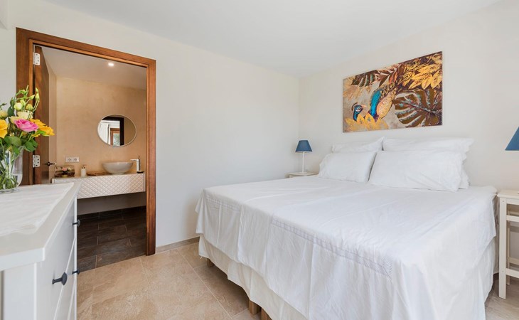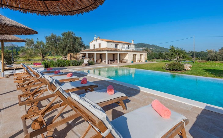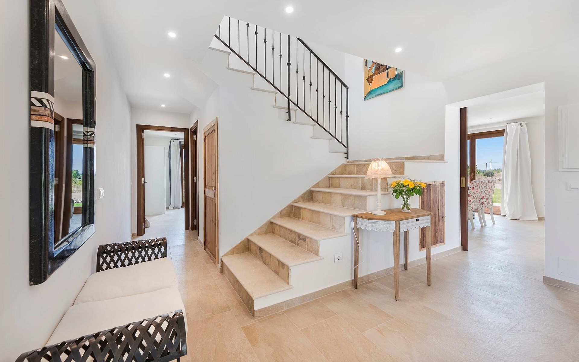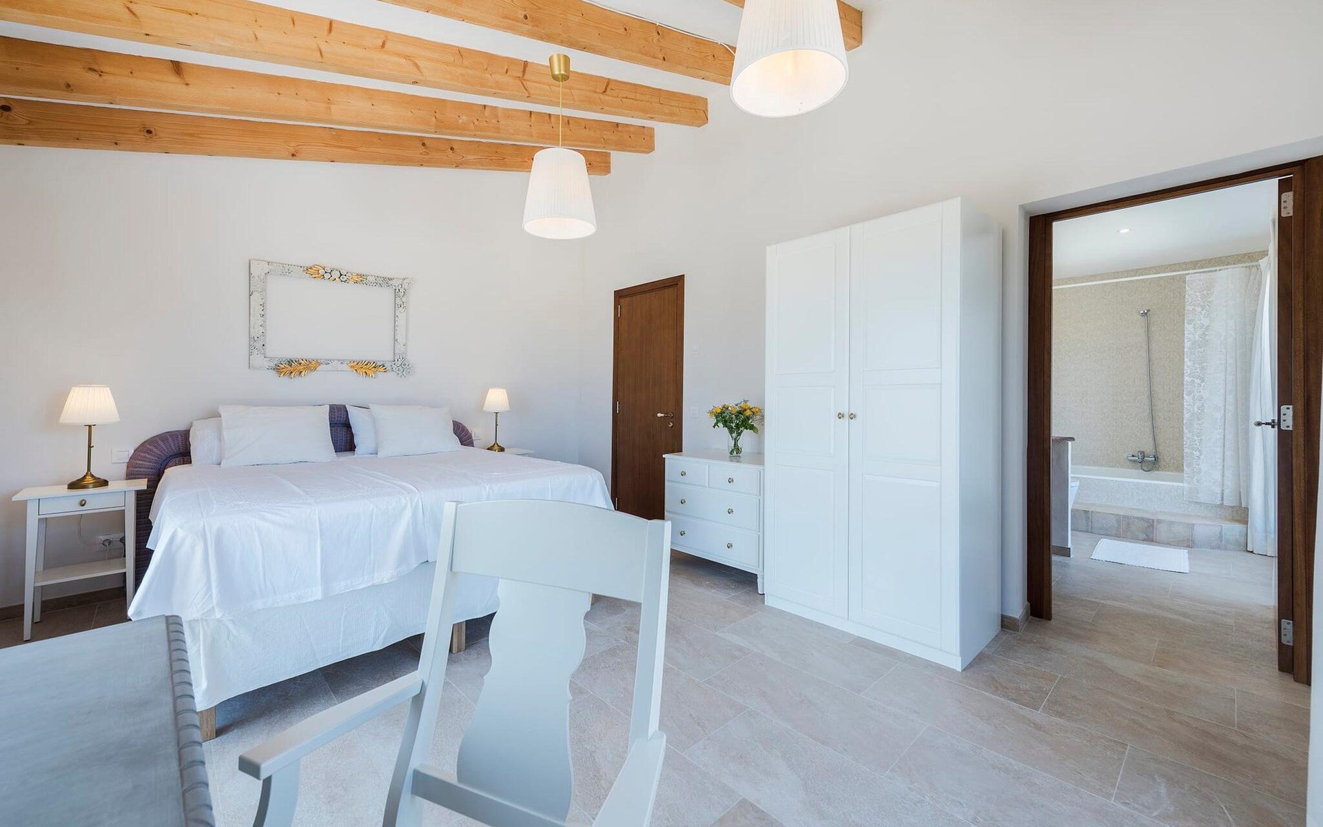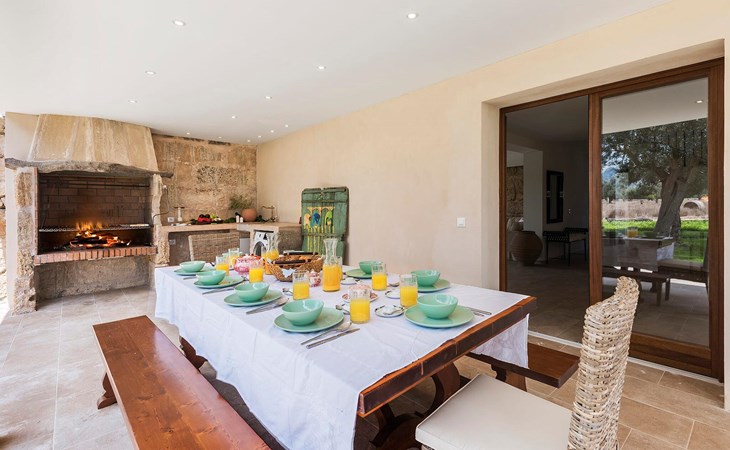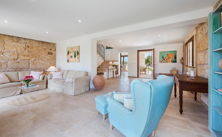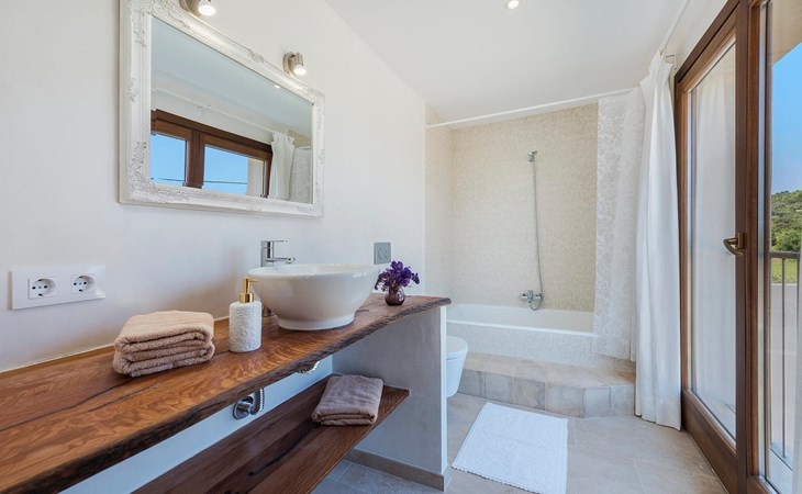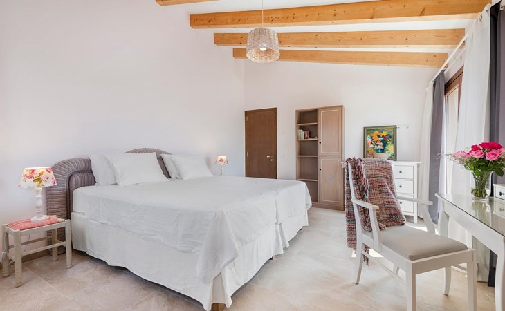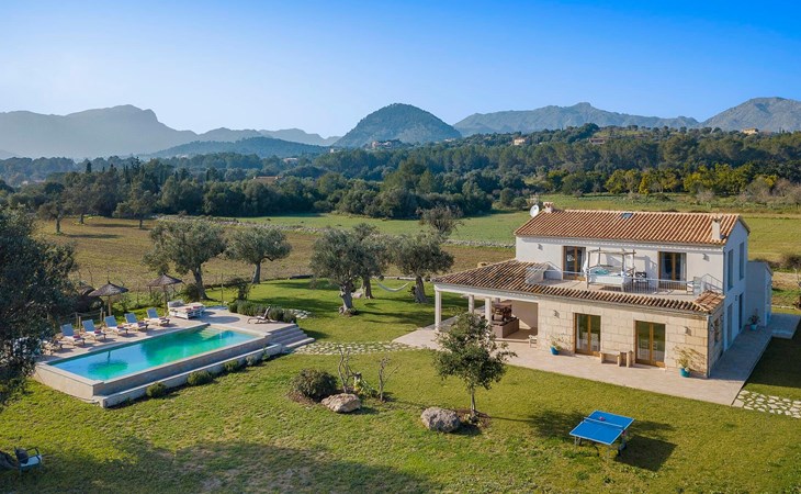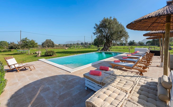 Het interieur van de gerenoveerde finca is ook ontworpen met veel aandacht voor detail, waardoor een ongelooflijke charme is gecreëerd met een hoge feel-good factor. Zowel families als groepen vrienden zullen dit waarderen. Oud is gecombineerd met nieuw en het zichtbare metselwerk gaat bijzonder goed samen met de landelijke meubels met een vintage flair. Je kunt genieten van het uitzicht op de tuin vanuit de ruime woonkamer en vanuit de volledig uitgeruste keuken met kookeiland in casual off-white en eethoek. De vele ramen van vloer tot plafond verbinden je direct met het omliggende terraslandschap. Het huis met zijn barrièrevrije eenkamerappartement op de begane grond is ook geschikt voor mensen met een handicap. Naast een slaapkamer met een chique eigen badkamer is er een extra woonkamer (de open haard kan hier niet worden gebruikt) en directe toegang tot de tuin. De andere tweepersoonsslaapkamers (een met een eigen badkamer en een andere badkamer met een inloopdouche) bevinden zich op de bovenverdieping. Wat vooral leuk is, is dat je vanuit elk van deze ontspanningsruimtes ook toegang hebt tot ofwel het dakterras met prachtig uitzicht op zee ofwel een tweede kleiner terras. Dit betekent dat je het hele jaar door kunt genieten van de meest prachtige uitzichten die dit prachtige huis te bieden heeft zodra je 's ochtends opstaat, vooral omdat het huis vloerverwarming heeft. Morell Nou is dus een echte klassieker in een vernieuwend en prachtig jasje. Het traditionele landhuis in een nieuw jasje, Morell Nou, ligt op een prachtige afgelegen locatie dicht bij de baai van Pollença en het gelijknamige dorp in het noorden van het eiland. In ongeveer 15 minuten met de auto bereik je niet alleen de golfbaan van Pollença en het natuurpark aan de kust l'Albufereta, maar ook de aantrekkelijke dorpjes en prachtige stranden die de baai van Pollença kenmerken. Alleen al het weidse uitzicht op zee en de majestueuze bergen laten duidelijk de diversiteit van deze regio zien.