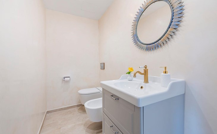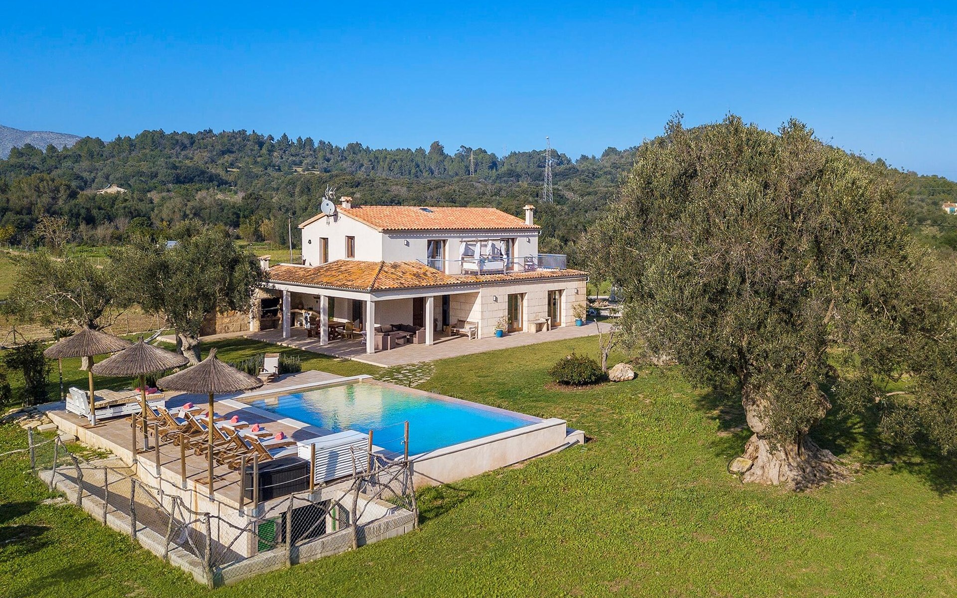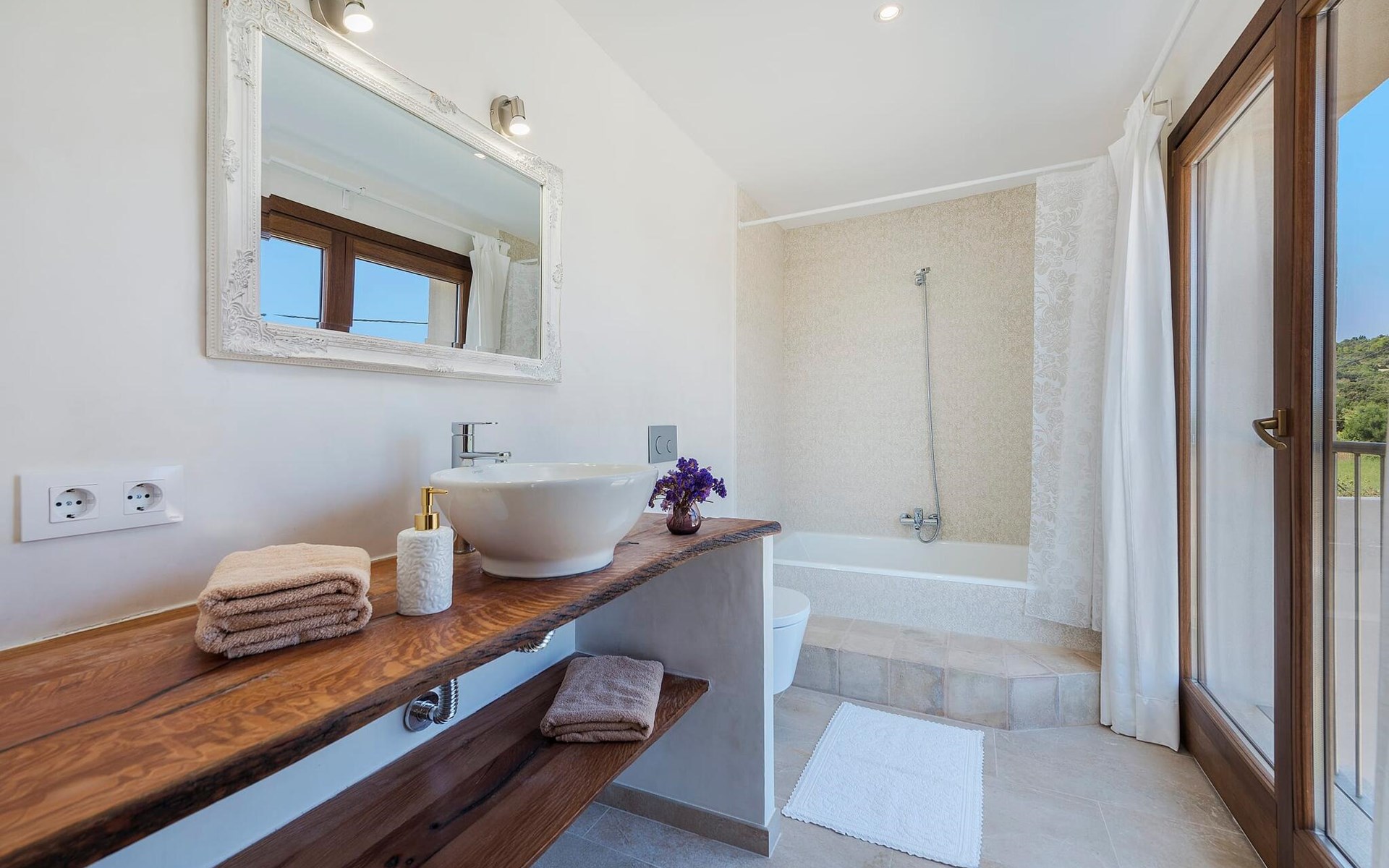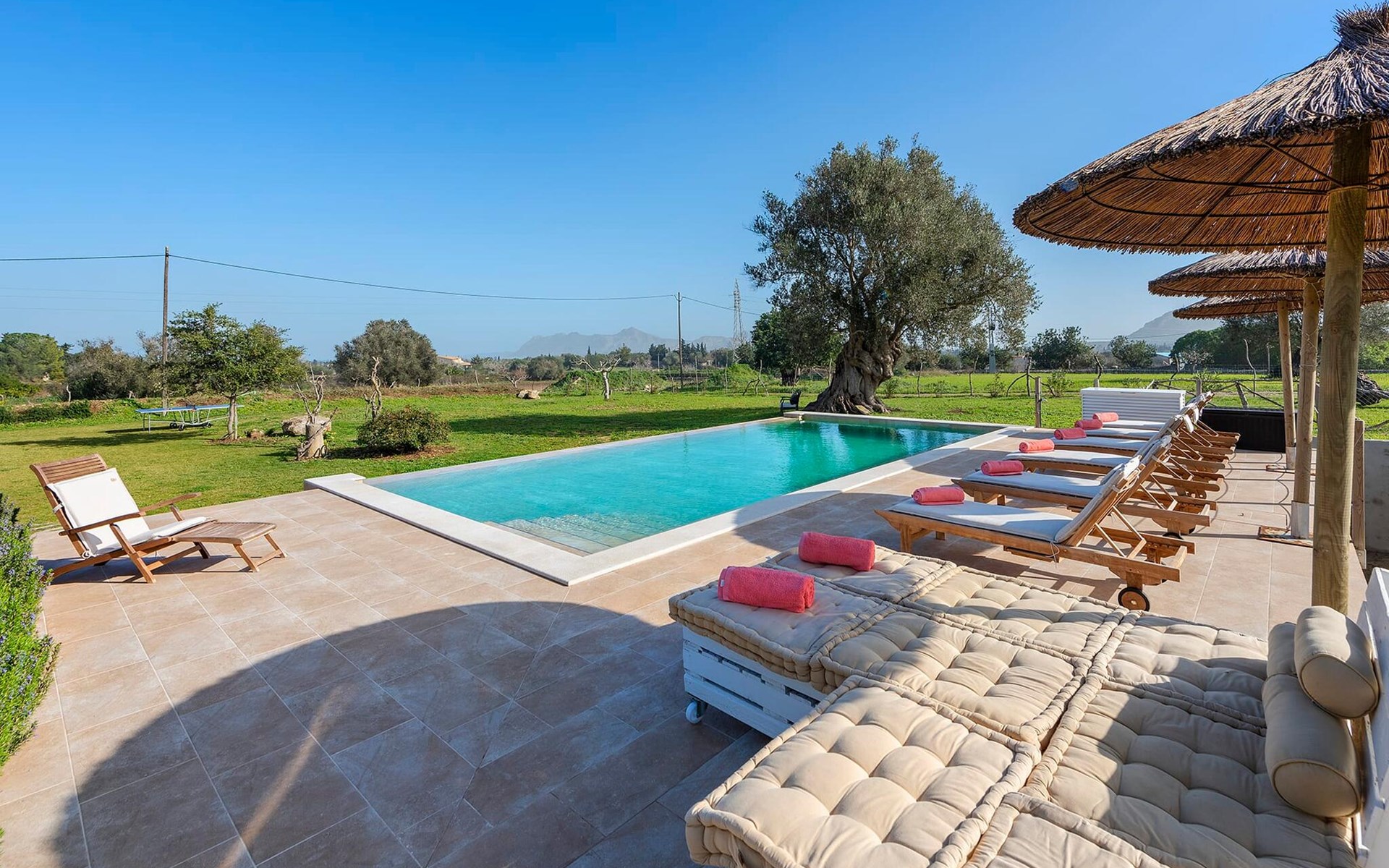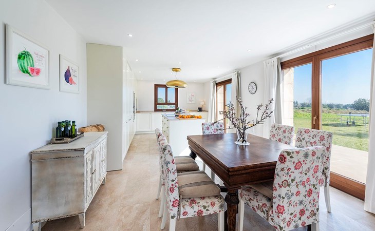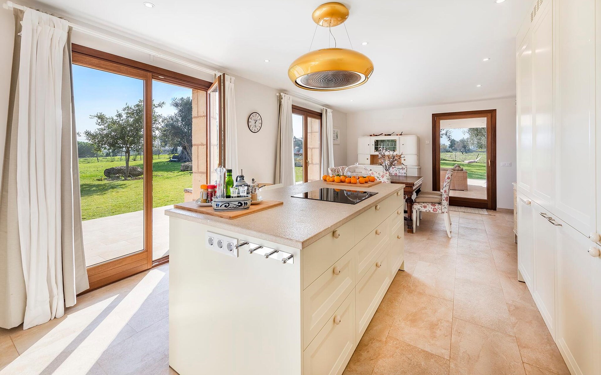 Het interieur van de gerenoveerde finca is ook ontworpen met veel aandacht voor detail, waardoor een ongelooflijke charme is gecreëerd met een hoge feel-good factor. Zowel families als groepen vrienden zullen dit waarderen. Oud is gecombineerd met nieuw en het zichtbare metselwerk gaat bijzonder goed samen met de landelijke meubels met een vintage flair. Je kunt genieten van het uitzicht op de tuin vanuit de ruime woonkamer en vanuit de volledig uitgeruste keuken met kookeiland in casual off-white en eethoek. De vele ramen van vloer tot plafond verbinden je direct met het omliggende terraslandschap. Het huis met zijn barrièrevrije eenkamerappartement op de begane grond is ook geschikt voor mensen met een handicap. Naast een slaapkamer met een chique eigen badkamer is er een extra woonkamer (de open haard kan hier niet worden gebruikt) en directe toegang tot de tuin. De andere tweepersoonsslaapkamers (een met een eigen badkamer en een andere badkamer met een inloopdouche) bevinden zich op de bovenverdieping. Wat vooral leuk is, is dat je vanuit elk van deze ontspanningsruimtes ook toegang hebt tot ofwel het dakterras met prachtig uitzicht op zee ofwel een tweede kleiner terras. Dit betekent dat je het hele jaar door kunt genieten van de meest prachtige uitzichten die dit prachtige huis te bieden heeft zodra je 's ochtends opstaat, vooral omdat het huis vloerverwarming heeft. Morell Nou is dus een echte klassieker in een vernieuwend en prachtig jasje. Het traditionele landhuis in een nieuw jasje, Morell Nou, ligt op een prachtige afgelegen locatie dicht bij de baai van Pollença en het gelijknamige dorp in het noorden van het eiland. In ongeveer 15 minuten met de auto bereik je niet alleen de golfbaan van Pollença en het natuurpark aan de kust l'Albufereta, maar ook de aantrekkelijke dorpjes en prachtige stranden die de baai van Pollença kenmerken. Alleen al het weidse uitzicht op zee en de majestueuze bergen laten duidelijk de diversiteit van deze regio zien.