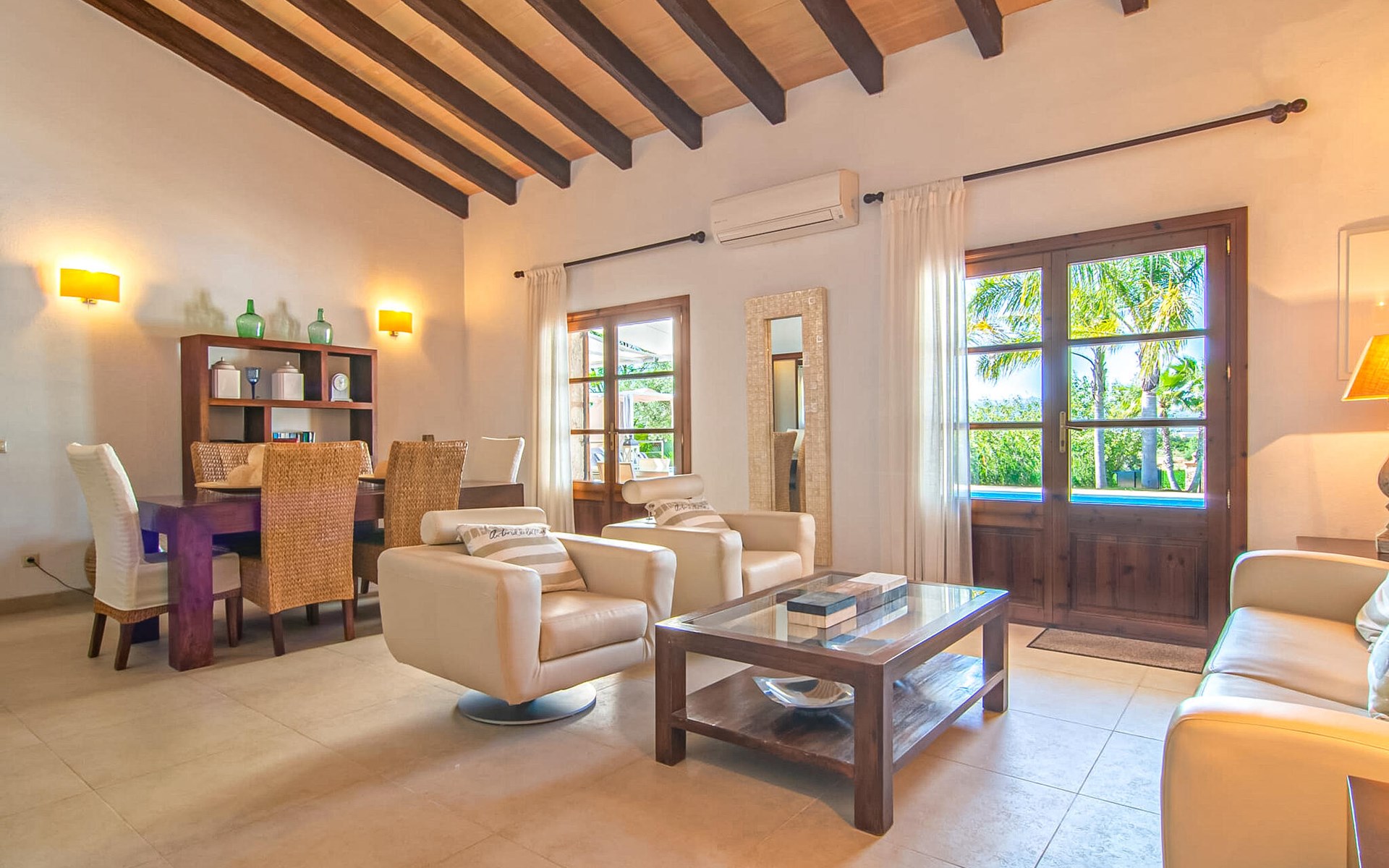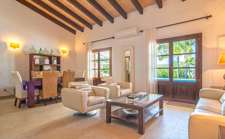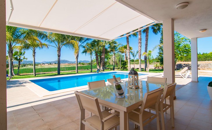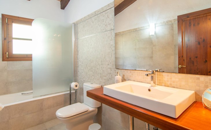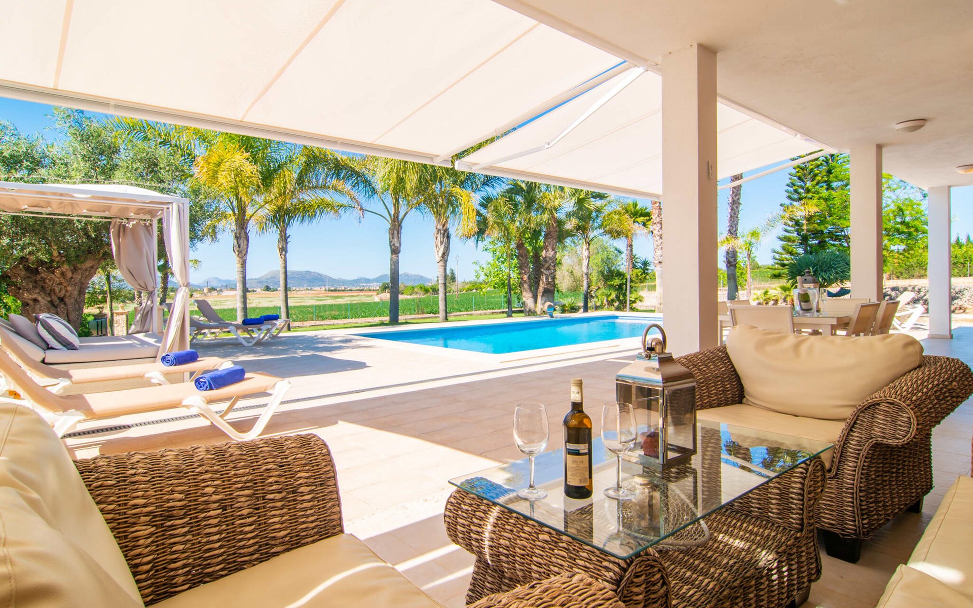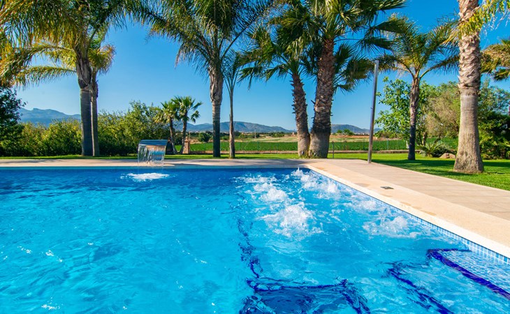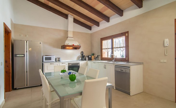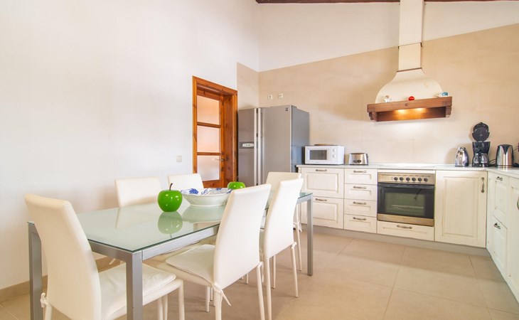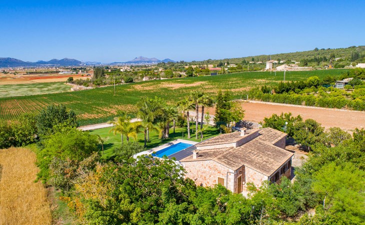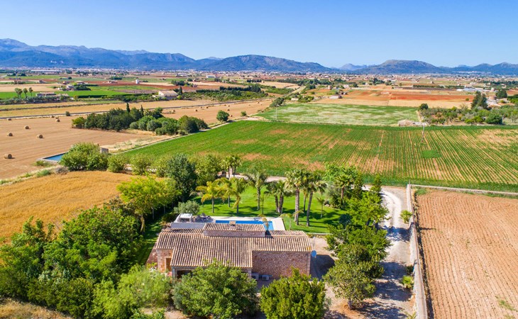 Je Villa Vinroma wordt omringd door een prachtig landschap, typisch voor het noorden van het eiland. Het ligt in het centrum van de zogenaamde groentemand van Mallorca, in een bijzonder groene, vruchtbare vlakte. Geniet van een paar ontspannende verkennende wandelingen of een fietstocht door het platteland, altijd met het prachtige uitzicht op de bergen in de verte. Het dorpscentrum van Muro ligt ook op loopafstand, dus je hebt talloze winkelmogelijkheden, restaurants en cafés voor de deur. Muro is gespaard gebleven van het massatoerisme en is een rustiek stadje op Mallorca in de beste zin van het woord, met smalle straatjes, mooie zandstenen huizen en een bezienswaardig museum, het Museo Museu Etnologico de Muro. Hier kun je veel leren over het plattelandsleven op het eiland door de eeuwen heen en je vergapen aan tentoonstellingen die variëren van handwerk tot muziekinstrumenten. Als je liever naar het strand gaat, rijd dan ongeveer 11 kilometer naar de baai van Alcúdia, waar je een fijn, wit zandstrand en groene duinen vindt. Een mooi huis met één verdieping, omringd door een goed onderhouden tuin met een groen gazon, geurige bloemen en een groot zwembad, genesteld in een fantastisch mediterraan landschap: dit is Villa Vinroma bij Muro in het noorden van Mallorca. Hier kun je in alle rust genieten van je gezinsvakantie, maar je kunt ook te voet naar de stad, die op slechts 0,6 km afstand ligt, de plaatselijke restaurants uitproberen en boodschappen doen. En het dichtstbijzijnde strand ligt op slechts ca. 11 km afstand en is snel te bereiken met een huurauto.