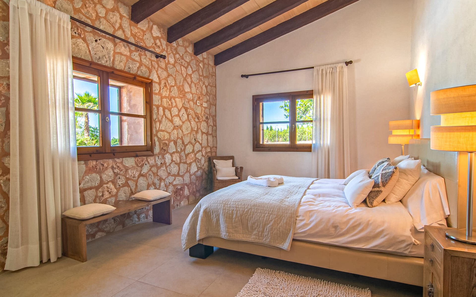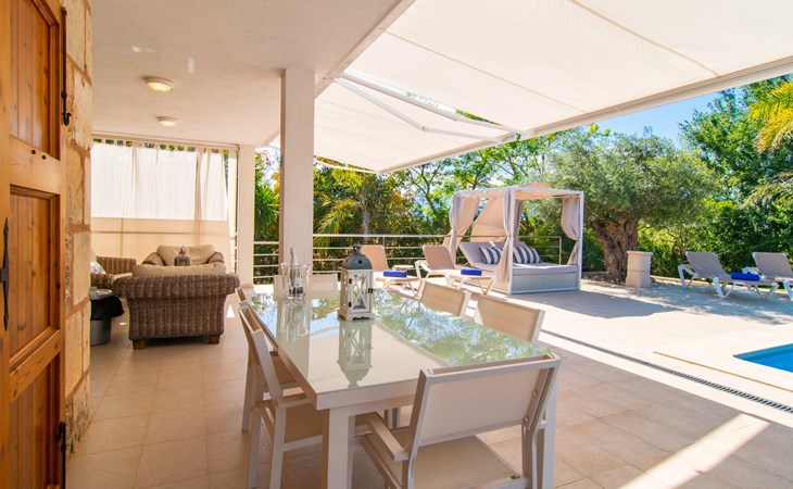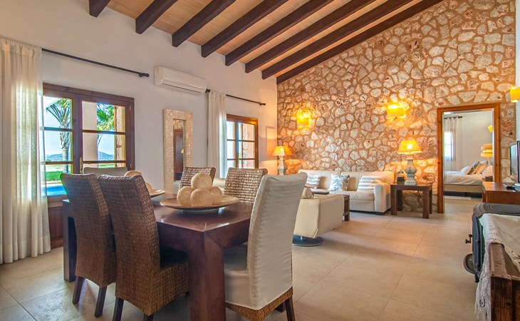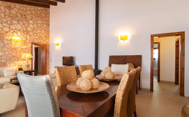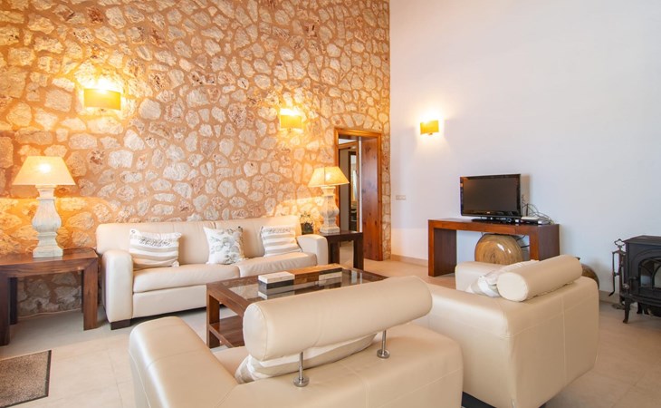 Integendeel: als je droomt van een villavakantie dicht bij de natuur op een rustige maar niet afgelegen locatie met alle voorzieningen van een modern vakantiehuis, dan is Vinroma de perfecte keuze voor jou! Het natuurstenen huis met één verdieping ligt op een prachtig aangelegd terrein en biedt een prachtig uitzicht op de omliggende velden en bergen in de verte. Achter het huis ligt niet alleen een overdekt terras met eettafel, stoelen en comfortabel tuinmeubilair, maar ook een groot, ondiep zwembad met een geïntegreerde whirlpool en een aangenaam klinkende, stijlvolle waterval. Hier kun je jezelf echt in alle privacy verwennen en na een verfrissende duik in het koele water genieten van een welverdiende siësta op een van de uitnodigende ligstoelen. Als je dan slaperig over je zonnebril kijkt, zie je alleen de indrukwekkende, hoge palmbomen die langs de rand van het zwembad staan - een droom!