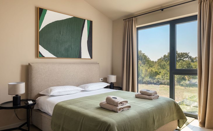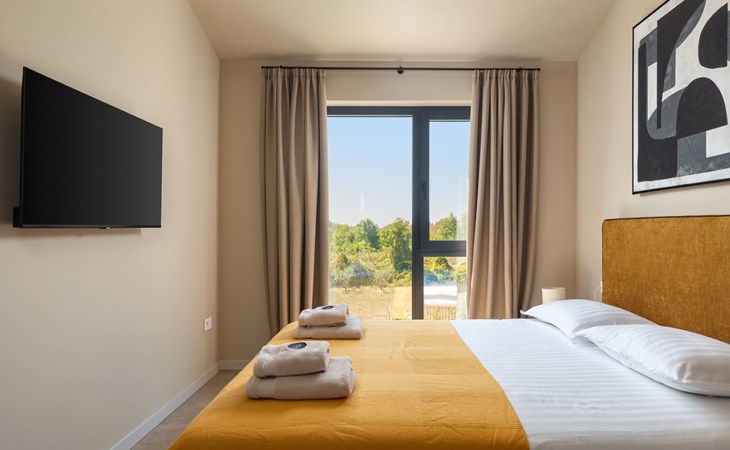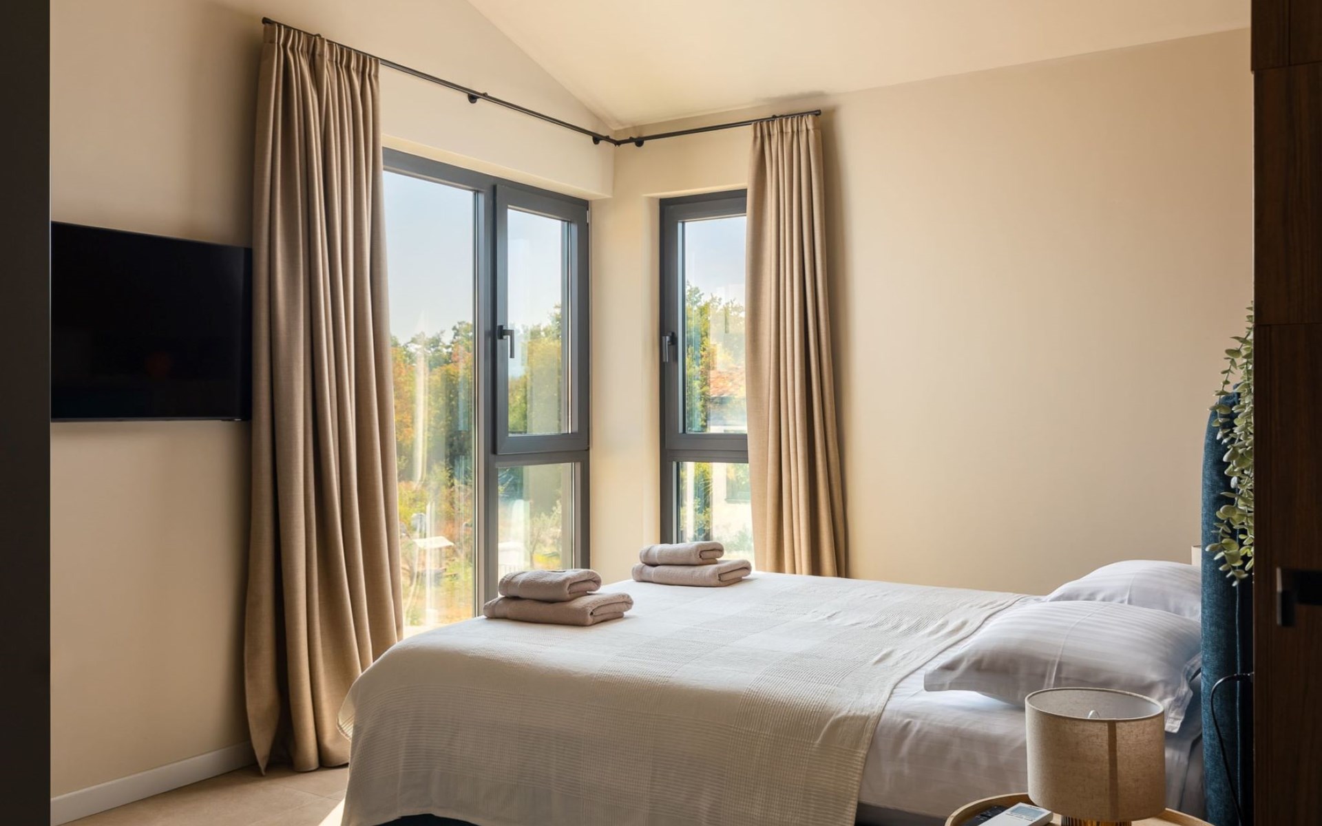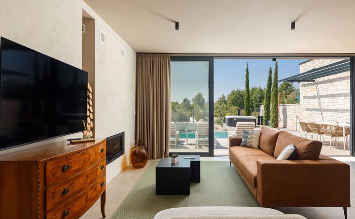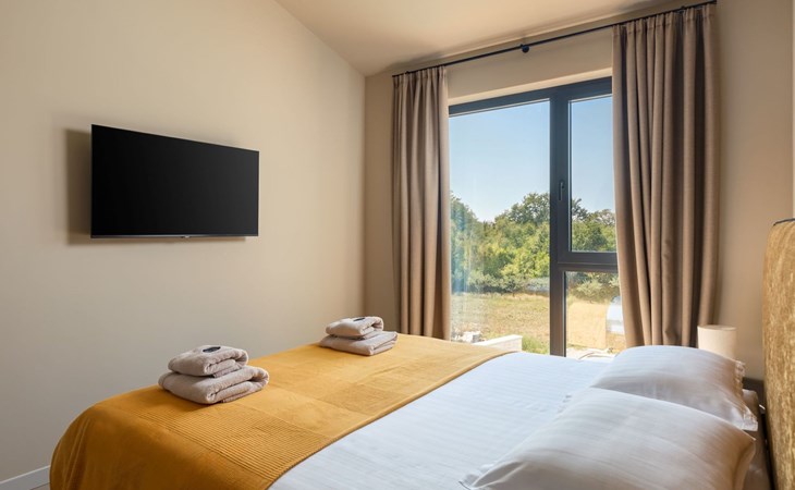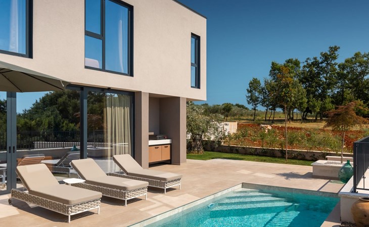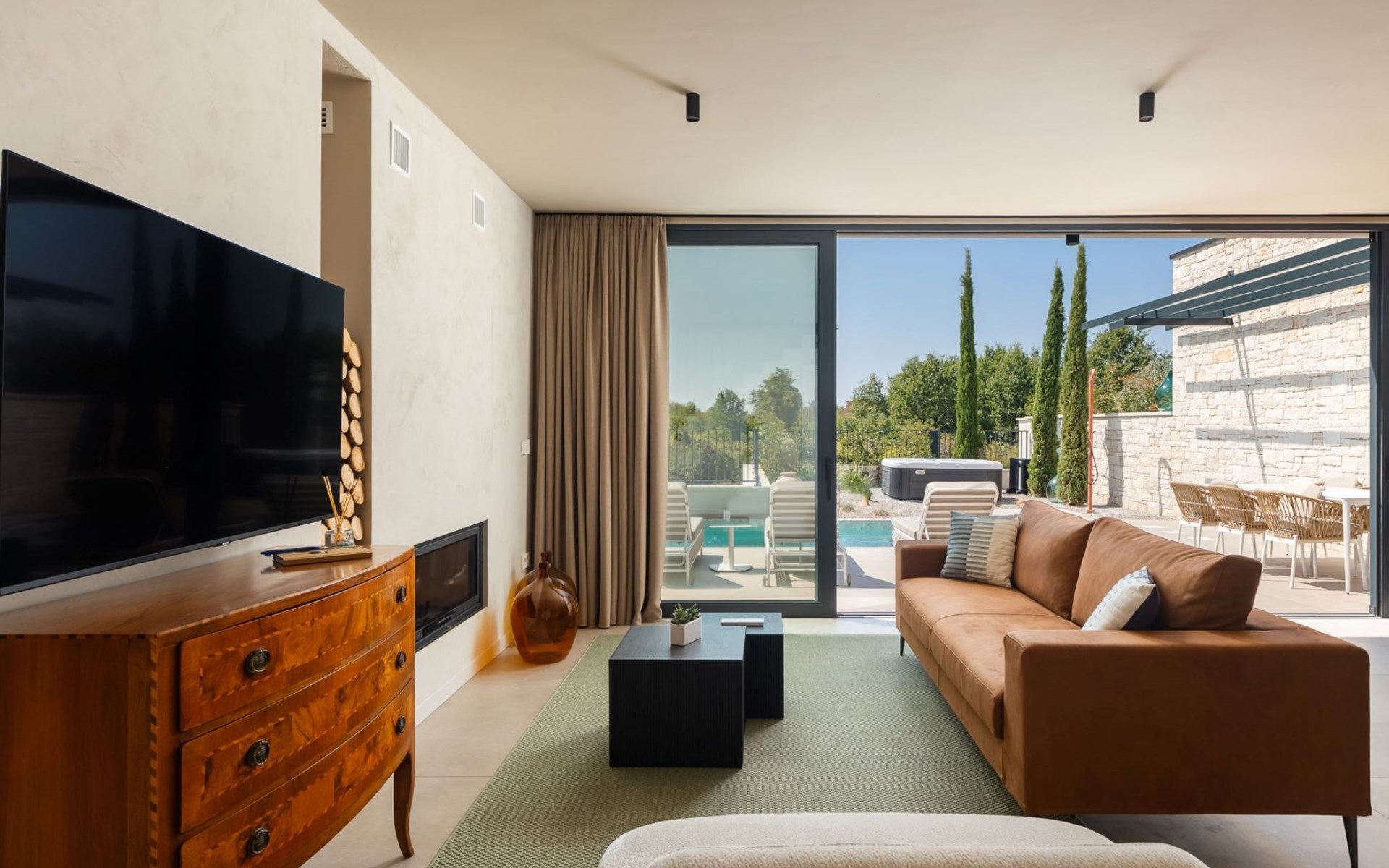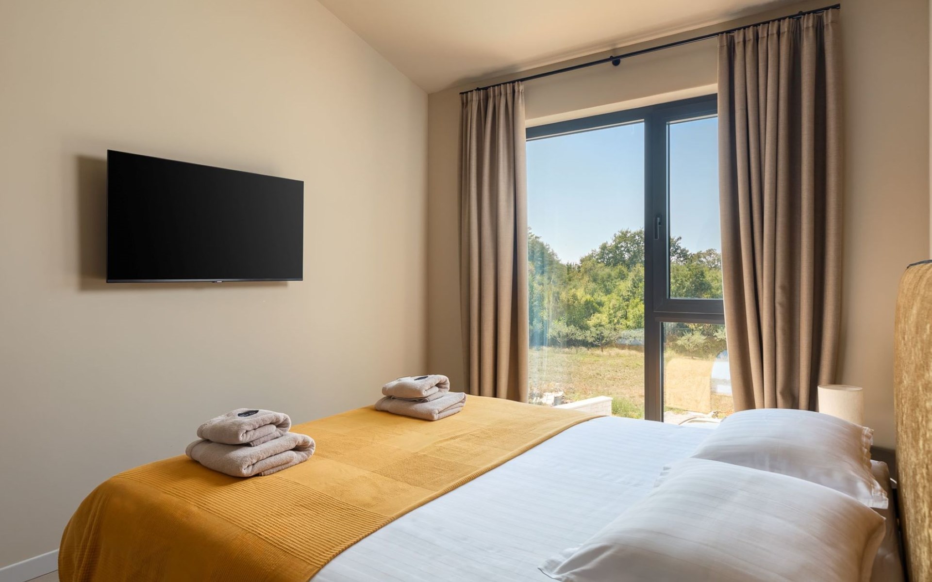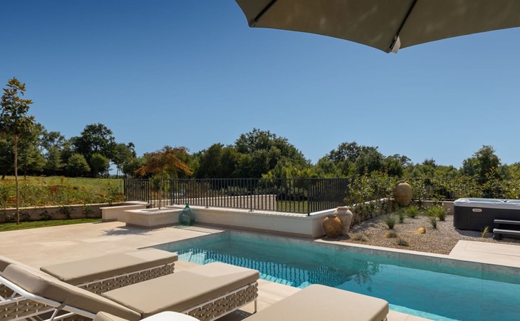 Zeer mooi twee onder één kap woning "Tia 2", van 2 verdiepingen, bouwjaar 2024. In het gehucht Mihatovići, 1 km van het centrum van Nova Vas, 5 km van het centrum van Poreč, 4.5 km van zee, 4.5 km van het strand. Voor alleengebruik: terrein 400 m2 (omheind), tuin met gazon, openluchtzwembad hoekig, verwarmd (7 x 3 m, 21 m2, 140 cm diepte, seizoensgebonden beschikbaarheid: 01.Apr. - 01.Nov.) met trap en zout-elektrolyse. Buitendouche, terras (20 m2), barbecue. In het huis: internetaansluiting, sauna, hot tub, wasmachine. Parkeerplaats (voor 2 auto's) bij het huis op het terrein. Winkel 1.5 km, winkelcentrum 3 km, restaurant 70 m, café 1.5 km, bushalte 2.8 km, kiezelstrand 4.5 km, rotsstrand 4.5 km. Attracties in de buurt: Aquapark 9 km. Groepen jongeren uitsluitend op aanvraag. Vliegveld 46 m van het huis.