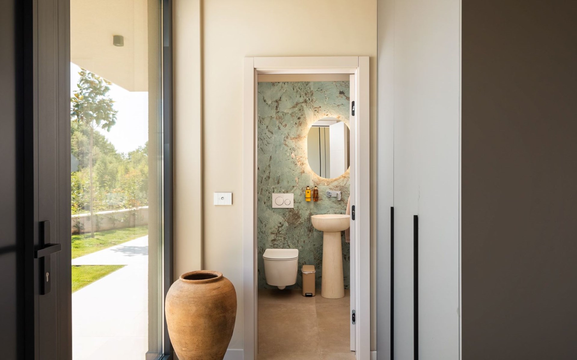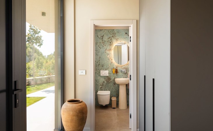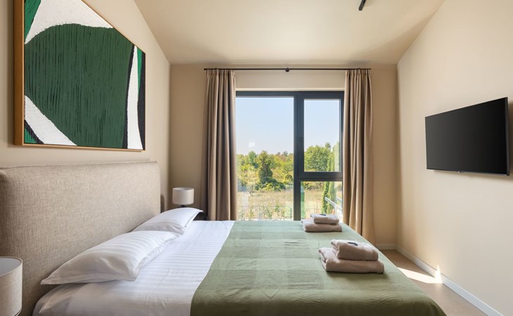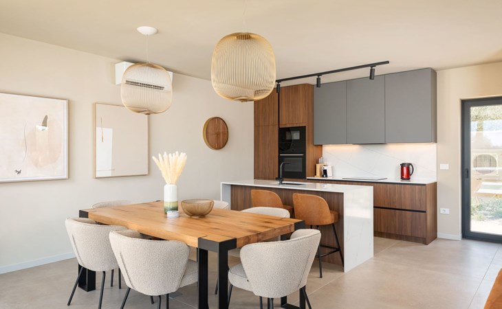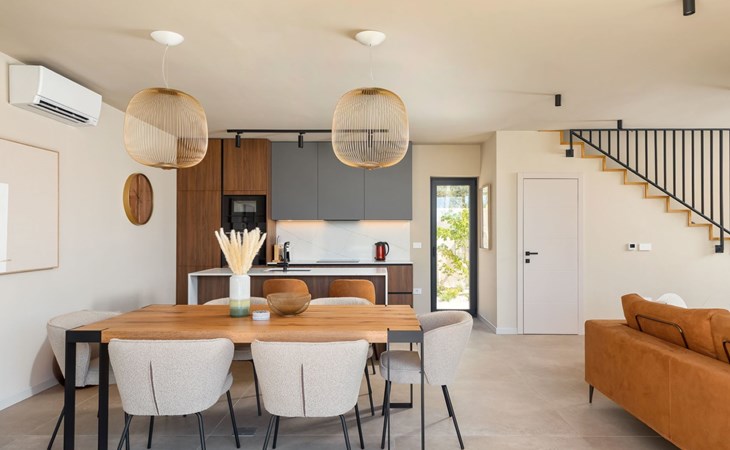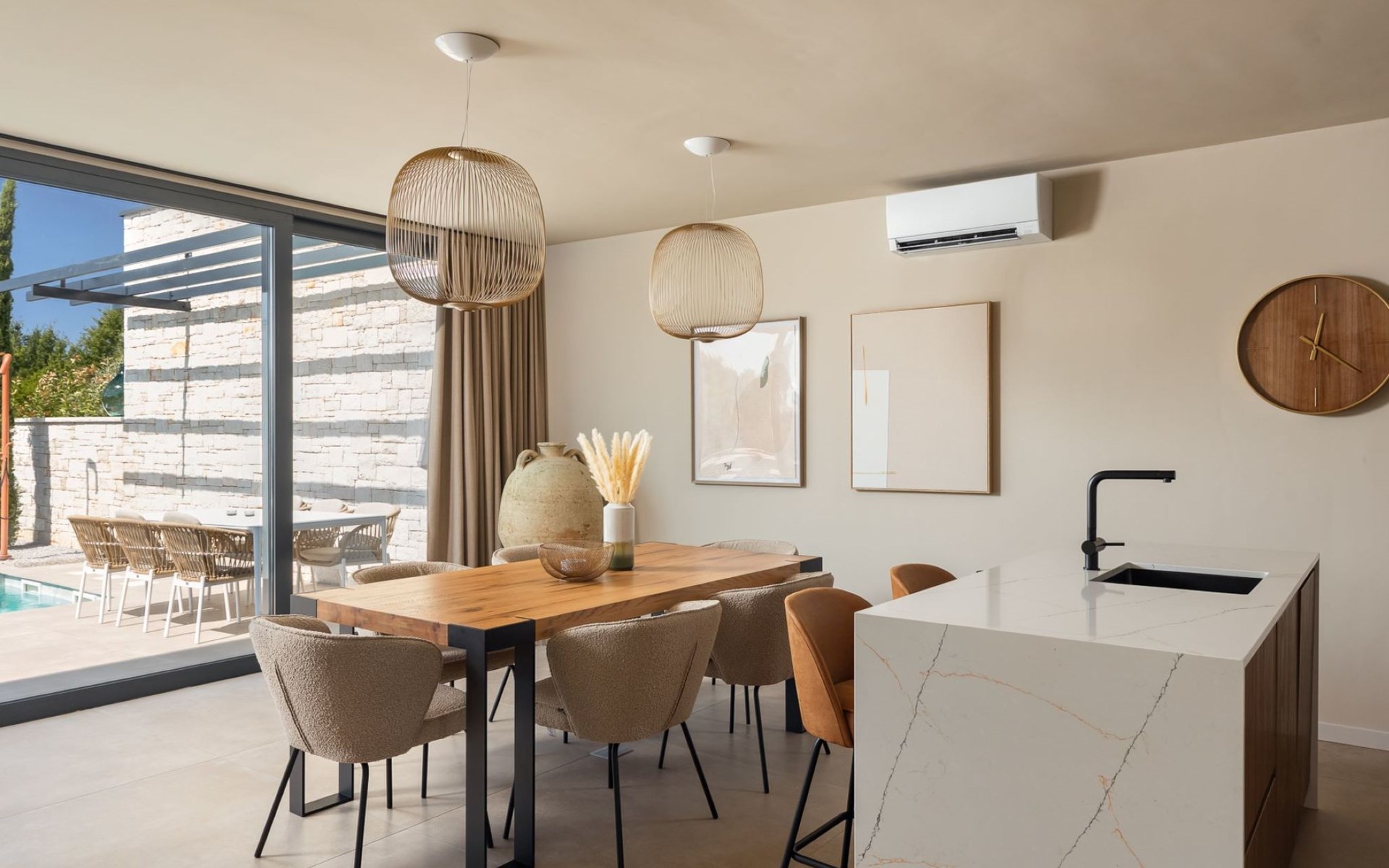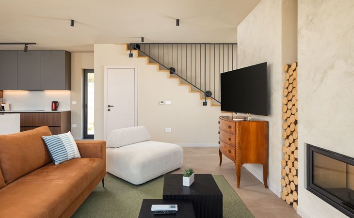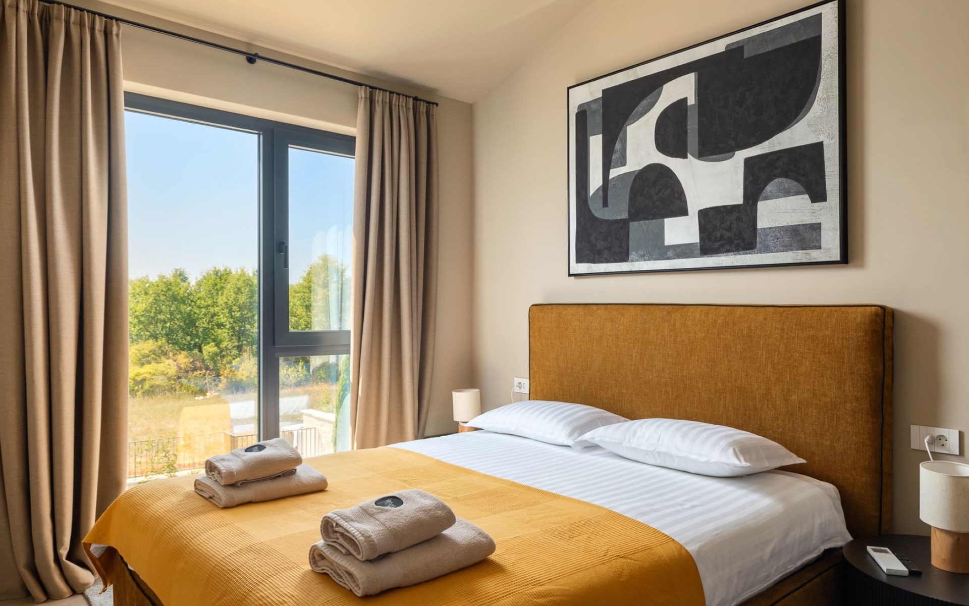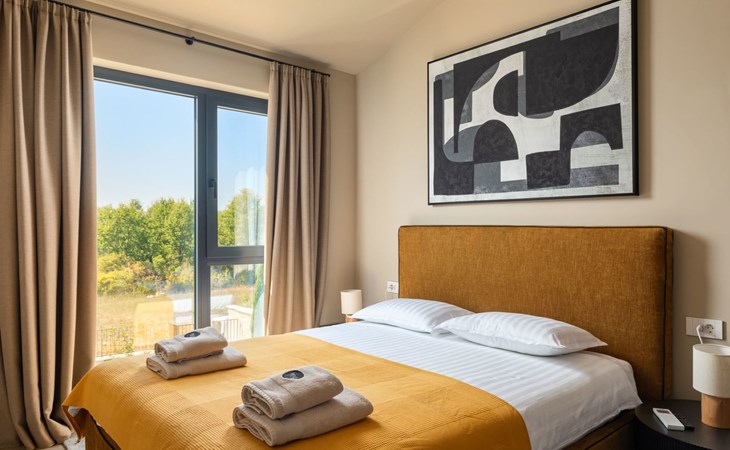 Zeer mooi twee onder één kap woning "Tia 2", van 2 verdiepingen, bouwjaar 2024. In het gehucht Mihatovići, 1 km van het centrum van Nova Vas, 5 km van het centrum van Poreč, 4.5 km van zee, 4.5 km van het strand. Voor alleengebruik: terrein 400 m2 (omheind), tuin met gazon, openluchtzwembad hoekig, verwarmd (7 x 3 m, 21 m2, 140 cm diepte, seizoensgebonden beschikbaarheid: 01.Apr. - 01.Nov.) met trap en zout-elektrolyse. Buitendouche, terras (20 m2), barbecue. In het huis: internetaansluiting, sauna, hot tub, wasmachine. Parkeerplaats (voor 2 auto's) bij het huis op het terrein. Winkel 1.5 km, winkelcentrum 3 km, restaurant 70 m, café 1.5 km, bushalte 2.8 km, kiezelstrand 4.5 km, rotsstrand 4.5 km. Attracties in de buurt: Aquapark 9 km. Groepen jongeren uitsluitend op aanvraag. Vliegveld 46 m van het huis.