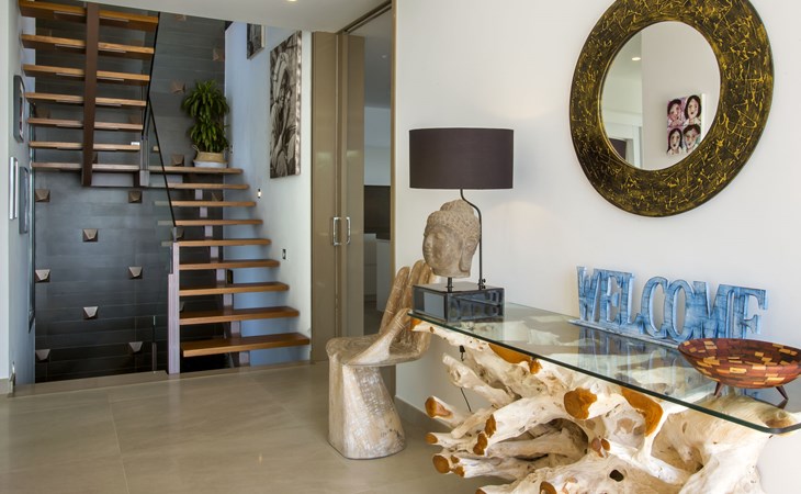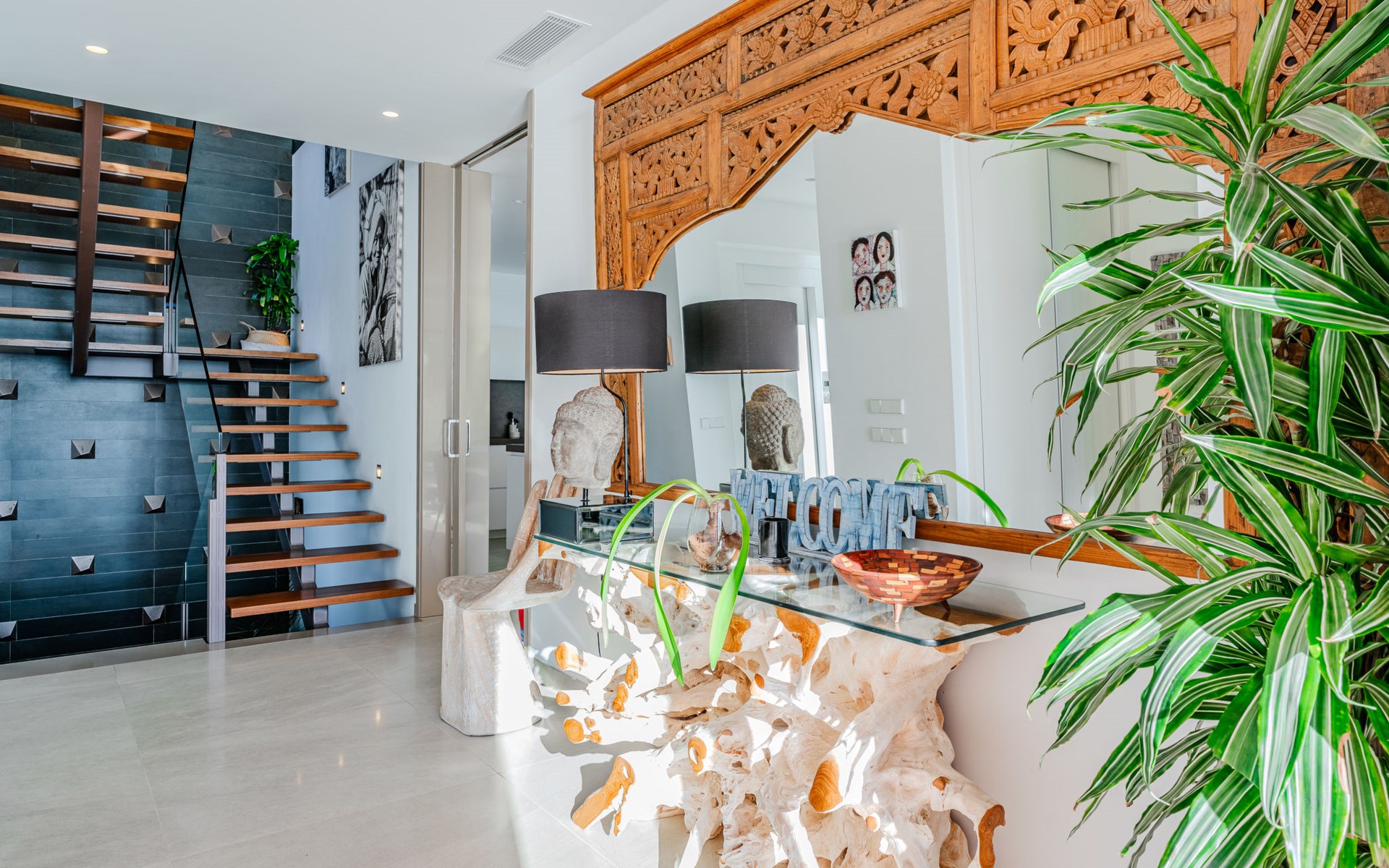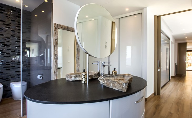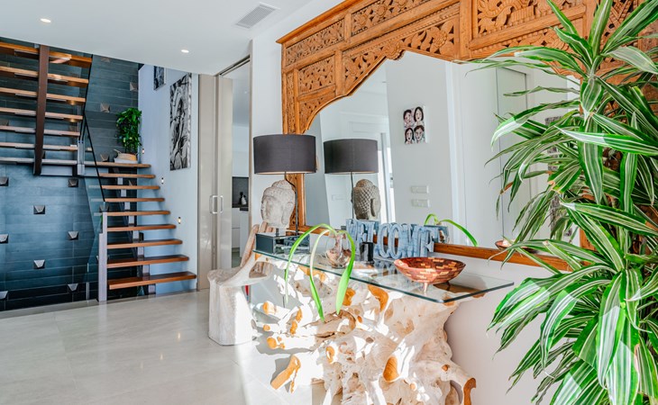 Zeer groot, zeer luxueuze villa "Bali Infinity", van 2 verdiepingen. In de wijk La Cuesta de San Antonio, 1 km van zee, 1 km van het strand. Voor alleengebruik: openluchtzwembad (9 x 5 m, 110 - 180 cm diepte, seizoensgebonden beschikbaarheid: 01.Jan. - 31.Dec.). Douche/WC bij het zwembad, buitendouche, hot tub, terras, tuinmeubelen, barbecue, grill. In het huis: fitnessruimte, hot tub, tafeltennis, lift, centrale verwarming, air-conditioning, wasserette, wasmachine, droger. Parkeerplaats (voor 3 auto's) op het terrein, eigen garage. Winkel 1 km, supermarkt 3 km, restaurant 1 km, bushalte 2 km, zandstrand "Arenal" 4 km kiezelstrand "La Grava" 1 km. Jachthaven 1 km, jachthaven 1 km, surfschool 1 km, zeilschool 1 km, tennis 2 km.