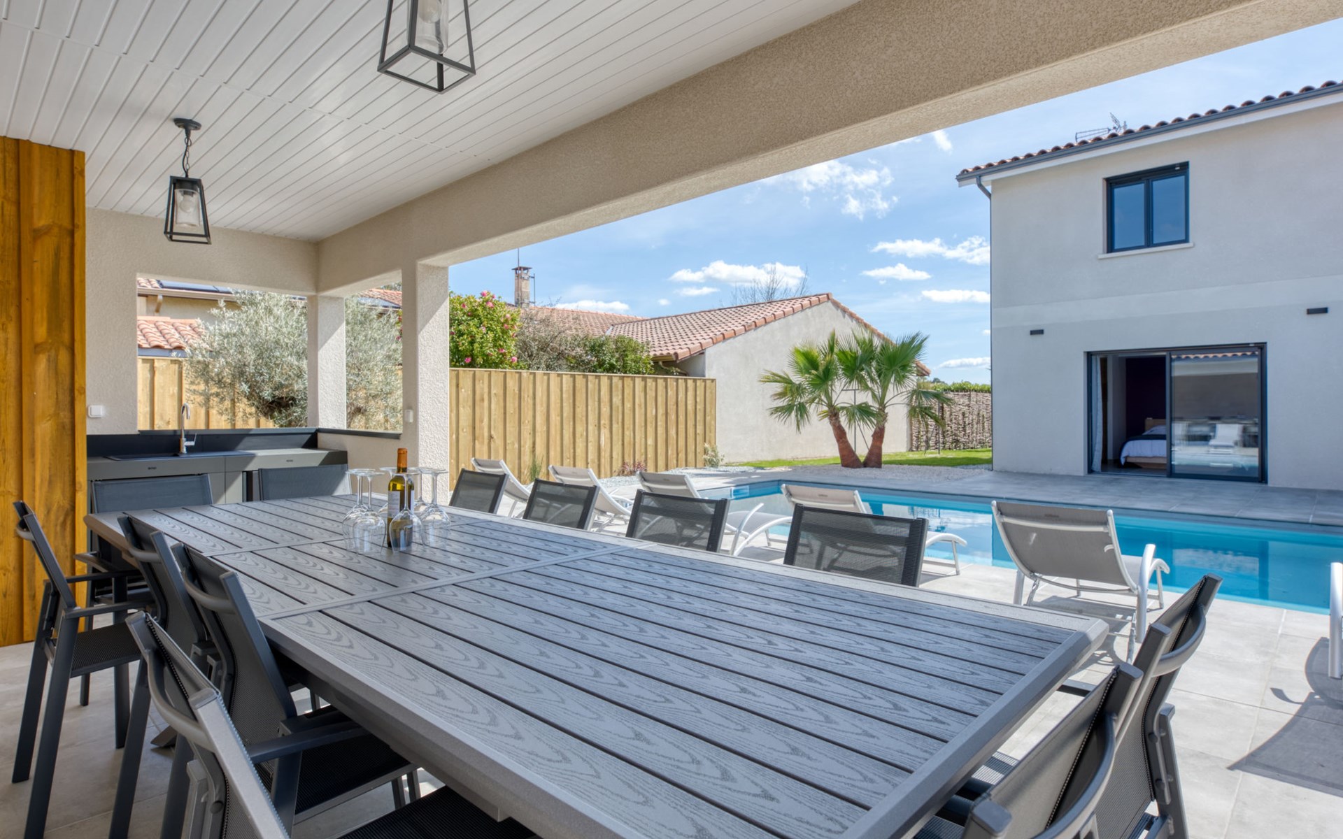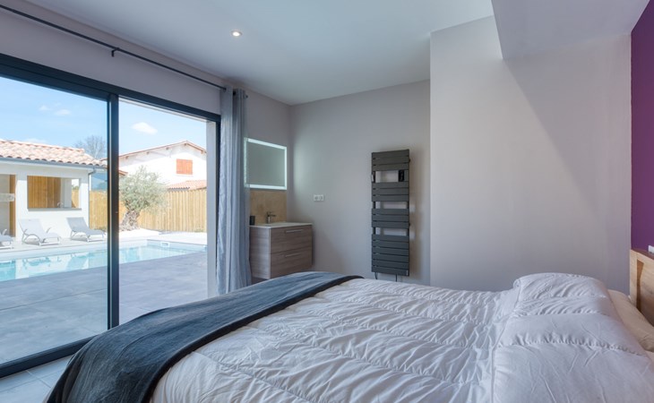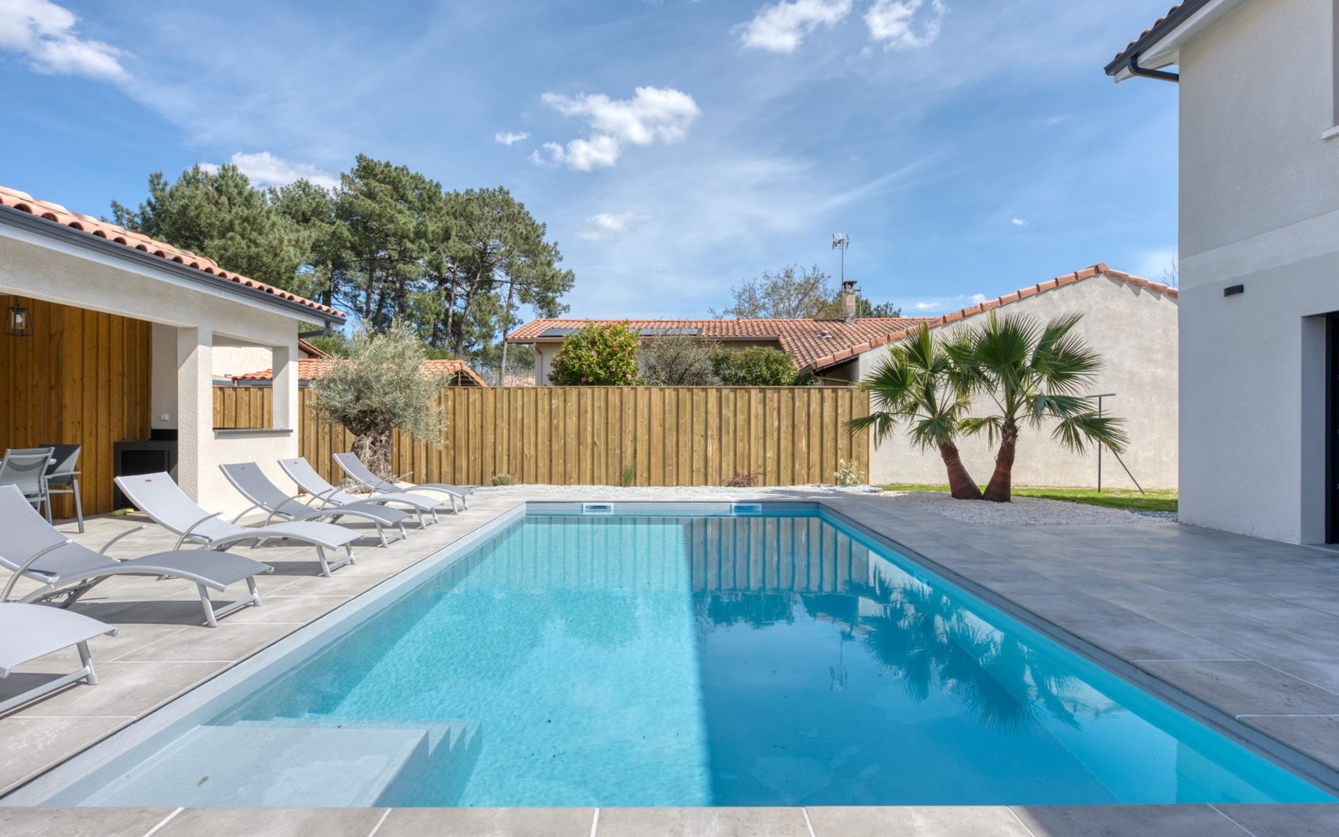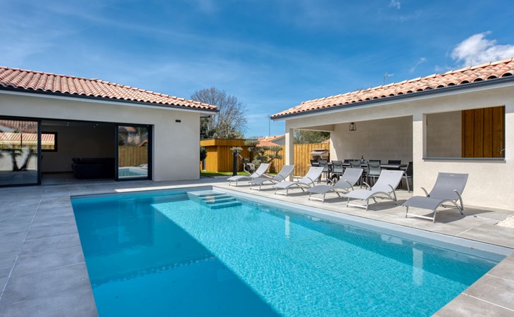 Mooi villa "Villa des écureuils". In de wijk Cassy, 3 km van het centrum van Lanton, 4.5 km van het centrum van Andernos-les-Bains, 35 km van het centrum van Arcachon, rustige ligging in een woonwijk, 1.5 km van zee, 1.5 km van het strand. Voor alleengebruik: terrein 800 m2 (omheind), verzorgde tuin met gazon en bomen, openluchtzwembad hoekig, geen inkijk (8 x 4 m, 140 cm diepte, seizoensgebonden beschikbaarheid: 15.Mei. - 31.Okt.) met trap en alarminstallatie. Buitendouche, poolhouse, terras, tuinmeubelen. In het huis: bergruimte voor fietsen. Parkeerplaats (voor 2 auto's) bij het huis op het terrein, openbare parkeerplaatsen in de straat. Winkel 1.2 km, supermarkt 3 km, bushalte "Les Fougères" 290 m, zandstrand "Plage de Cassy (Bassin)" 1.5 km. Jachthaven 1.5 km, golfterrein (9 holes) 2 km, manege 10 km. Attracties in de buurt: Plage océane du Grand Crohot 20 km, Le Cap Ferret 35 km, Bordeaux 45 km.