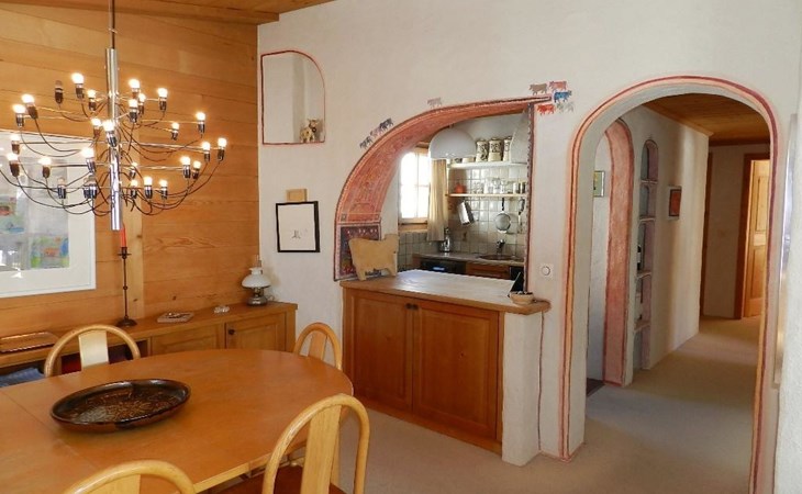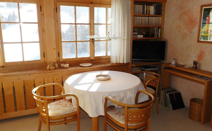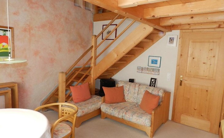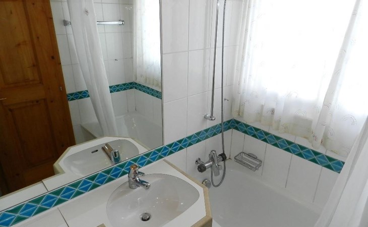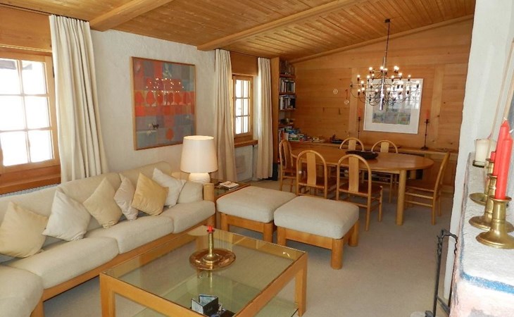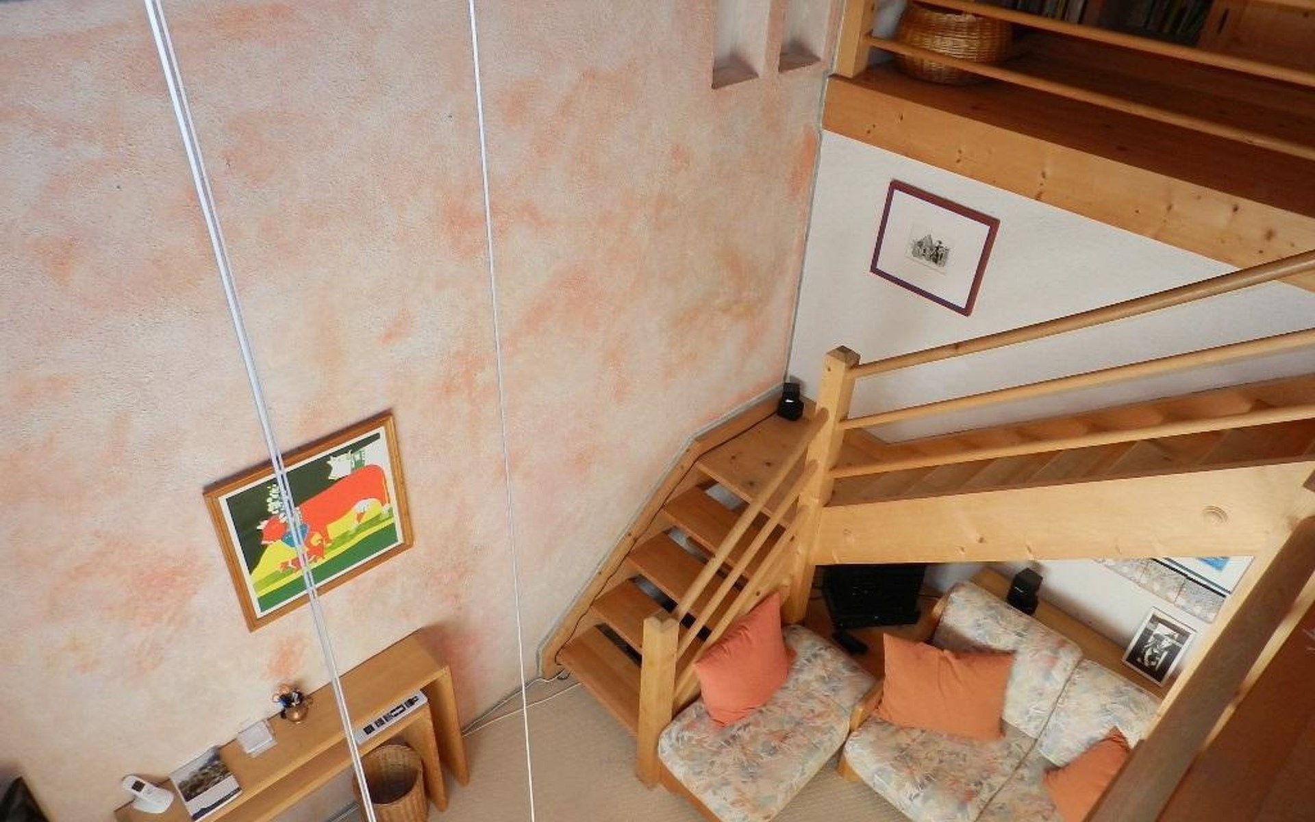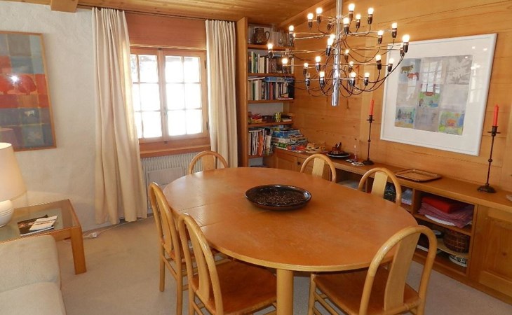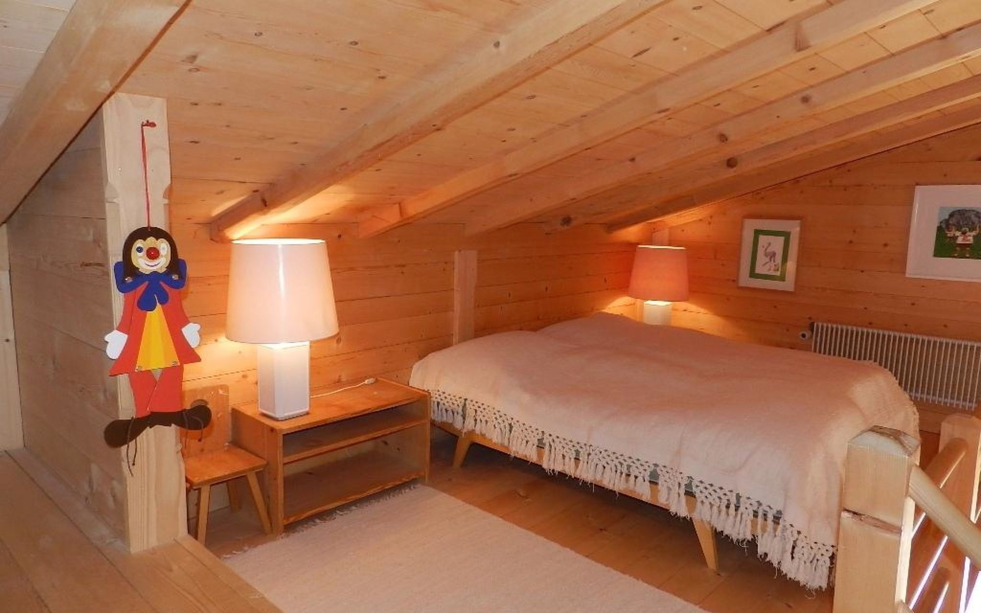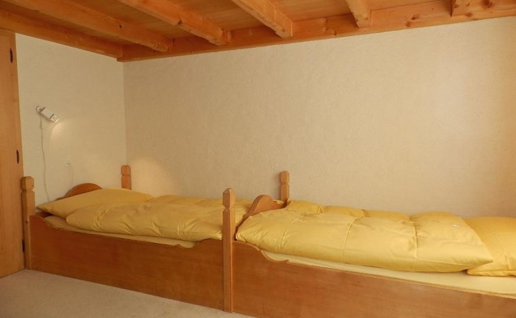 Living-/dining room with open-plan kitchen (among other things furnished with coffee machine with capsules (Nespresso) as well as a fondue- and raclette-set), dining table, chimney and sofa. 1 bedroom with 2 single beds (2x90x200cm) which are pushed together. 1 bedroom with 2 single beds (2x90x200cm), round table, little sofa, TV and gallery with 2 other single beds (2x90x200cm). 1 bathroom with bathtub and toilet. WiFi.