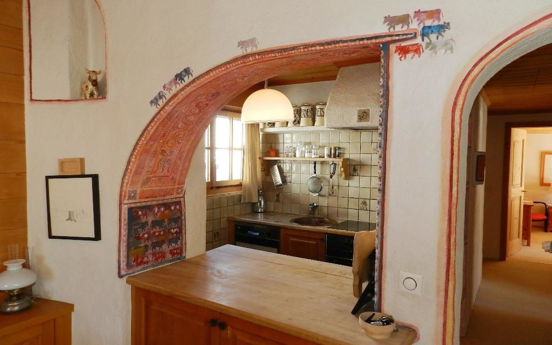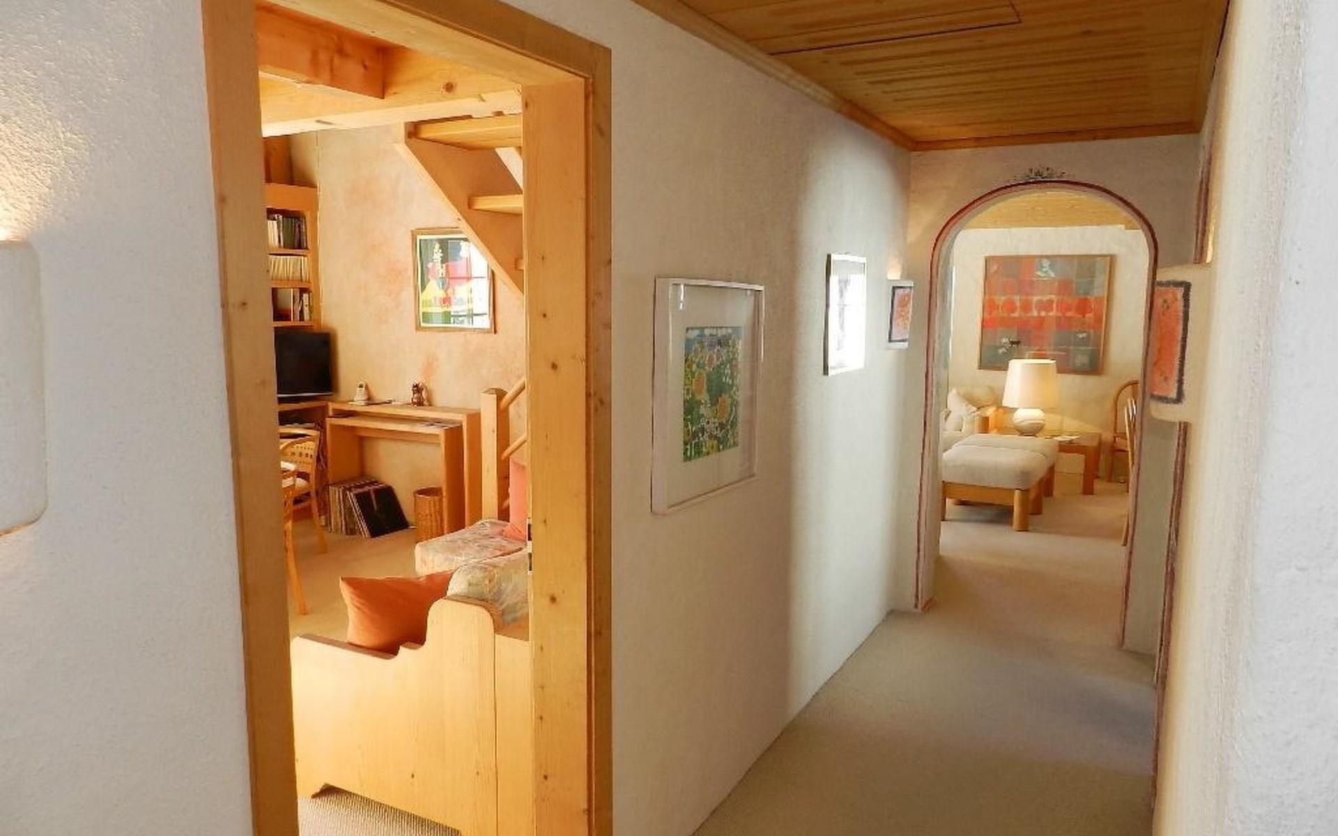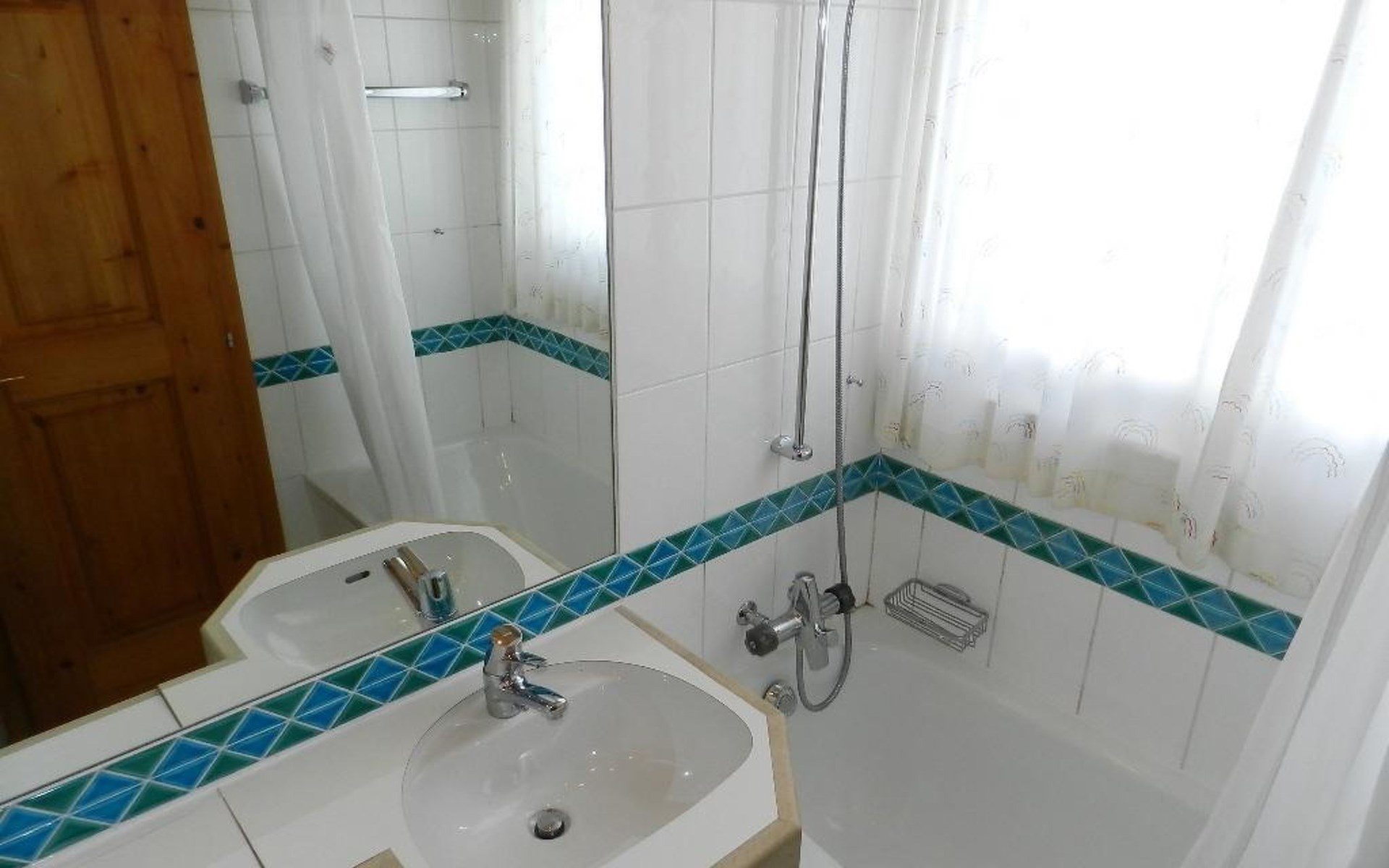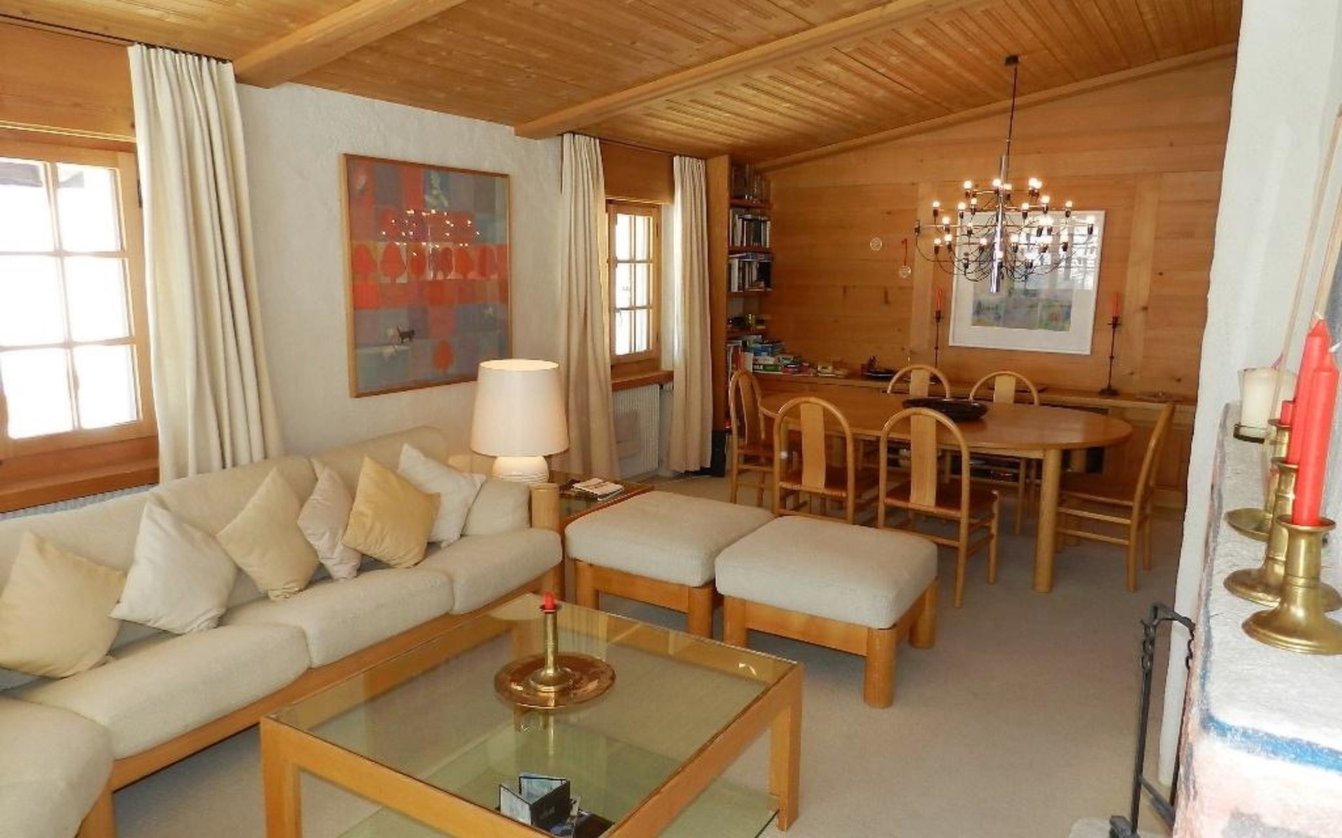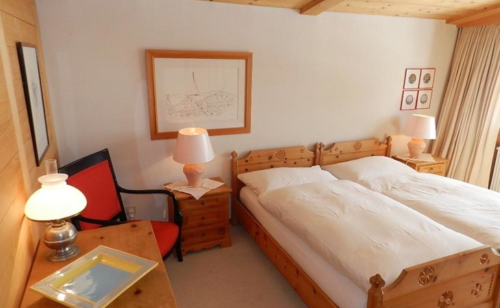 Living-/dining room with open-plan kitchen (among other things furnished with coffee machine with capsules (Nespresso) as well as a fondue- and raclette-set), dining table, chimney and sofa. 1 bedroom with 2 single beds (2x90x200cm) which are pushed together. 1 bedroom with 2 single beds (2x90x200cm), round table, little sofa, TV and gallery with 2 other single beds (2x90x200cm). 1 bathroom with bathtub and toilet. WiFi.