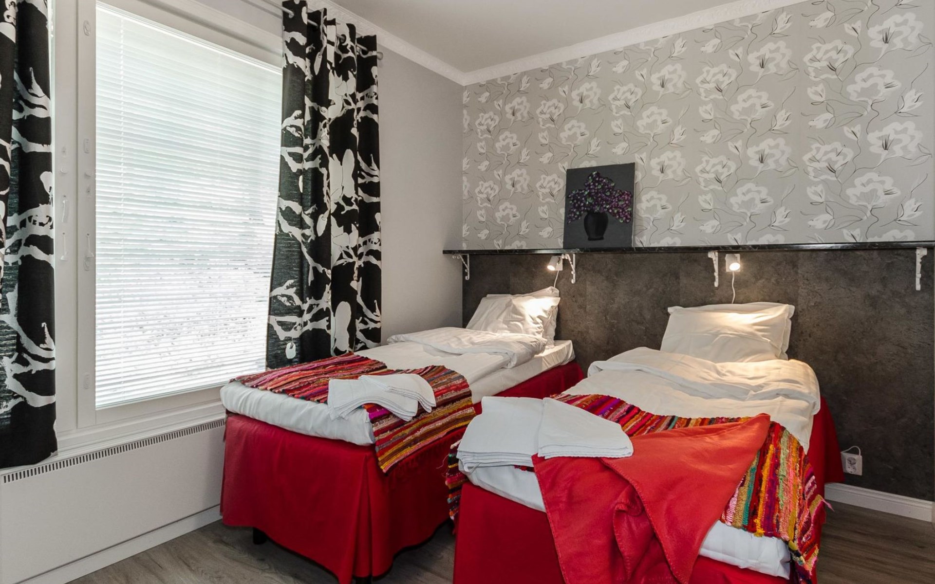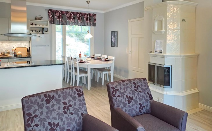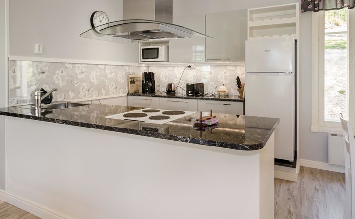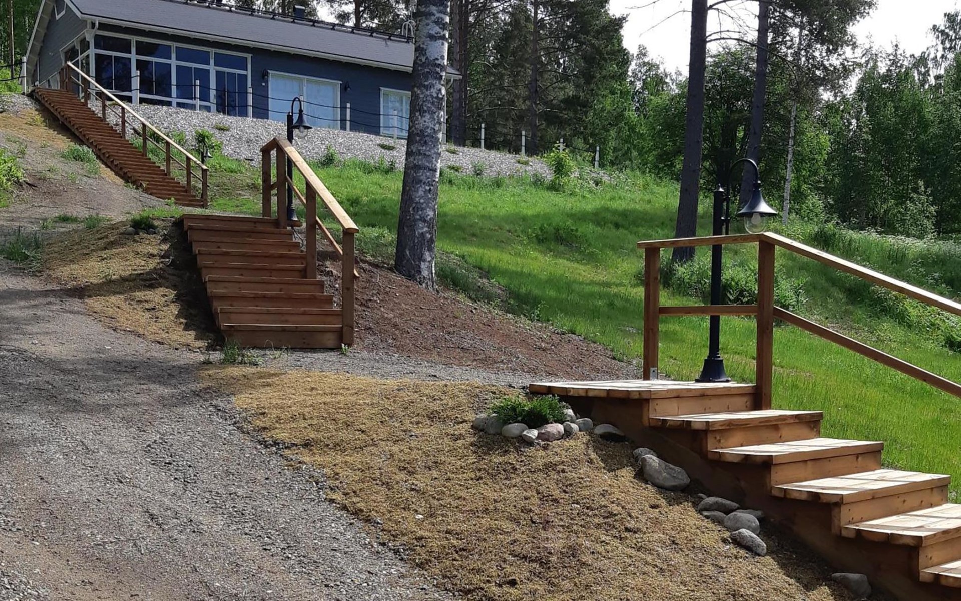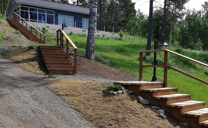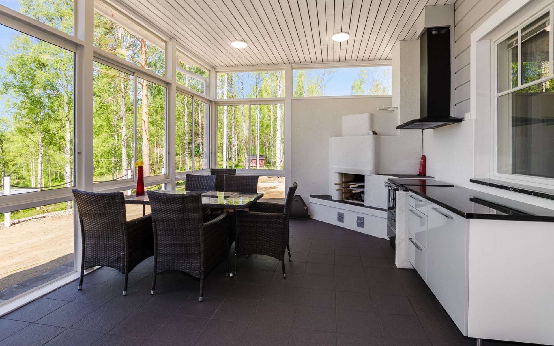 A wood-heated 32 m² sauna on the shore. There are 2 rain showers, toilet and porch. A sofa bed for 2 extra persons on the porch/living room (living room area is about 15 m² and it has sliding glass door).