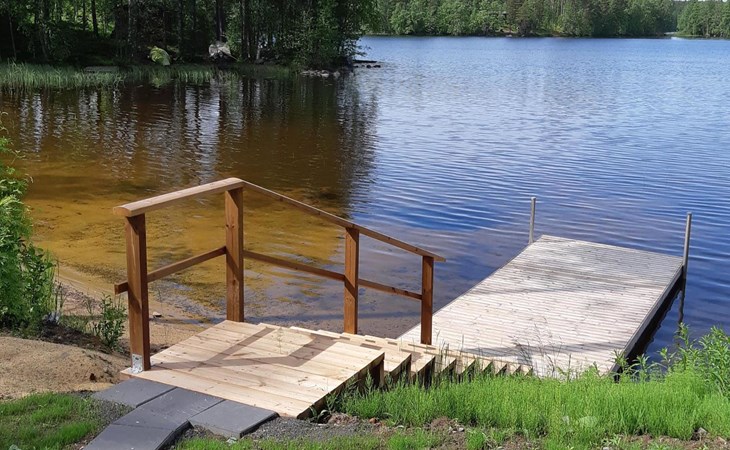 74 km to the south from Joensuu, lake Pyhäjärvi 60 m (206,79 km²), shallow, child-friendly natural sand beach, own beach, own boat. Holiday cabin 2020, living room/kitchen, 2 bedrooms, both with 2 beds (can be also moved together), private WC and TV. Electric sauna, washroom, dressing room.