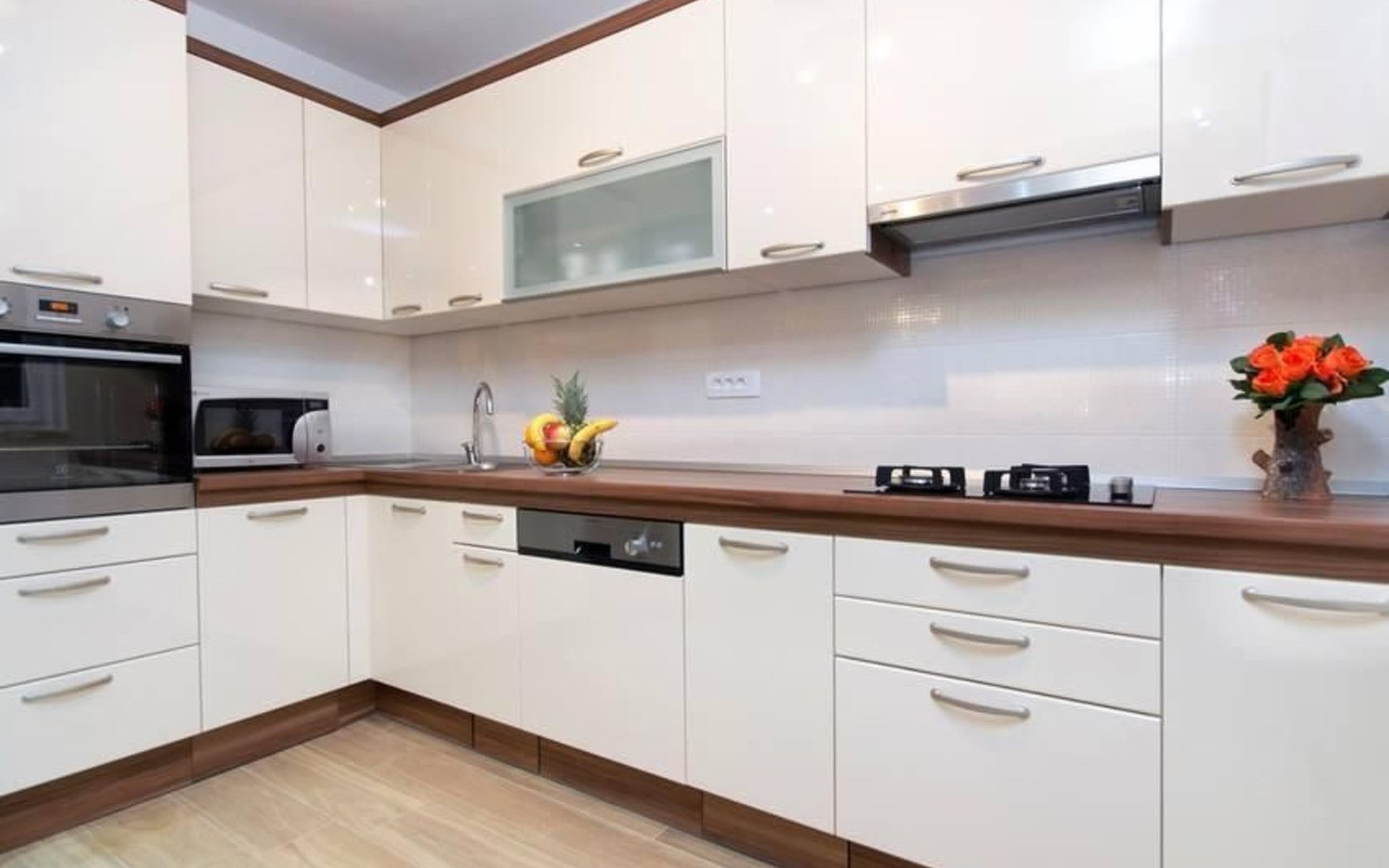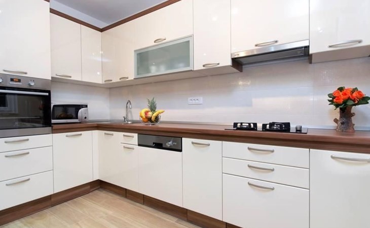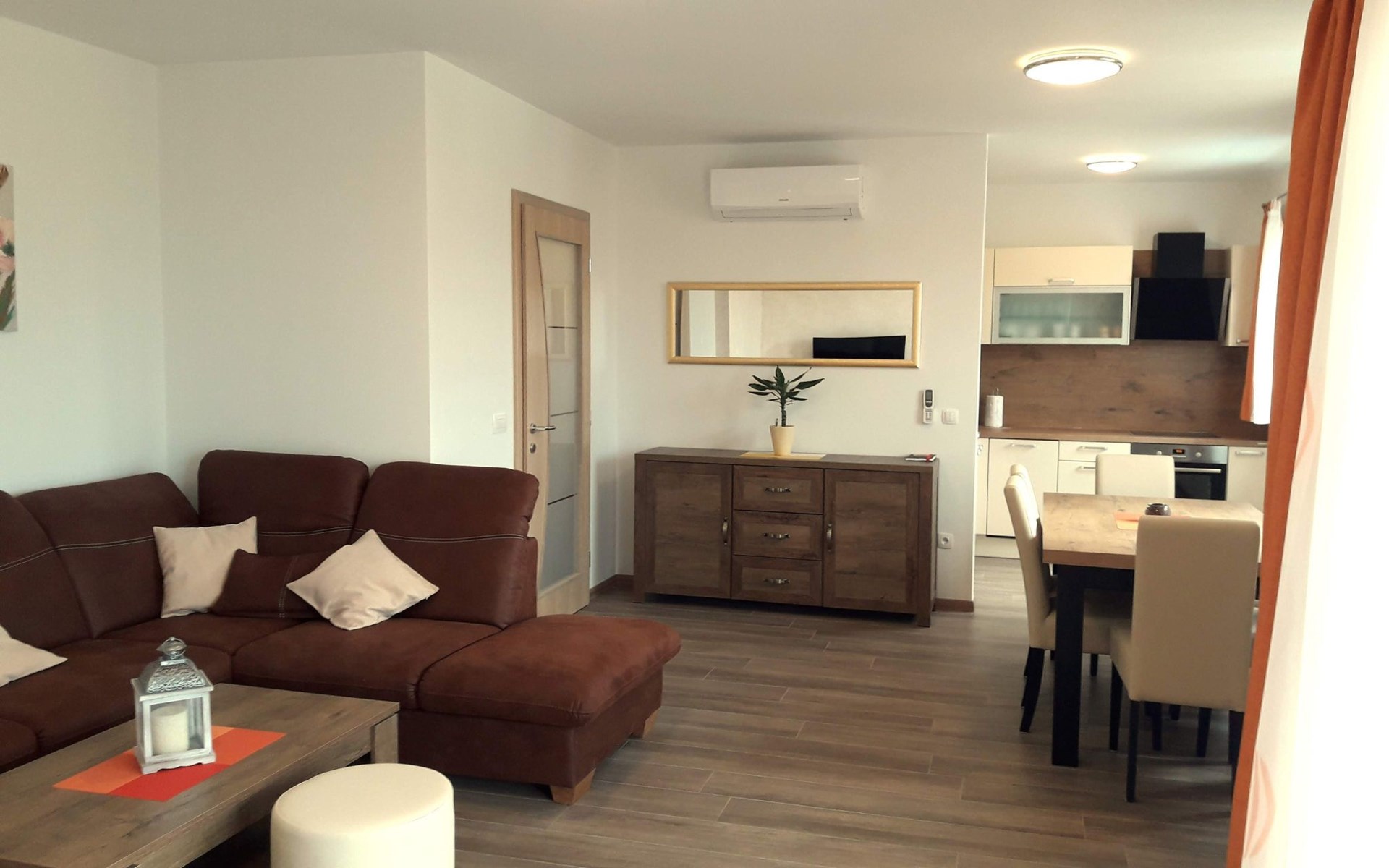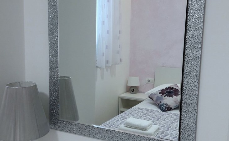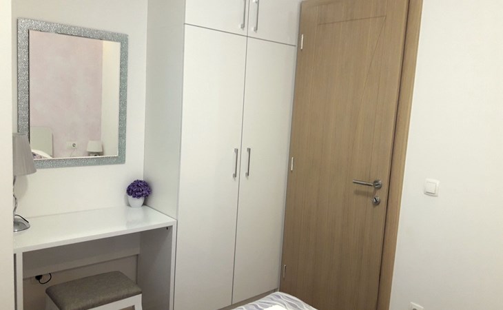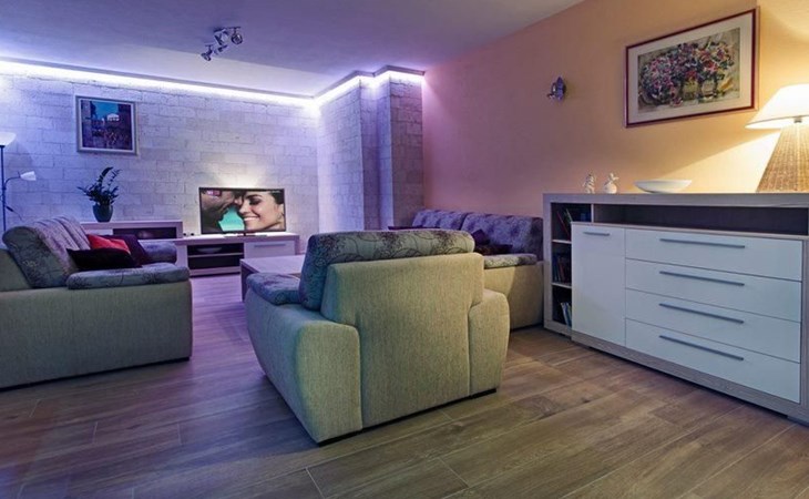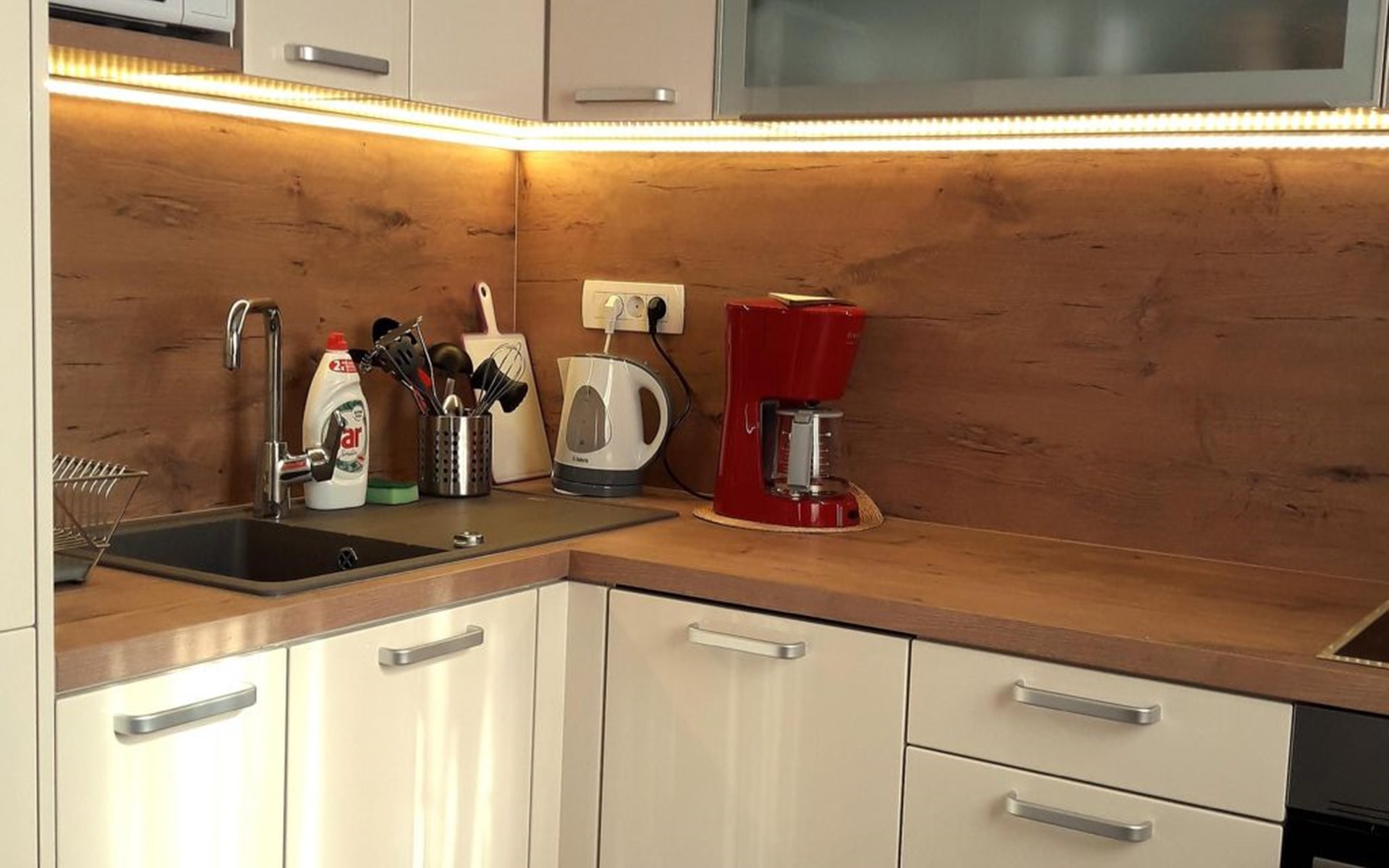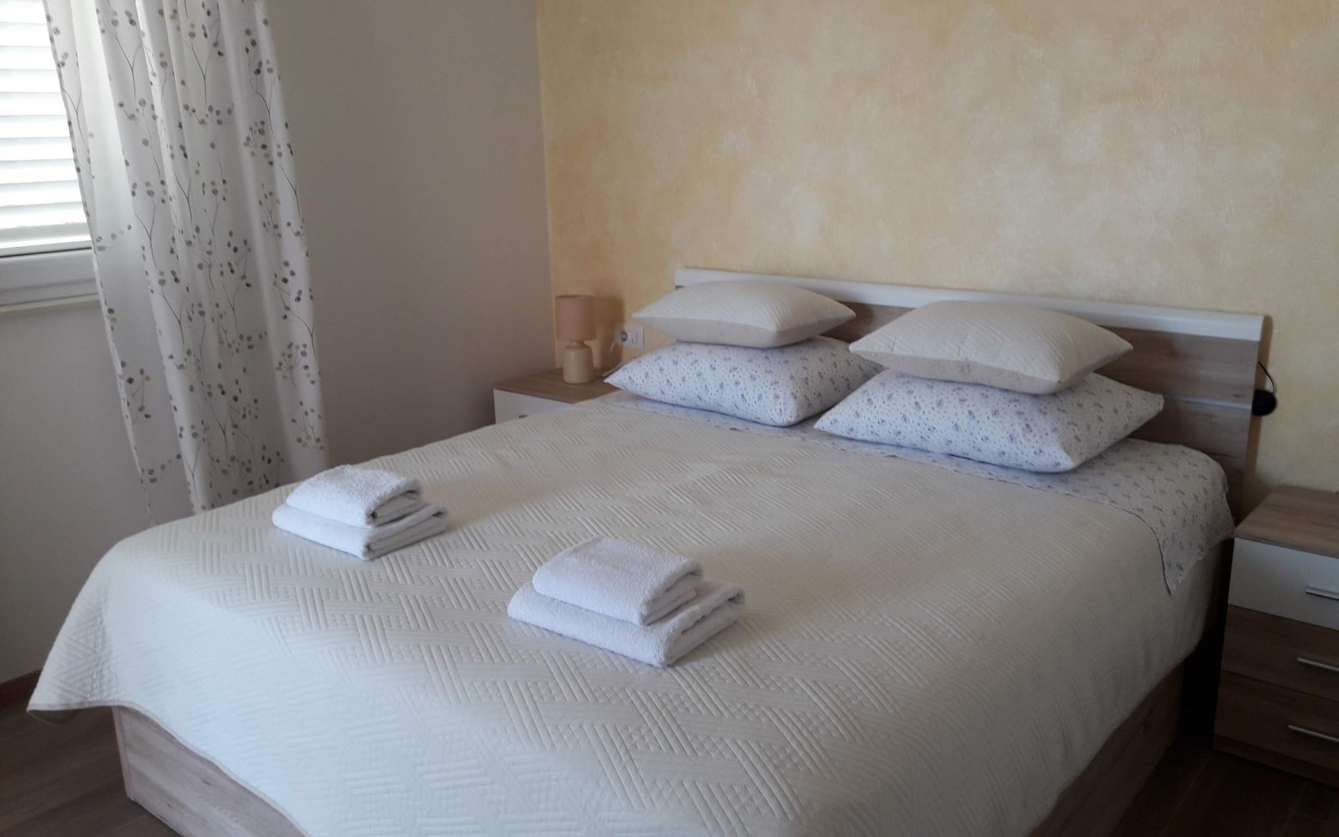 This comfortable and modern holiday flat with pool is located on the ground floor and first floor of an uninhabited private house with private parking and large terraces. The property is located in the eastern part of the town of Makarska, a town in the south of Croatia, southeast of Split, in the immediate vicinity of the city centre.Stepping through a sliding door from the living room you enter the terraces, where two benches, a long table with cosy chairs are available for outdoor dining. A sun canopy and an extendable marquise provide protection from the Mediterranean sun while dining. A small staircase paves the way to the pool area with an outdoor shower, sun roof area, adjustable sun loungers for sunbathing and the 24 m² pool. A barbecue for a barbecue evening is of course also available on site. The courtyard offers several parking spaces for those arriving by car.The house has three floors, but the second floor is closed. This makes the holiday flat ideal for a shared and relaxing holiday with groups of friends or a large family of up to twelve people, while still offering plenty of privacy. Built in 2013, emphasis was placed on comfortable and modern furnishings. On two living areas totalling 260 square metres, you are welcomed into six bedrooms, five of which have a double bed and one has two single beds. The living space is divided into three living and dining areas with three open-plan kitchens. There are also five shower rooms. In four bedrooms you will find a comfortable night's sleep in a double bed with a width of 180 cm. There are two bedside tables with reading lamps on both sides of the bed. The window, which can be fully opened on both sides, gives you a view of the greenery. In one bedroom, a wide double bed (160 cm) also offers you a restful night's sleep and has been furnished with a wardrobe at the headboard. Here, too, you can look out of the window and enjoy the view of nature. Another bedroom is slightly narrower and welcomes you with two single beds, which can be put together on request before your arrival. There is also a wardrobe and a bedside table with a reading lamp in this room. From the window, you can enjoy a sweeping view of the hilly surroundings. In the living room, you can sit together on three comfortable sofas. Three large flat screens with digital satellite TV and TV USB connection allow you to watch international TV as well as organise a film evening using the external USB storage device you have brought with you. On the way from the living room to the kitchen (in two separate flats), you will pass a massive dining table with six upholstered high-back chairs. The three kitchens are equipped with a fridge-freezer, dishwasher, microwave, built-in oven, gas/electric hob and small electrical appliances such as a coffee machine, kettle and toaster for your extensive self-catering needs. All five bathrooms are equipped with a wash hand basin, mirror, WC and shower curtain. While one bathroom has a shower in the bathtub, the others are equipped with a shower in the corner of the room. In addition to bed linen and towels, which are provided free of charge, Internet access via WLAN is also included. Inside the house, all rooms are equipped with air conditioning.There is a large Kaufland supermarket just 50 metres away, with a bureau de change, café, cash machine etc. A pebble beach is just 1000 metres away. The old town is 800 metres away on foot or by car. Restaurants and pubs invite you to stop for a bite to eat. There are water sports facilities on the beach and a tennis court 500 metres away.In addition to the high-quality furnishings, the special feature of this holiday home is certainly its privacy. Although the owner does not live in the house, he is available to you at any time.
