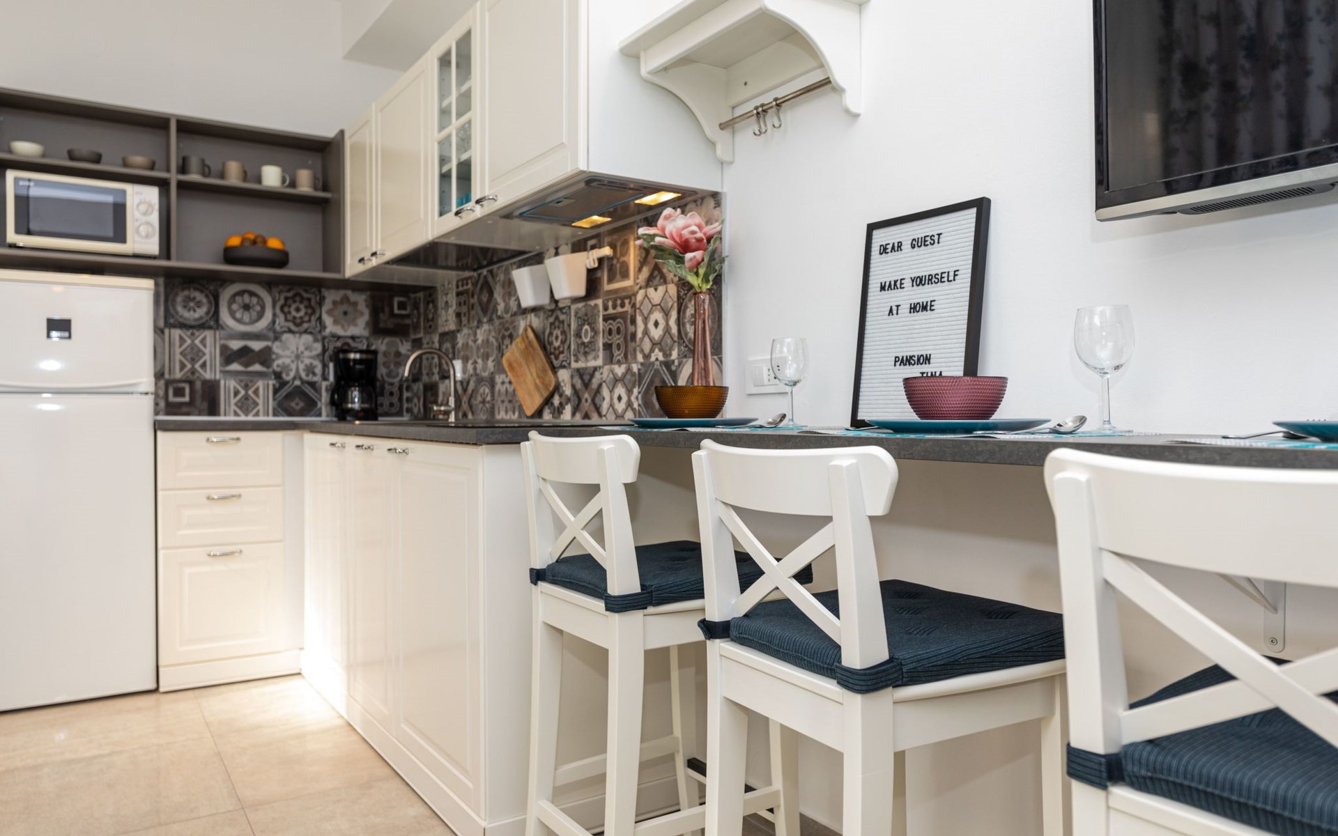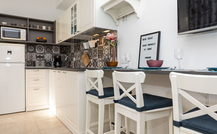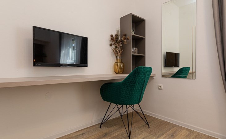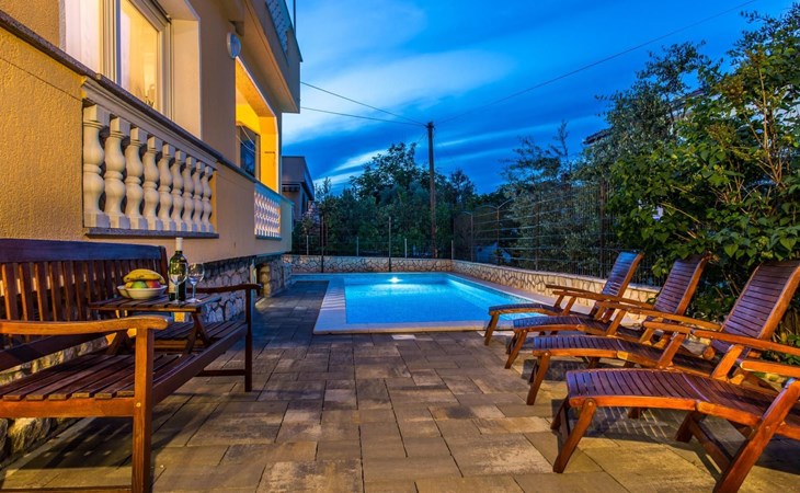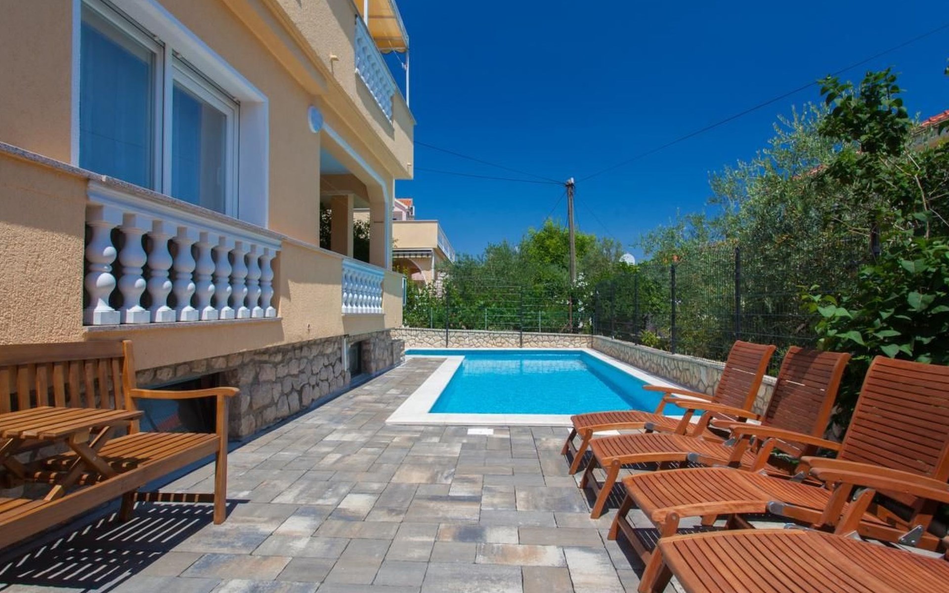 Each apartment has a balcony and free Wi-Fi , air-conditioned and have satellite TV . The apartments are equipped for self-catering , and the hosts are always at your disposal . All guests at the heated outdoor swimming pool and sun terrace in the garden . Heated pool will provide fun and somewhat colder months . The courtyard is completely enclosed by a fence and provides guests with privacy . In addition to the pool there is a barbecue , and the back yard playground and table tennis .