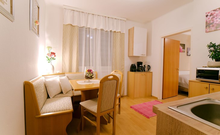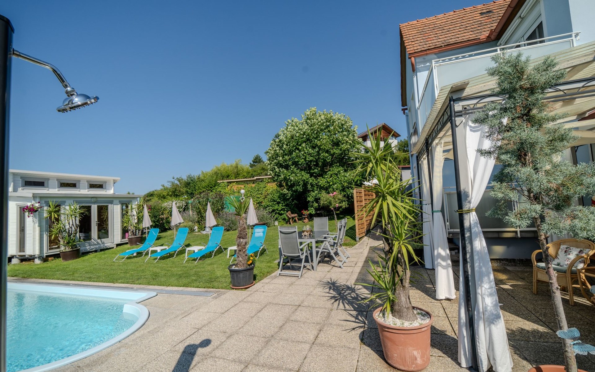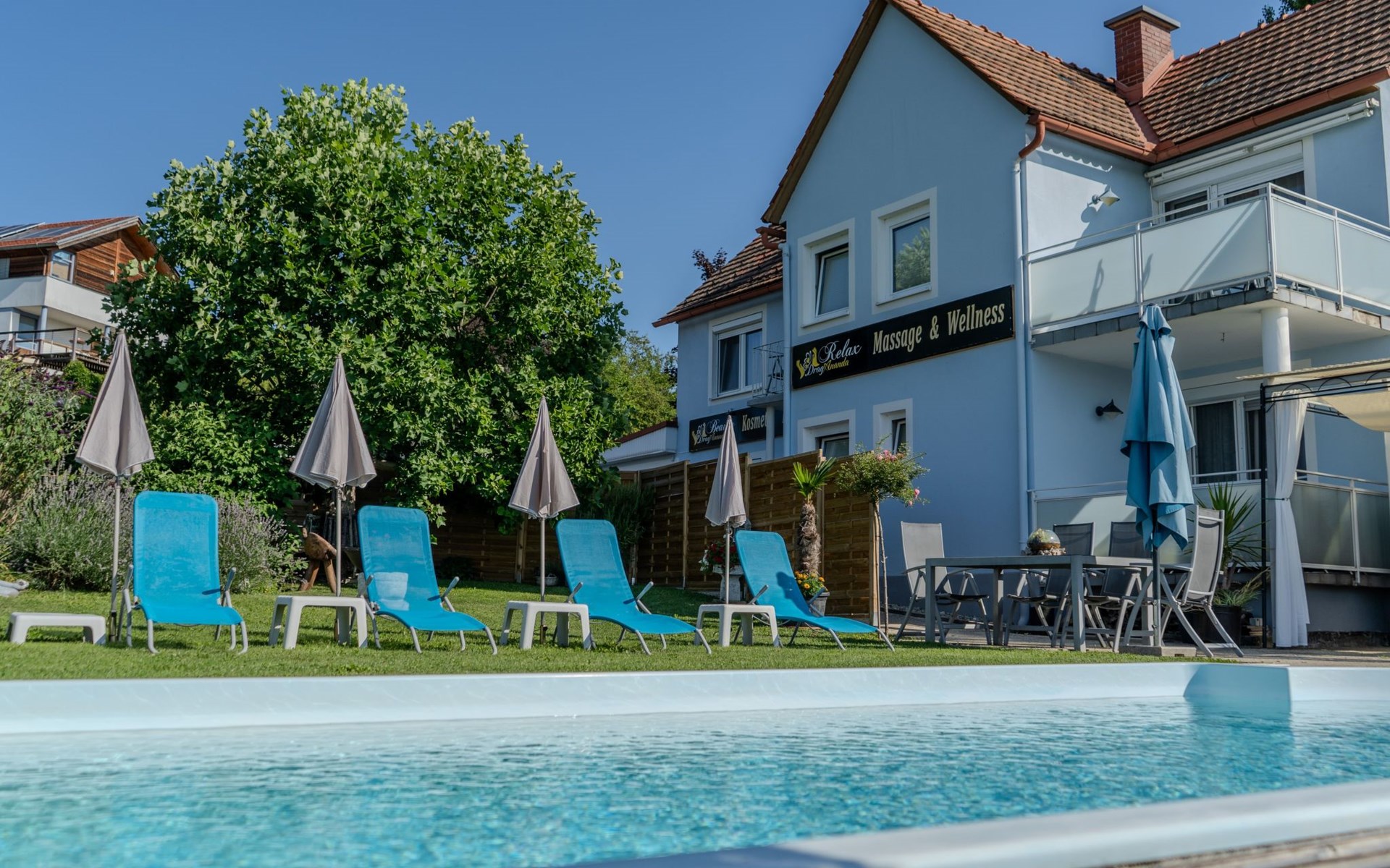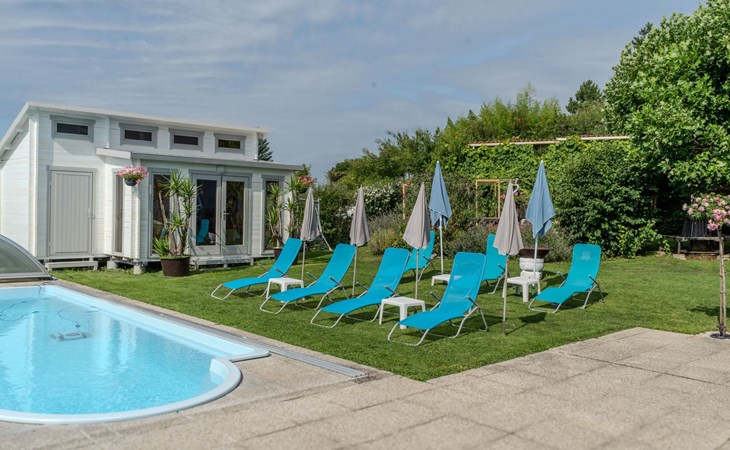 All year round, your Casa Ananda offers you relaxation in the popular health resort of Bad Gleichenberg. Our idyllic spa town is located in the Styrian volcanic region. An ideal place for hikes to attractive destinations and sights in a scenic setting. The thermal spa of tranquillity with the well-known soothing healing power of the thermal water and the 25-hectare spa park with its old trees invite you to total relaxation.The ANDA holiday flat has its own entrance. A staircase leads to the first floor where you can use the two rooms, kitchen, toilet, bathroom, balcony and terrace without being disturbed. Our beautiful holiday flat offers: two very cosy bedrooms with double bed, flat screen TV, satellite TV, kitchenette with sink, fridge, microwave, cooker, toaster, coffee machine, kettle, terrace (8m²) and balcony (3m²), bathroom with bathtub and shower with free care products, bed linen, towels, bath towels are provided, WLAN and parking free of charge. Fully fenced garden with biotope, garden sauna, swimming pool, fitness room, deckchairs, seating, barbecue, covered car park - all this is included in your flat priceOur wellness centre (massage - cosmetics - pedicure - manicure), which is located on the ground floor, invites you to be pampered by our highly qualified team of therapists.The Therme der Ruhe is located in the Bad Gleichenberg spa centre 2.5 km from Casa Ananda. Dinosaurs, climbing park and family-friendly gastronomy characterise the Styrian Dino Park. An excursion worth seeing, only 4.2 km from Casa Ananda. A flavourful experience just 16 km from Casa Ananda:endless chocolate for EVERYONE! Zotter chocolate factory.