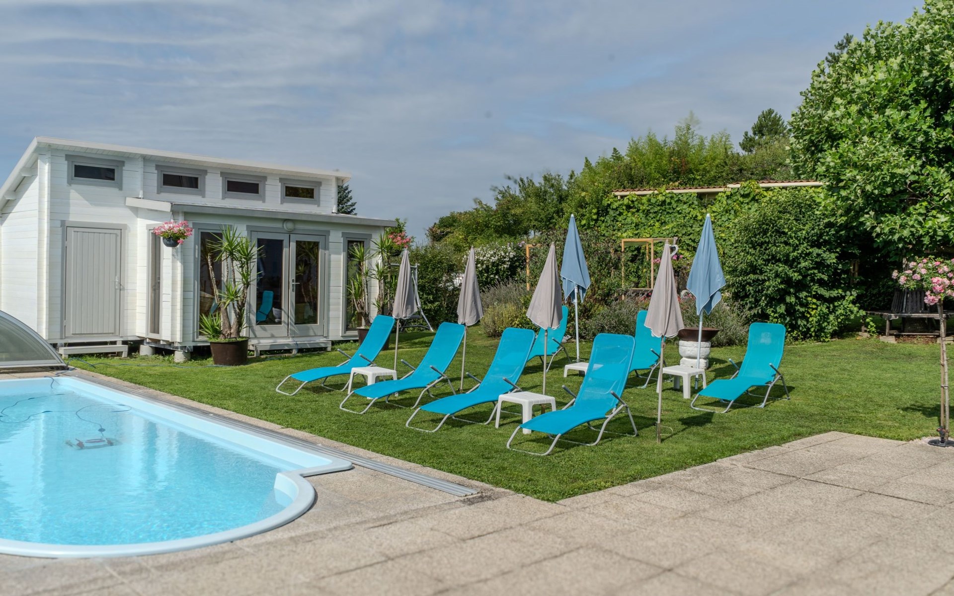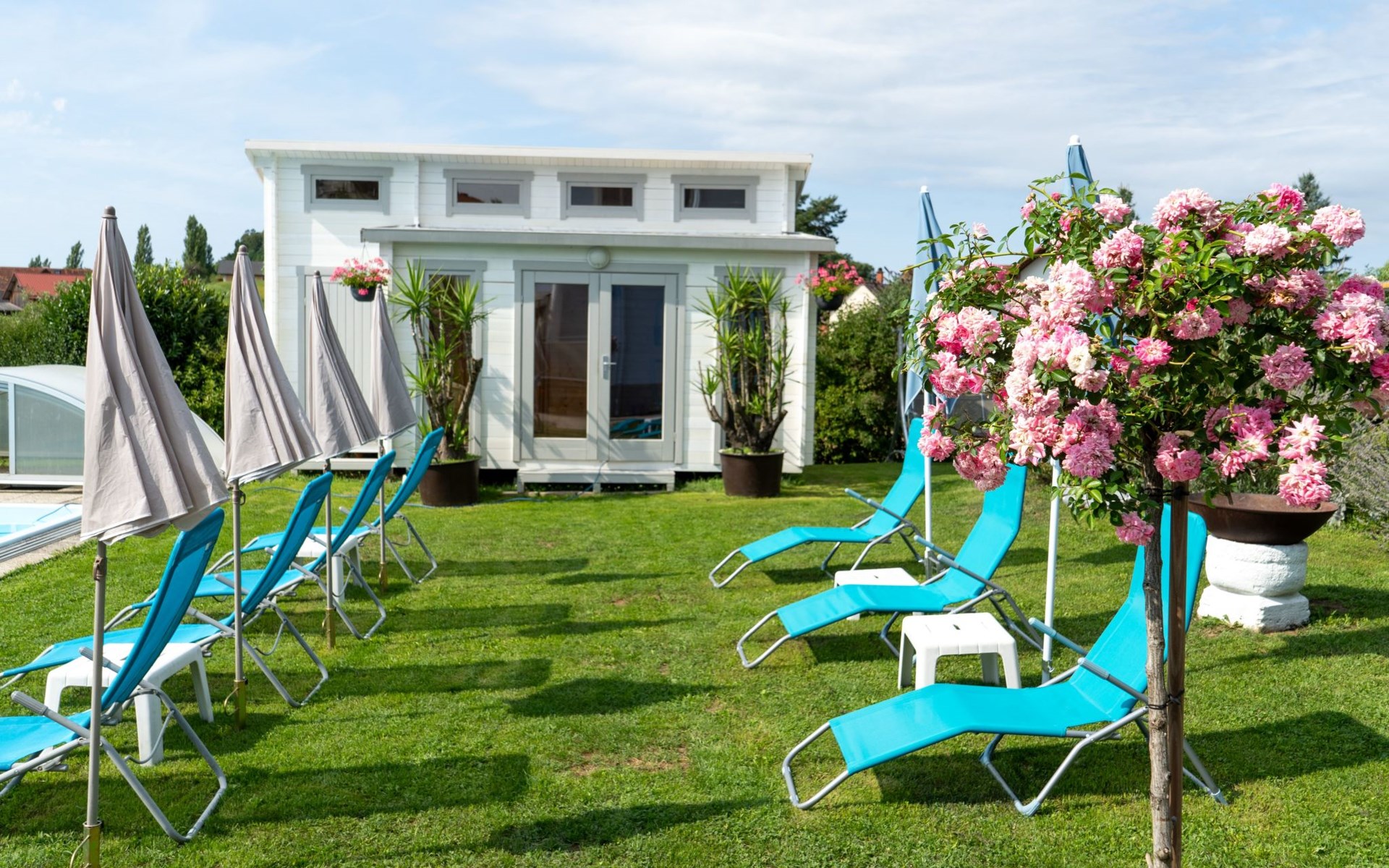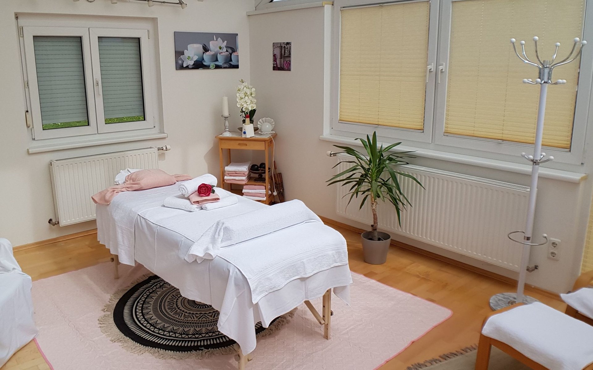 All year round, your Casa Ananda offers you relaxation in the popular health resort of Bad Gleichenberg. Our idyllic spa town is located in the Styrian volcanic region. An ideal place for hikes to attractive destinations and sights in a scenic setting. The thermal spa of tranquillity with the well-known soothing healing power of the thermal water and the 25-hectare spa park with its old trees invite you to total relaxation.The ANDA holiday flat has its own entrance. A staircase leads to the first floor where you can use the two rooms, kitchen, toilet, bathroom, balcony and terrace without being disturbed. Our beautiful holiday flat offers: two very cosy bedrooms with double bed, flat screen TV, satellite TV, kitchenette with sink, fridge, microwave, cooker, toaster, coffee machine, kettle, terrace (8m²) and balcony (3m²), bathroom with bathtub and shower with free care products, bed linen, towels, bath towels are provided, WLAN and parking free of charge. Fully fenced garden with biotope, garden sauna, swimming pool, fitness room, deckchairs, seating, barbecue, covered car park - all this is included in your flat priceOur wellness centre (massage - cosmetics - pedicure - manicure), which is located on the ground floor, invites you to be pampered by our highly qualified team of therapists.The Therme der Ruhe is located in the Bad Gleichenberg spa centre 2.5 km from Casa Ananda. Dinosaurs, climbing park and family-friendly gastronomy characterise the Styrian Dino Park. An excursion worth seeing, only 4.2 km from Casa Ananda. A flavourful experience just 16 km from Casa Ananda:endless chocolate for EVERYONE! Zotter chocolate factory.