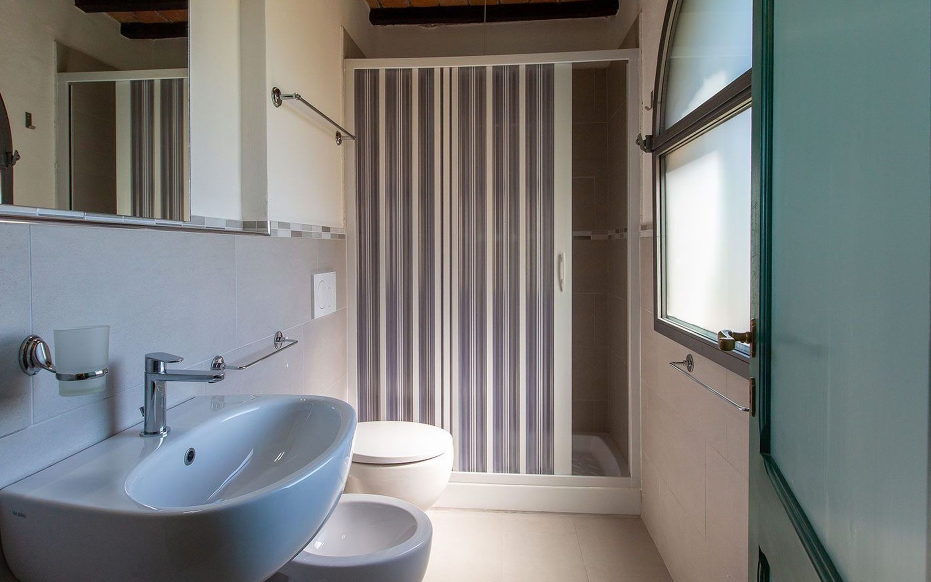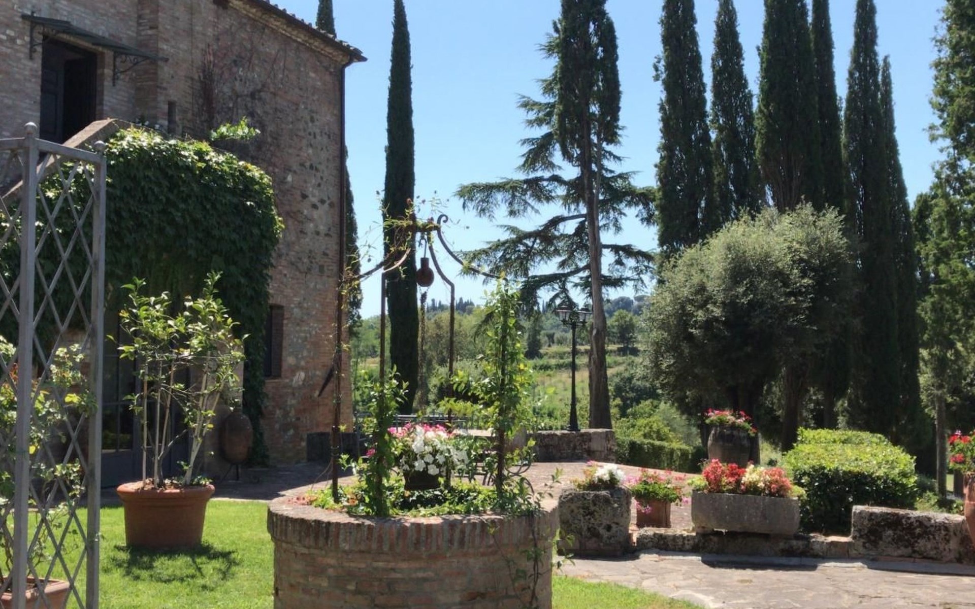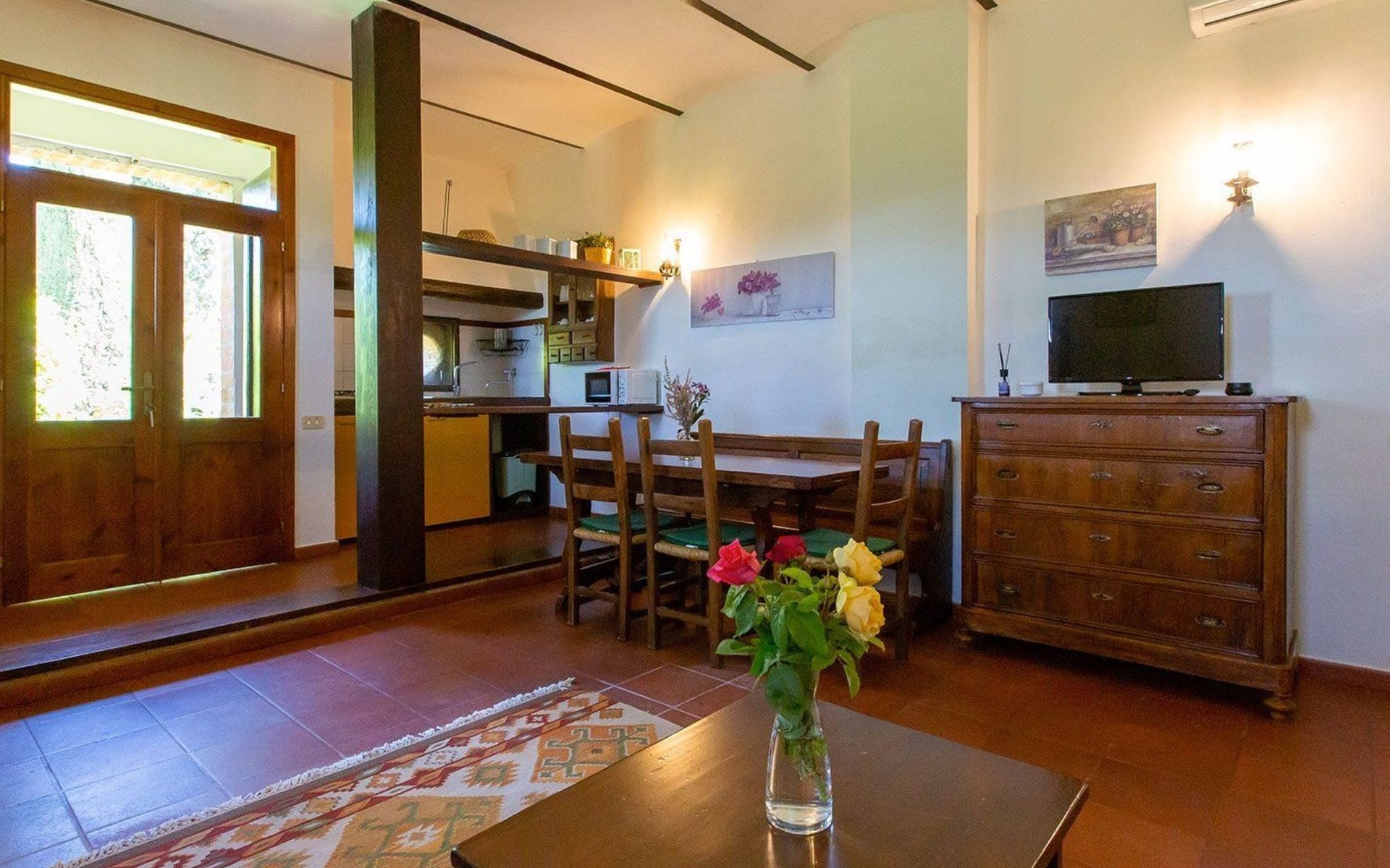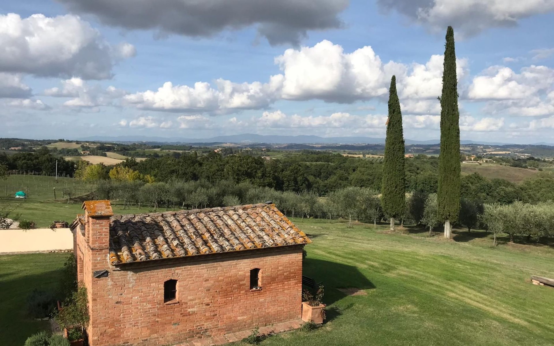 Location Macciano. In the middle of the splendid "Val di Chiana", situated on the first floor of a splendid 16th century farmhouse which has been completely renovated, the flat enjoys a wonderful view over the surrounding valley thanks to a living room created from an old window loggia.01 Chiesone 1 Chiesone 1 is a comfortable flat situated on the ground floor, consisting of a large living room with open kitchen, a double bedroom, a twin bedroom and two bathrooms with shower. The flat can be combined into a single unit with Chiesone 2 above. It also has an outdoor area equipped with a sun umbrella, table and chairs.Those renting this flat will enjoy a beautiful garden, terraces, a swimming pool and a tennis court to share with the other guests.Two bedrooms (one double and one twin), a bathroom with a kitchenette and a dining area complete this flat perfect for a family or a group of friends.The Val di Chiana is an area rich in ancient and picturesque villages, valleys, lakes and tourist resorts, and Macciangrosso is strategically located between Tuscany and Umbria. By staying here, you will be able to reach, in a short time, some of the most evocative and attractive places in our country, medieval villages, ancient pilgrimage routes, and wine and food traditions. We therefore invite you to visit: THE VAL D'ORCIA Declared a UNESCO World Heritage Site... "an exceptional example of how the natural landscape was redesigned during the Renaissance period to reflect the ideals of good governance and to create an aesthetically pleasing image; the landscape of the Val d'Orcia was celebrated by the painters of the Sienese School, which flourished during the Renaissance. The images of the Val d'Orcia and especially the reproductions of its landscapes, in which people are depicted living in harmony with nature, became icons of the Renaissance and profoundly influenced the way of thinking about landscape in the years to come' THE VALDICHIANA William Goethe, Journey to Italy ... 'It is not possible to see more beautiful fields; there is not a gorge of soil which is not worked to perfection, prepared for sowing. The forage grows there luxuriantly, and seems to find in these soils all the conditions required for it to flourish. In the second year they sow broad beans for the horses, for oats do not grow here. They also sow lupins, which are now already green and bear fruit in March. The flax is also already sown; in the ground all winter, and the cold, the frost make it more tenacious.' THE TRASIMENO LAKE The lake holds within itself an ancient and troubled history, manifested by castles, fortresses, churches and abbeys; the works of artists of great renown, such as those of Pietro Vannucci known as Perugino or those of Nicolò Pomarancio. Legend has it that the nymph of Lake Agilla, madly in love with the handsome Prince Trasimeno, seduced him by dragging him into its waters, which were thus named after him. Three islands emerge from the lake: Maggiore, Minore and Polvese. A scenic road connects the lakeside towns: Castiglione del Lago, Borghetto, Tuoro sul Trasimeno, Passignano sul Trasimeno, Torricella, Magione, Monte del Lago, San Feliciano, San Savino, Sant'Arcangelo.VAL D'ORCIA Declared a UNESCO World Heritage Site... "an outstanding example of how the natural landscape was redesigned during the Renaissance period to reflect the ideals of good governance and to create an aesthetically pleasing image; the landscape of the Val d'Orcia was celebrated by the painters of the Sienese School, which flourished during the Renaissance. The images of the Val d'Orcia and especially the reproductions of its landscapes, depicting people living in harmony with nature, became icons of the Renaissance and profoundly influenced the way of thinking about landscape in the years to come'. IT052011B5STN9NMH7