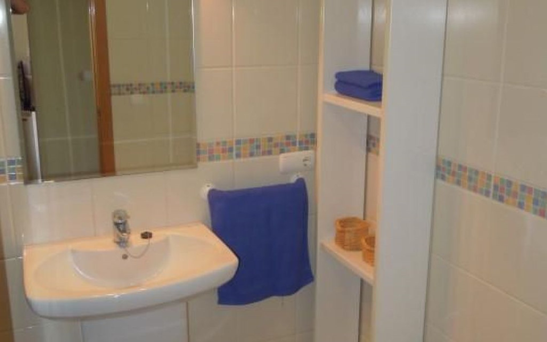 De badkamer heeft een bad met douche en een bidet. Er is een berging waar een wasmachine is beschikbaar voor onze gasten, is er ook een strijkijzer en strijkplank, een stofzuiger en een kleine voorraad van het schoonmaken van producten, als het gewenst is een keer zelf te vegen.