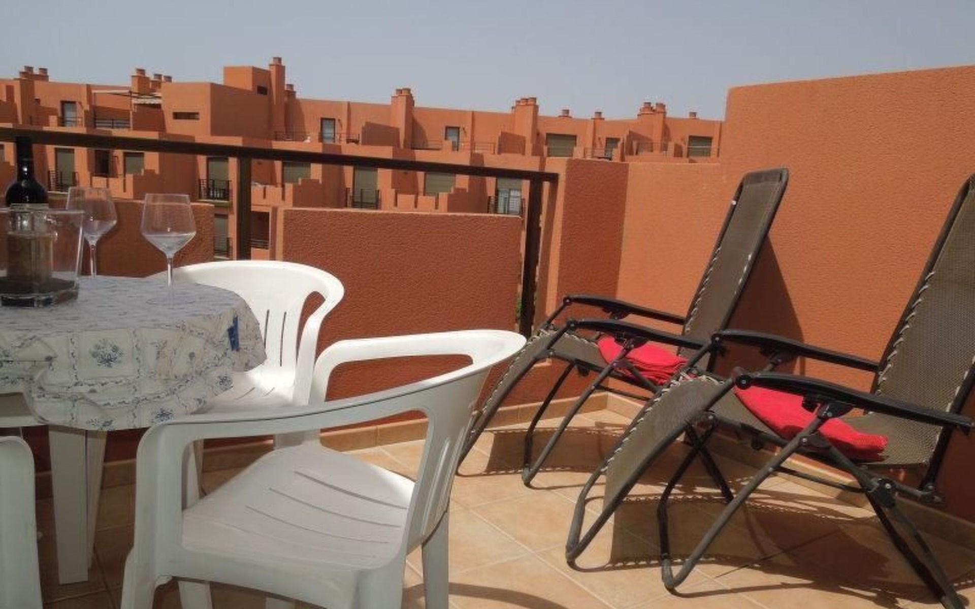Het appartement Casa Soleada gelegen op een prachtige locatie vrijwel direct aan zee, op slechts ongeveer 300 meter van het zandstrand van Playa Tejita. Tussen de appartementen en het strand, op een steenworp afstand, zodat alle sporten zoals windsurfen, kitesurfen, karting en golf kan gebruikt worden in de directe omgeving.