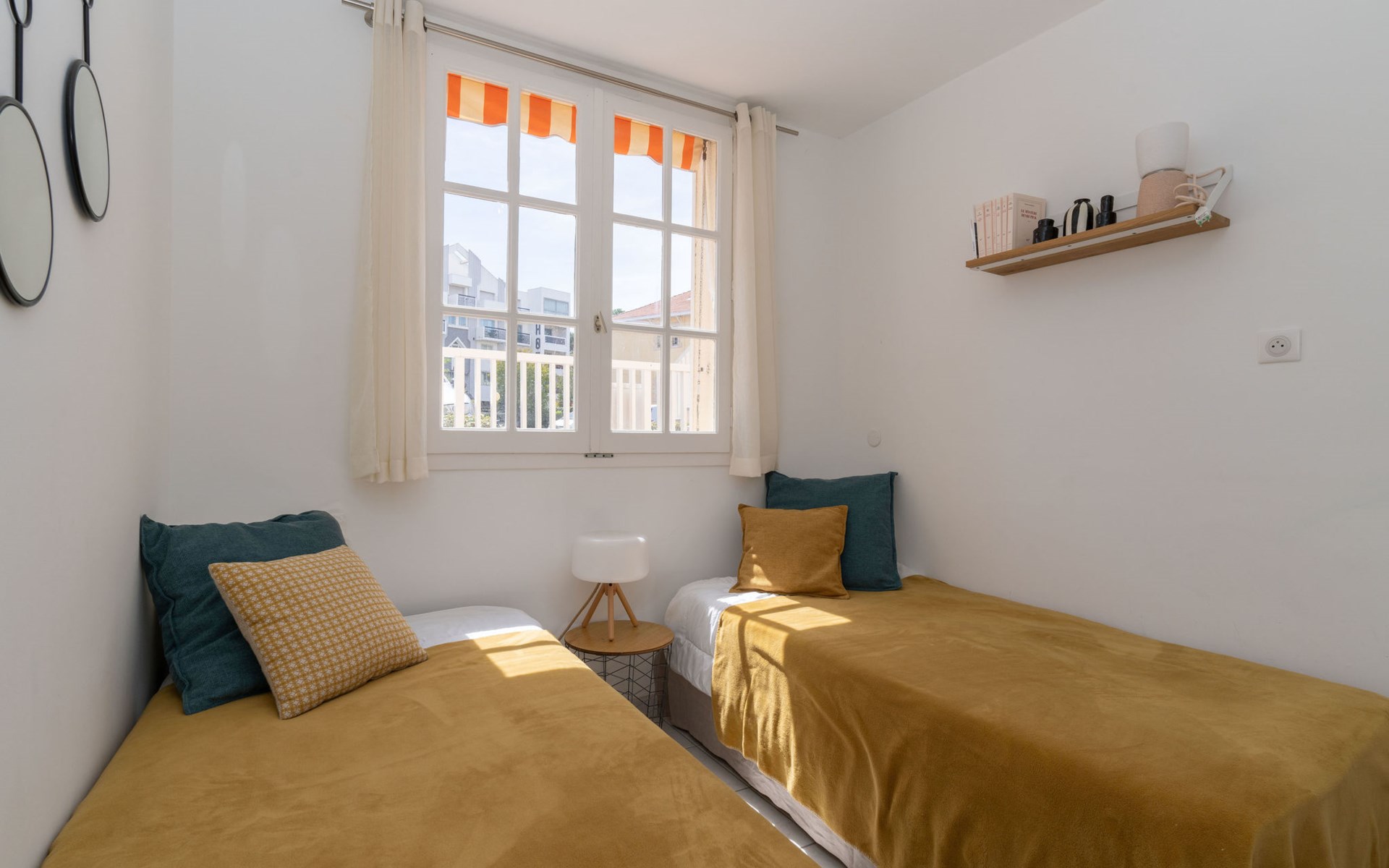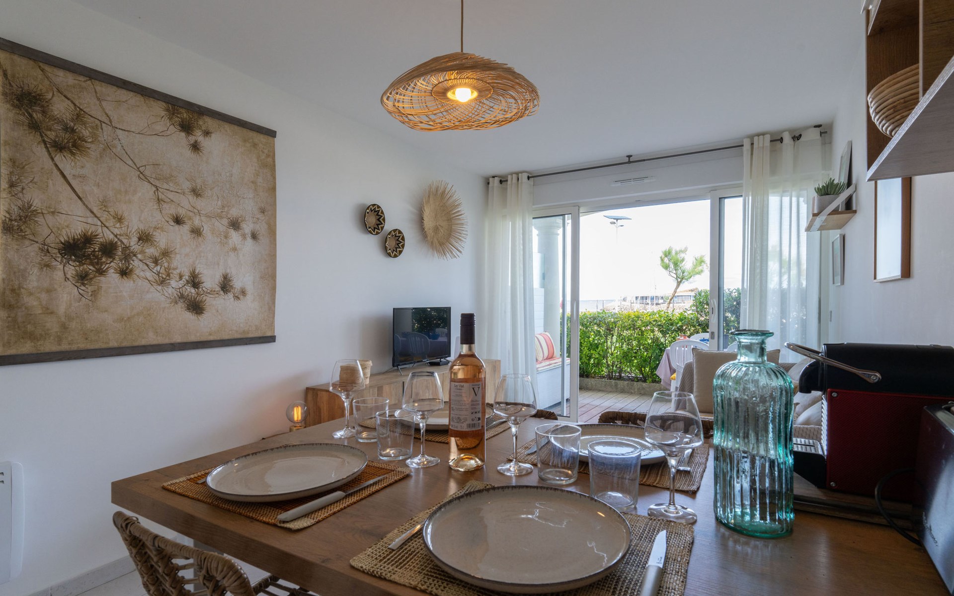 Arcachon: Mooi residentie "Résidence du Port", van 5 verdiepingen. In de wijk Petit Port, in de plaats, 1 km van het centrum van Arcachon, in een woonwijk, 50 m van zee, 50 m van het strand, directe toegang tot het strand. In het complex: lift. Winkel 1 km, levensmiddelenwinkel 750 m, winkelcentrum 3.3 km, restaurant 50 m, bar 650 m, bakkerij 550 m, café 700 m, voetgangersgebied, fietsverhuur 200 m, bushalte "Boulevard de la Plage" 350 m, station "Arcachon" 1.2 km, zandstrand "Eyrac" 50 m, park "Mauresque" 1.7 km, thermaalbad "Thalazur" 3.9 km. Jachthaven 50 m, golfterrein (18 holes) 4.1 km. Attracties in de buurt: Dune du Pyla 9.7 km, Eratopia 8.4 km, Navette Maritime pour le Cap Ferret 1.3 km, Marché Municipal 1.4 km, Observatoire Sainte Cécile 2.1 km, Zoo du Bassin d'Arcachon 9.8 km. Bekende meren kunnen gemakkelijk worden bereikt: Lac de la Magdeleine 9.8 km, Lac de Cazaux 16 km. De sleuteloverdracht vindt plaats bij het agentschap Interhome in Arcachon, 2 km. De omgeving is gevoelig voor geluidsoverlast. Gelieve geen lawaai te maken en de rust te bewaren.