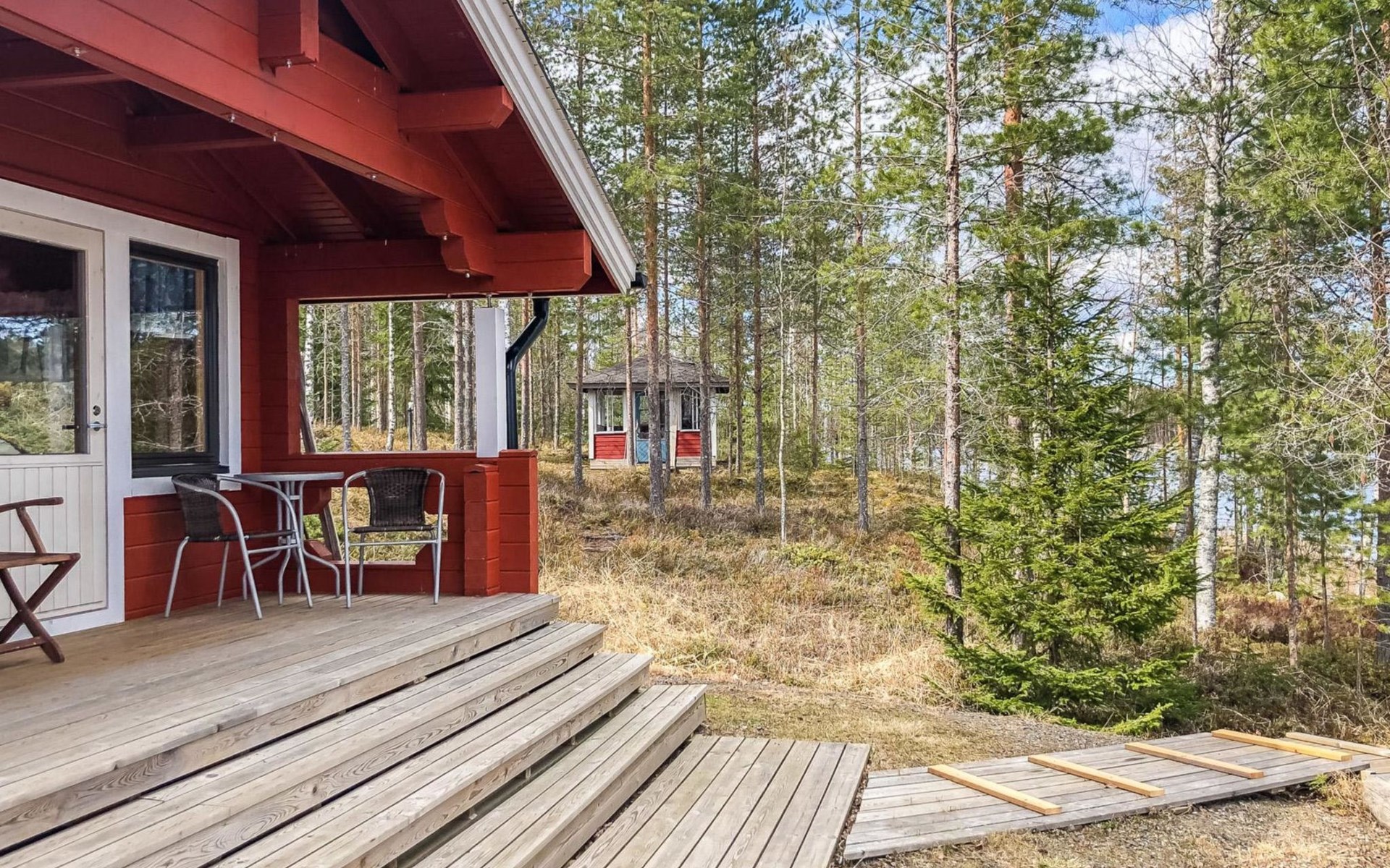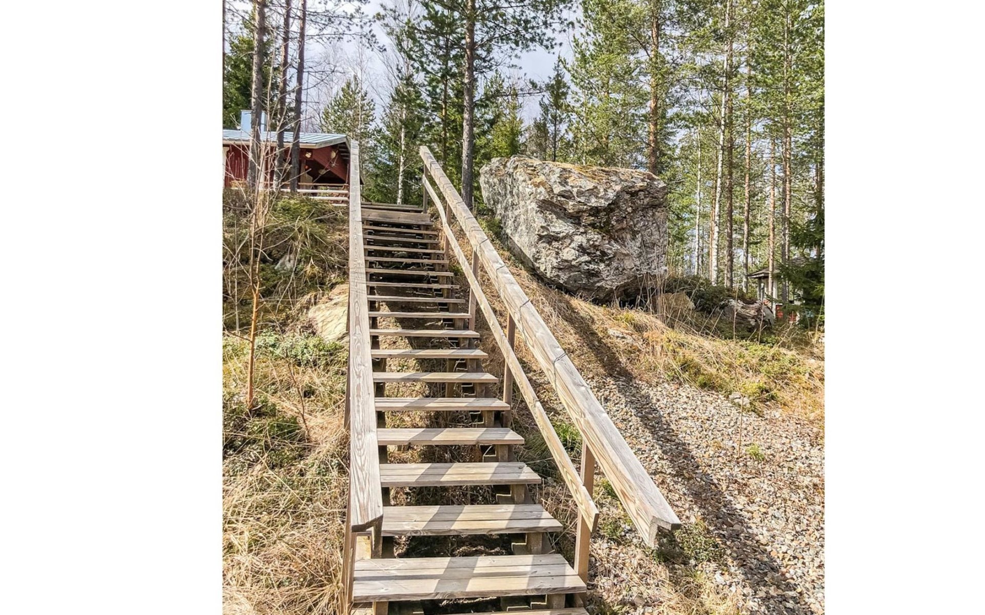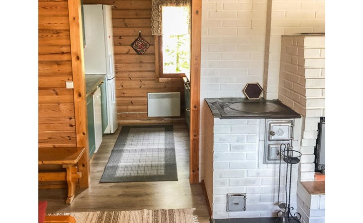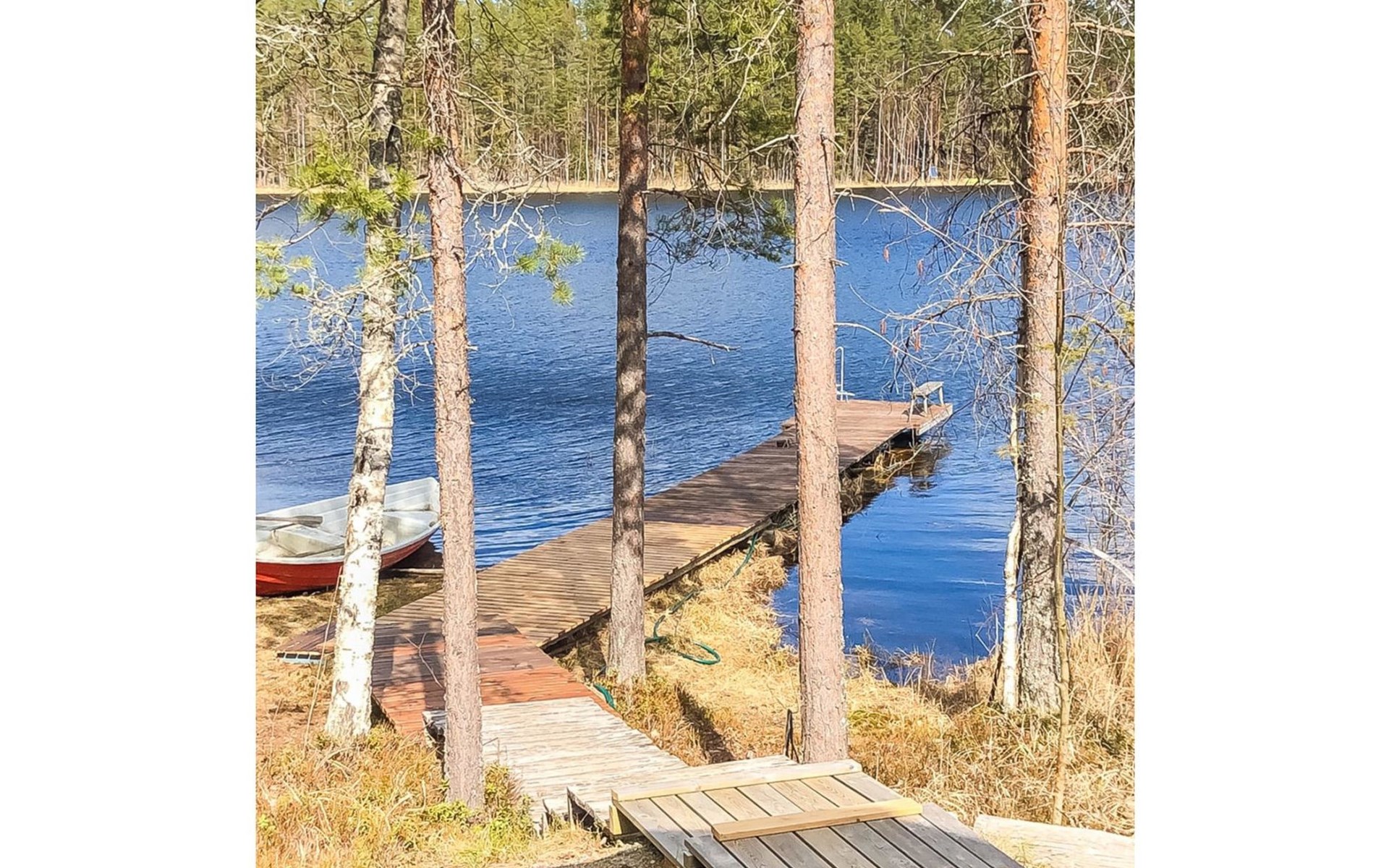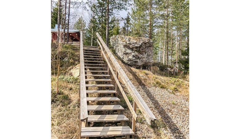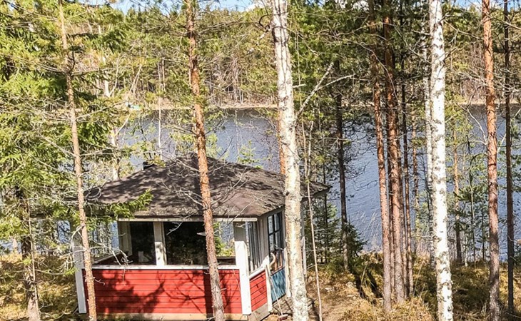 Wood-heated lakeside sauna with dressing room, built in 2017, distance from the cottage 10 m. In sauna electric light, underfloor heating, water must be carried from the lake and warmed in sauna stove.