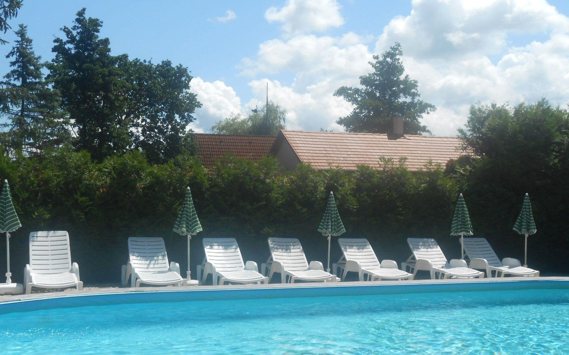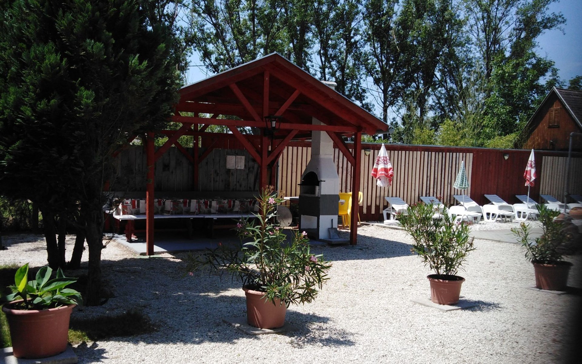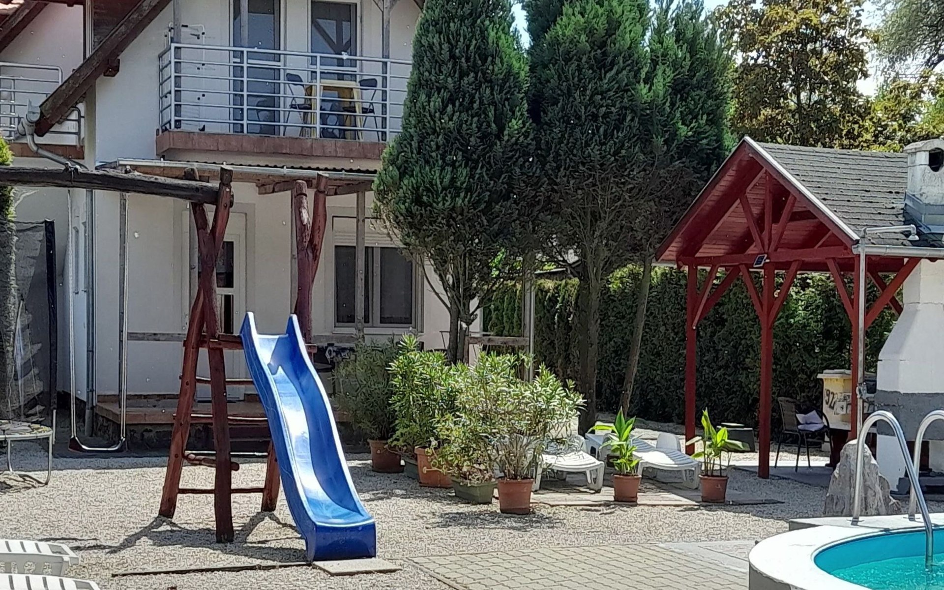 Holiday flat with pool, direct lake access, lakeside property. Beautiful, quiet location. Small, quiet open beach approx. 50 m from the property. Further beaches with restaurants, playgrounds, buffee from approx. 300 m.Shore property. Direct access to the lake. Shops from 800m, restaurants: from 300m.Private pool terrace with sun loungers, parasols. Swimming pool 55 sqm (5.2m x 10.6m x 1.4m. Water height 1.2 m. Internet access, playground, trampoline.Own car parking space available within the property. Further parking spaces in front of the house.Surroundings: beach, holiday homes, restaurants, pizzeria, billiards, bar.Holiday flat with pool on the shore of Lake Balaton for 2 persons.Ground floor, living space approx. 26 m², covered terrace 14 m², pool view.Flat for 2 persons, approx. 26 sqm. Entrance hall with kitchenette, gas cooker, fridge, microwave, coffee machine, toaster, kettle.One double bedroom 160 x 200 cm, LED TV.Bathroom with shower/WC. Sat-TV with all German TV channels.Blinds and fly screens on all windows. The flat remains pleasantly cool even when outside temperatures exceed 30°C. Smoking is not permitted in the house. Smoking on the terraces, balconies and garden terrace, gazebo possible.The whole house is equipped with underfloor heating. Separate laundry room. Laundry service.Information about the house:Please bring your own tea towels, hand and bath towels.Pool open from the beginning of May to the end of September.24 hour service on site.Tourist tax from 18 years. MA20013815