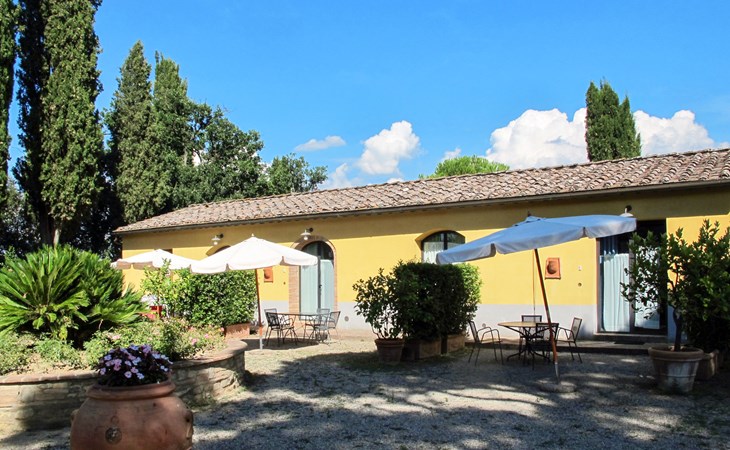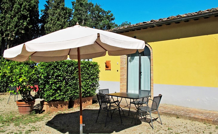 Gezellig landhuis "Giuggiolo", omgeven door bomen en wijngaarden. 3 huizen in de woning. 4 appartementen in de woning. In het gehucht Casaglia, 4 km van het centrum van Poggibonsi, 11 km van het centrum van San Gimignano, 30 km van het centrum van Siena, zonnige ligging, te midden van groen. Voor medegebruik: groot, mooie tuin 5.000 m2 (omheind) met planten en bomen, weide, openluchtzwembad (14 x 7 m, 120 - 160 cm diepte, seizoensgebonden beschikbaarheid: 02.Mei. - 03.Okt.). Terras, onderhoud zwembad door de eigenaar/tuinman. Verwarming ter plaatse te betalen (01.Nov. - 31.Mrt.). 800 m lange toegangsweg tot het terrein (onverharde weg). Parkeerplaats op het terrein. Supermarkt 2 km, treinstation "Poggibonsi" 4 km. Gesloten residentie met een elektrische deur. De eigenaar woont in hetzelfde huis. Wijnproeverij in een wijnkelder in de buurt van San Gimignano op 17 km afstand 1x per verblijf inbegrepen (op aanvraag).