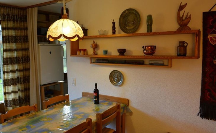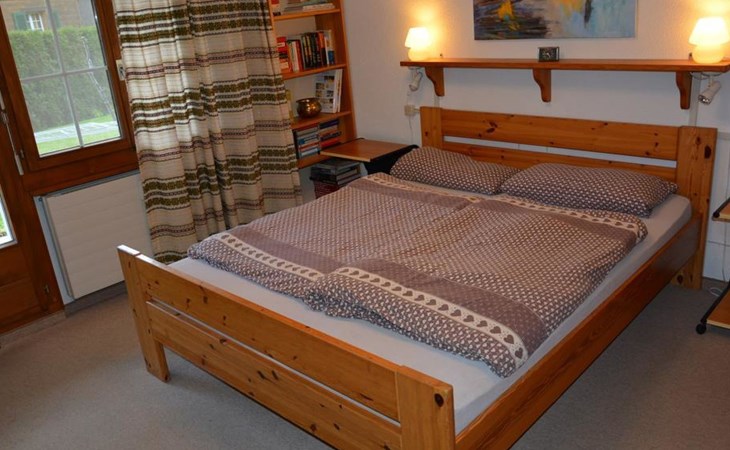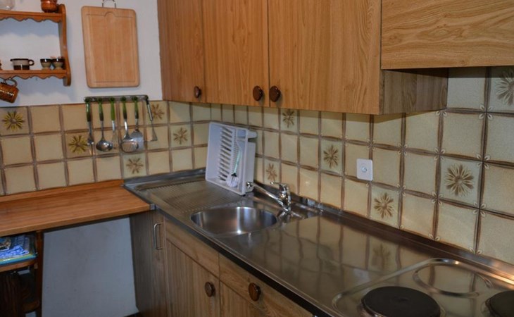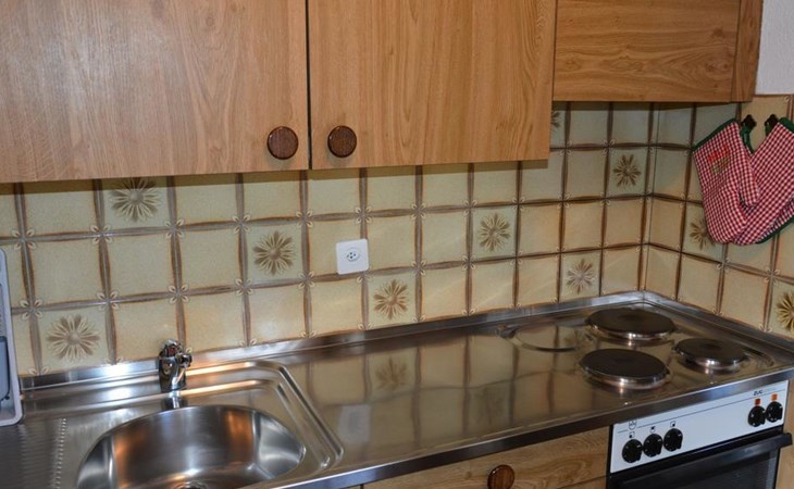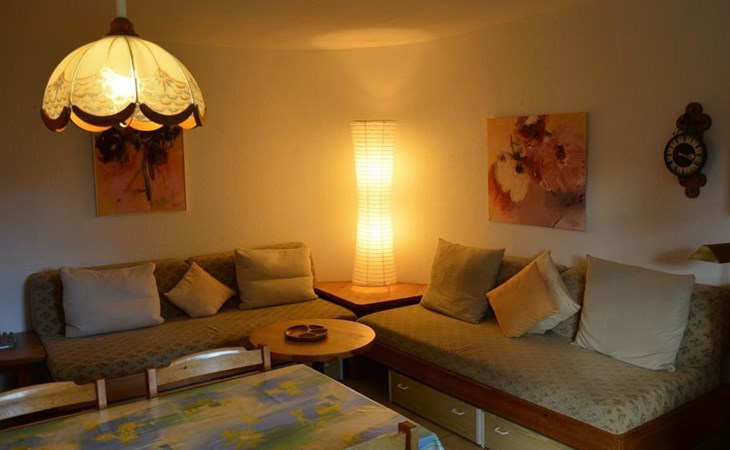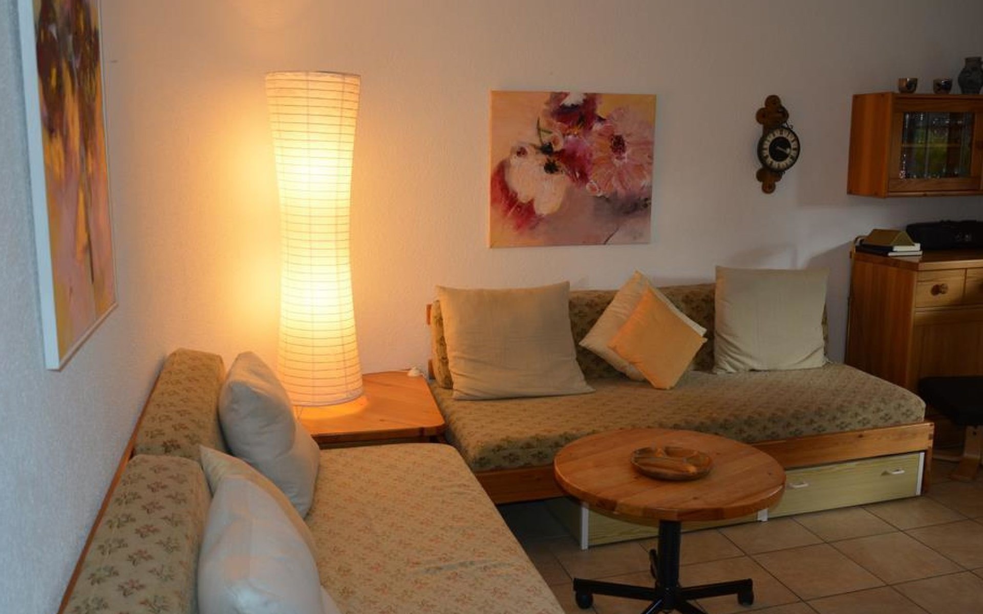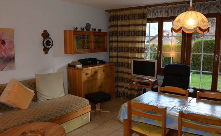 Bedroom with 1 double bed (180x200cm) and 2 cupboards. Bathroom with bathtub/shower, toilet, wash basin. Living room with table and 4 chairs, 2 sofas which convert into conventional beds (90x200cm) and (90x190cm), WiFi. Open-plan kitchen with stove (3 hot plates), oven, coffee machine, mixer and fondue-set.
