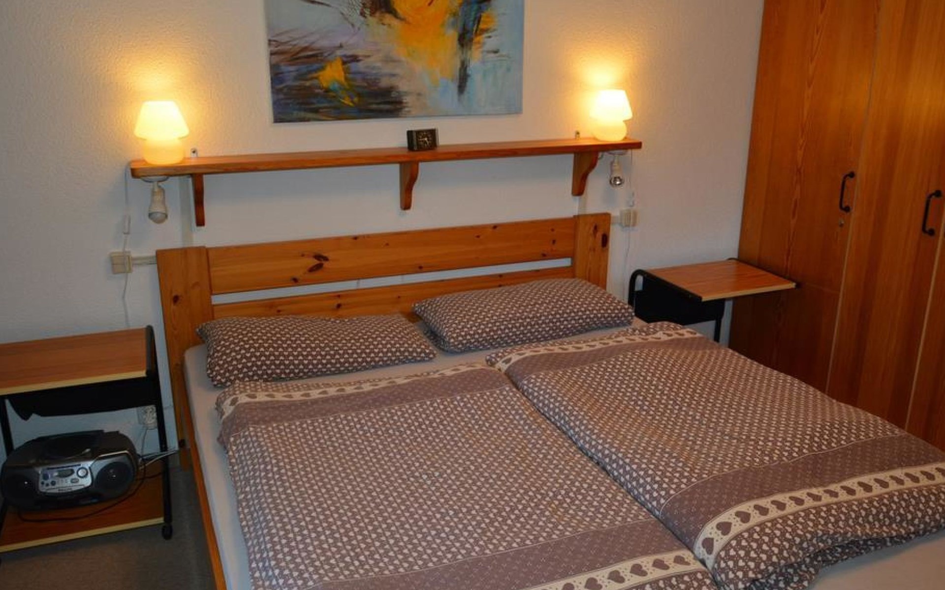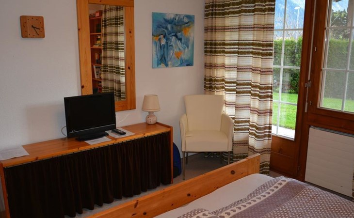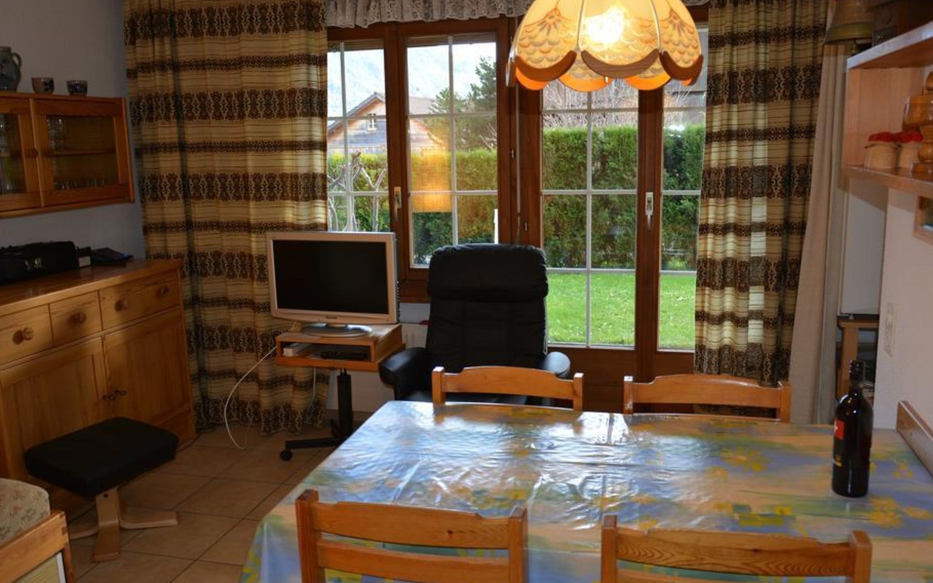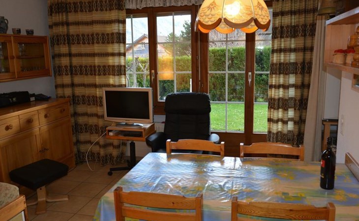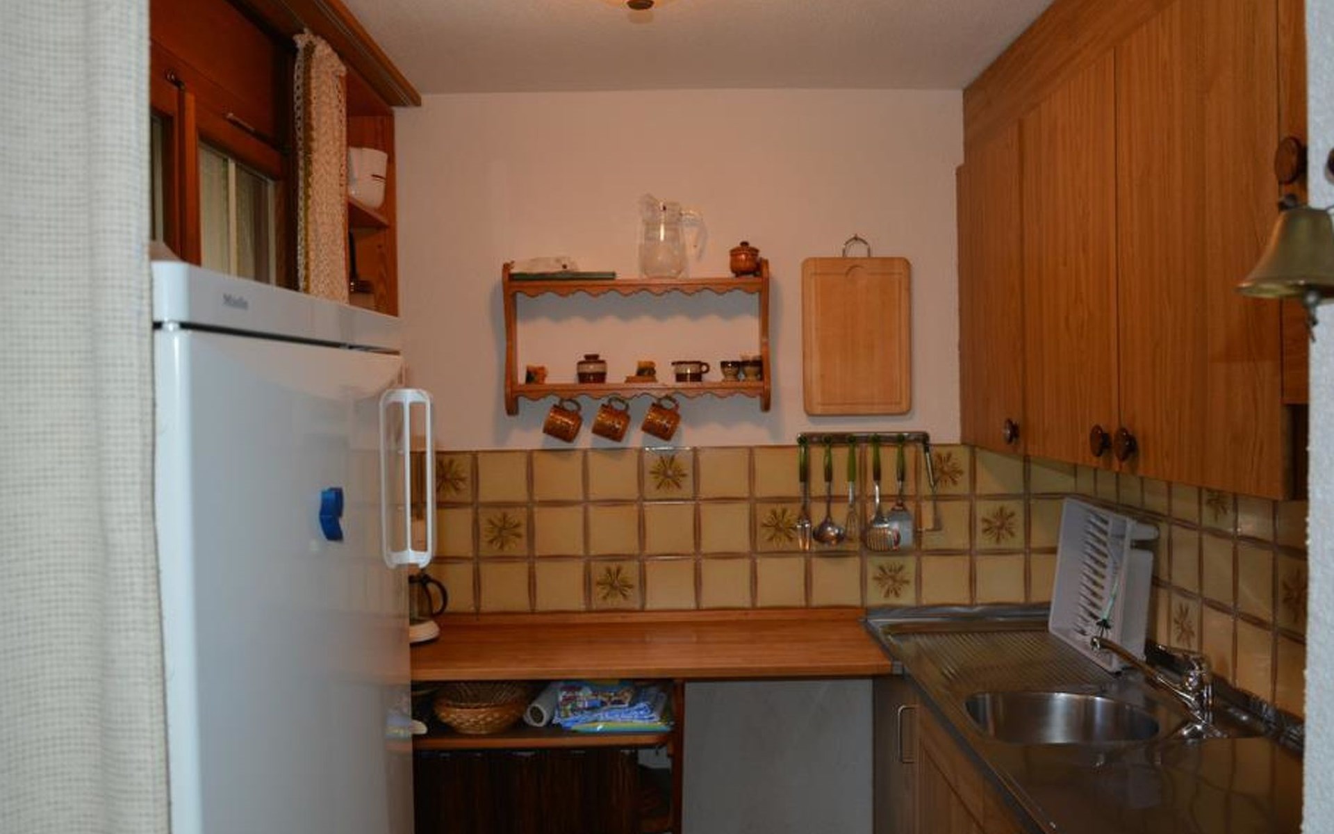 Bedroom with 1 double bed (180x200cm) and 2 cupboards. Bathroom with bathtub/shower, toilet, wash basin. Living room with table and 4 chairs, 2 sofas which convert into conventional beds (90x200cm) and (90x190cm), WiFi. Open-plan kitchen with stove (3 hot plates), oven, coffee machine, mixer and fondue-set.