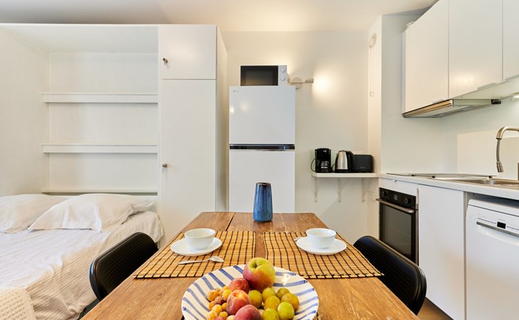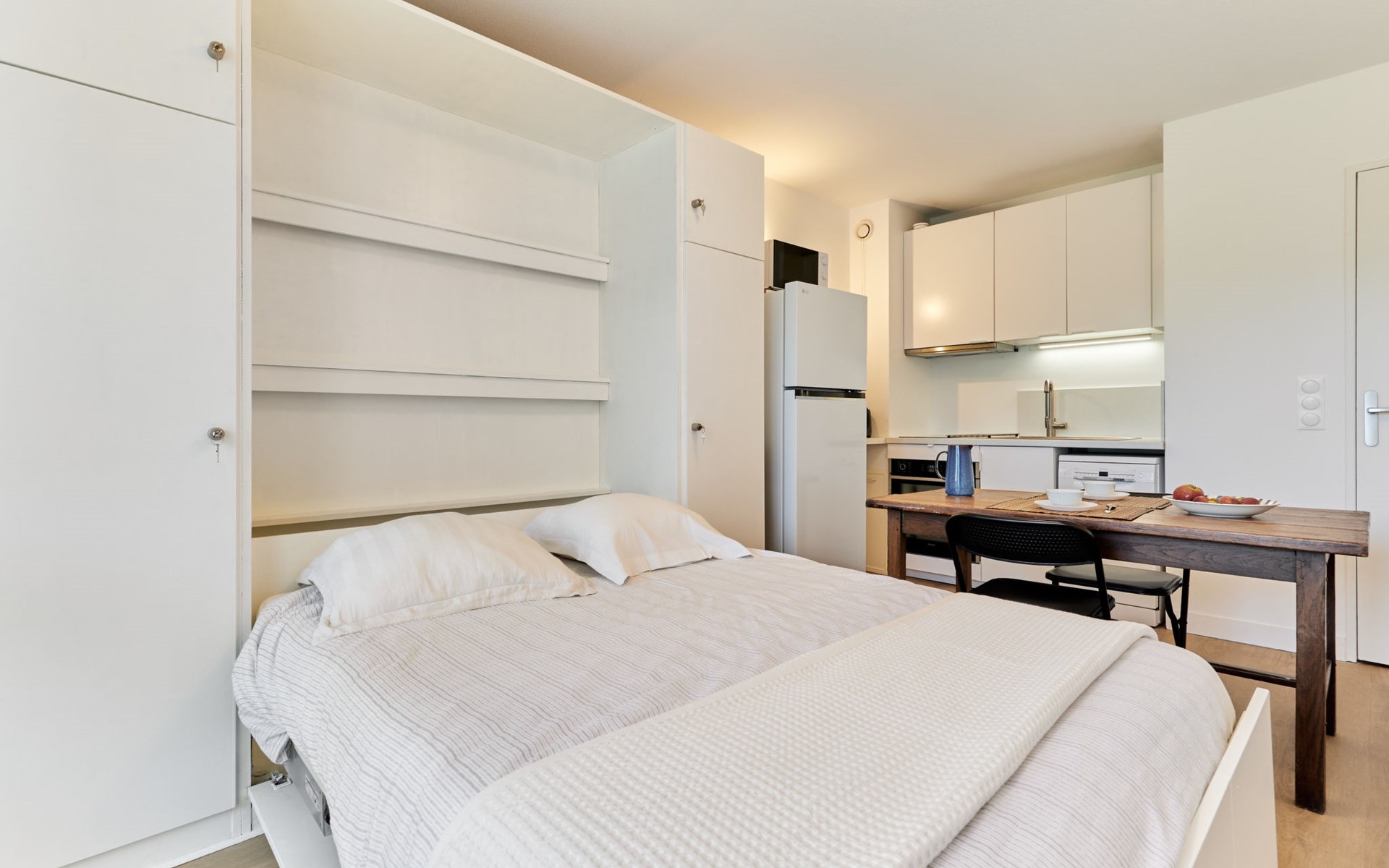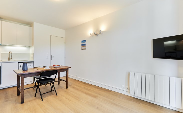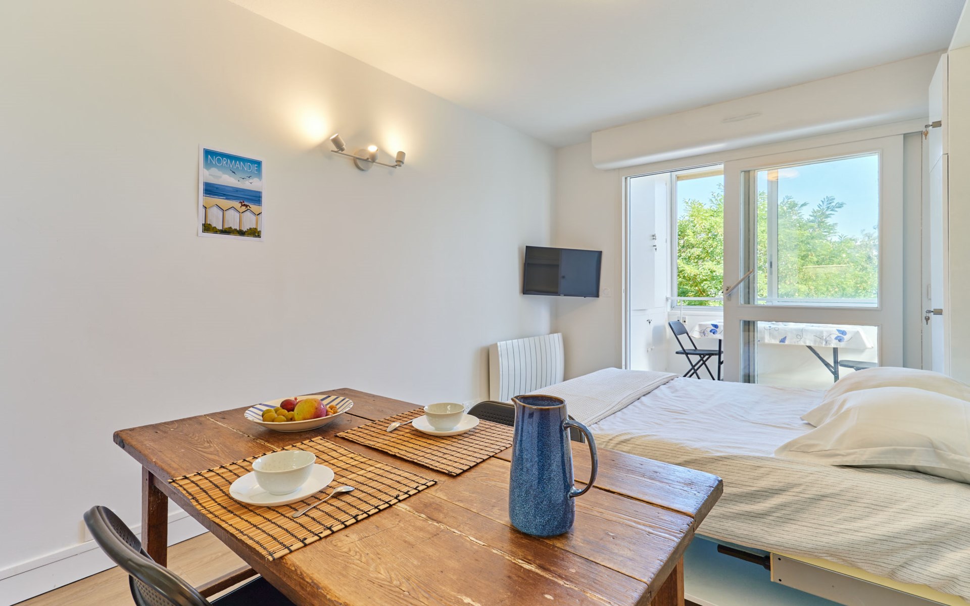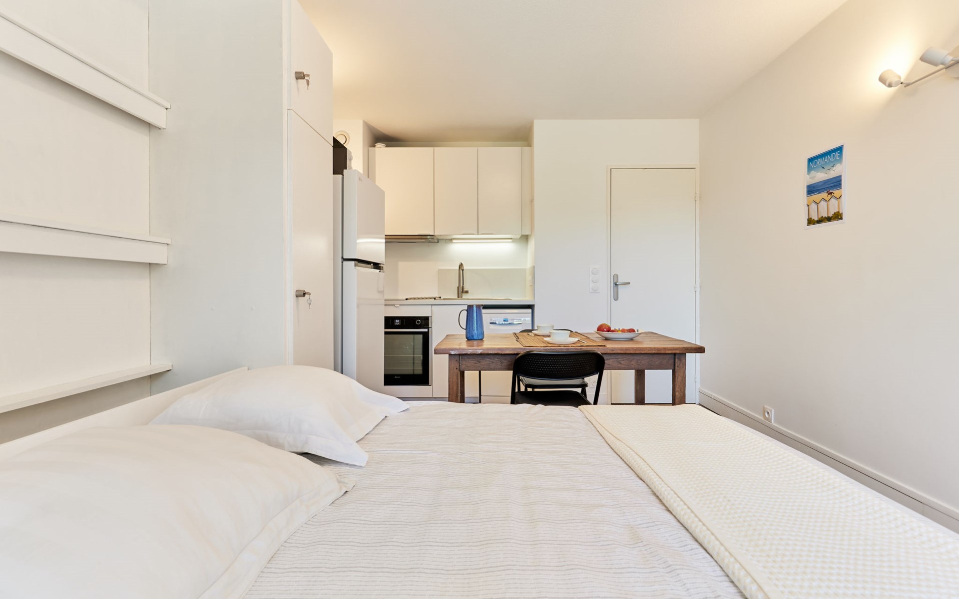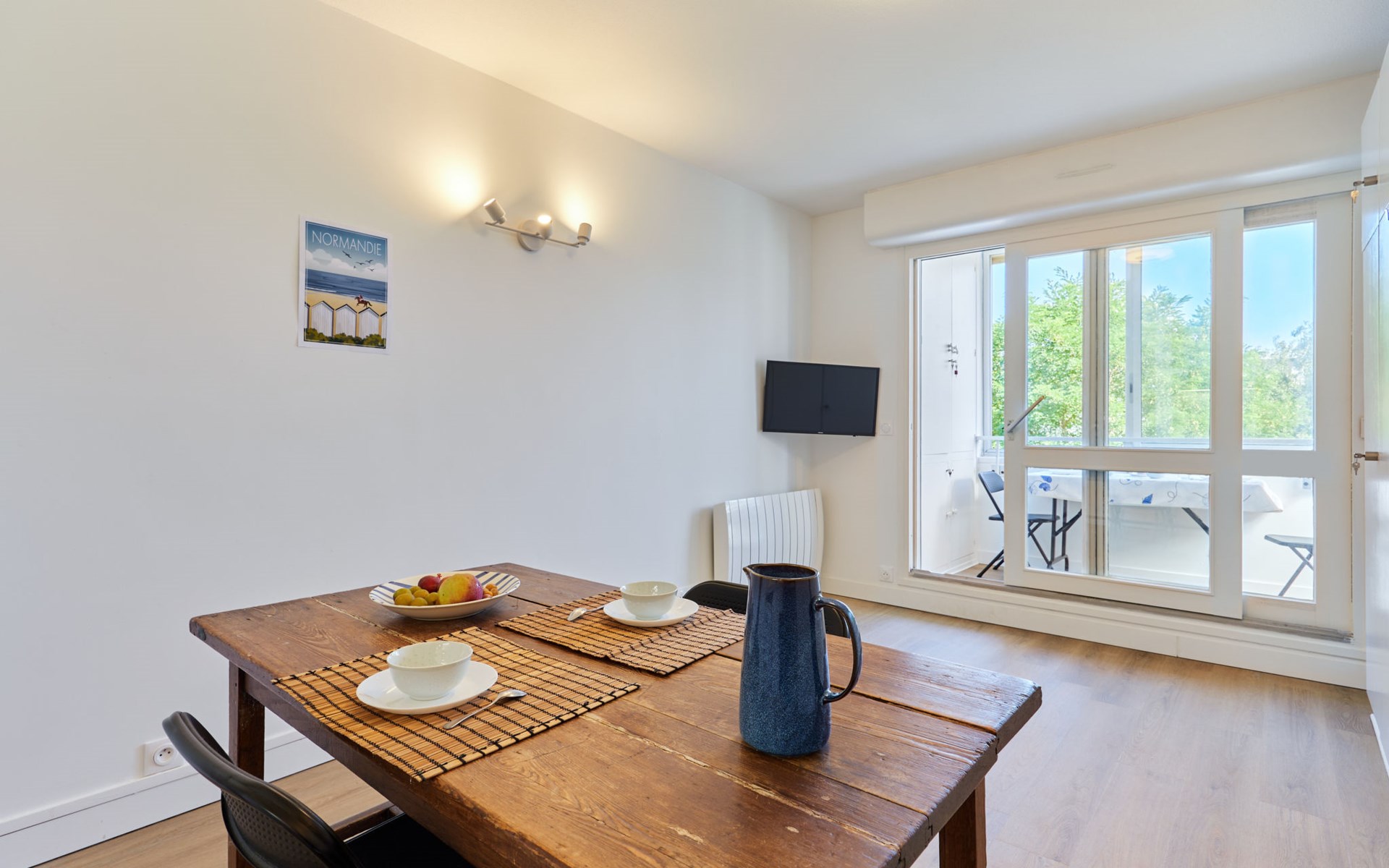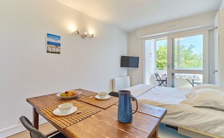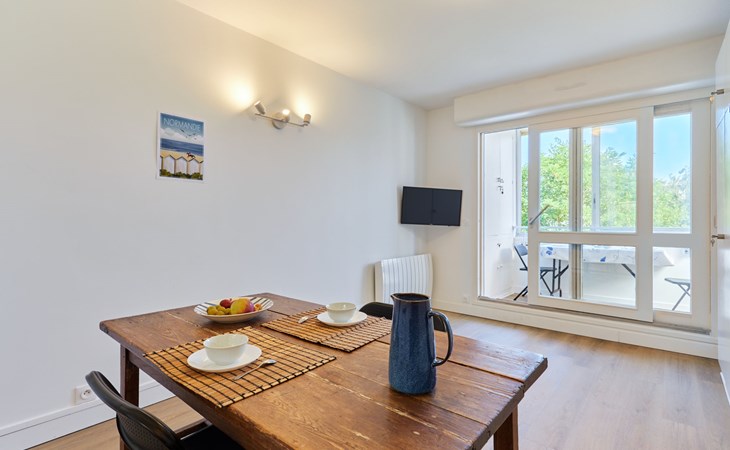 Residentie van 4 verdiepingen. In de plaats, centrale, rustige ligging, 100 m van zee, 100 m van het strand. Openbare parkeerplaatsen in de straat. Levensmiddelenwinkel 600 m, supermarkt 1200 km, restaurant 300 m, bakkerij 500 m, bushalte 50 m, openluchtzwembad 100 m. Jachthaven 1 km, tennis 300 m. Attracties in de buurt: Ouistreham 20 km, British Memorial Normandy 7 km, Bayeux 20 km, Arromanches 13 km.