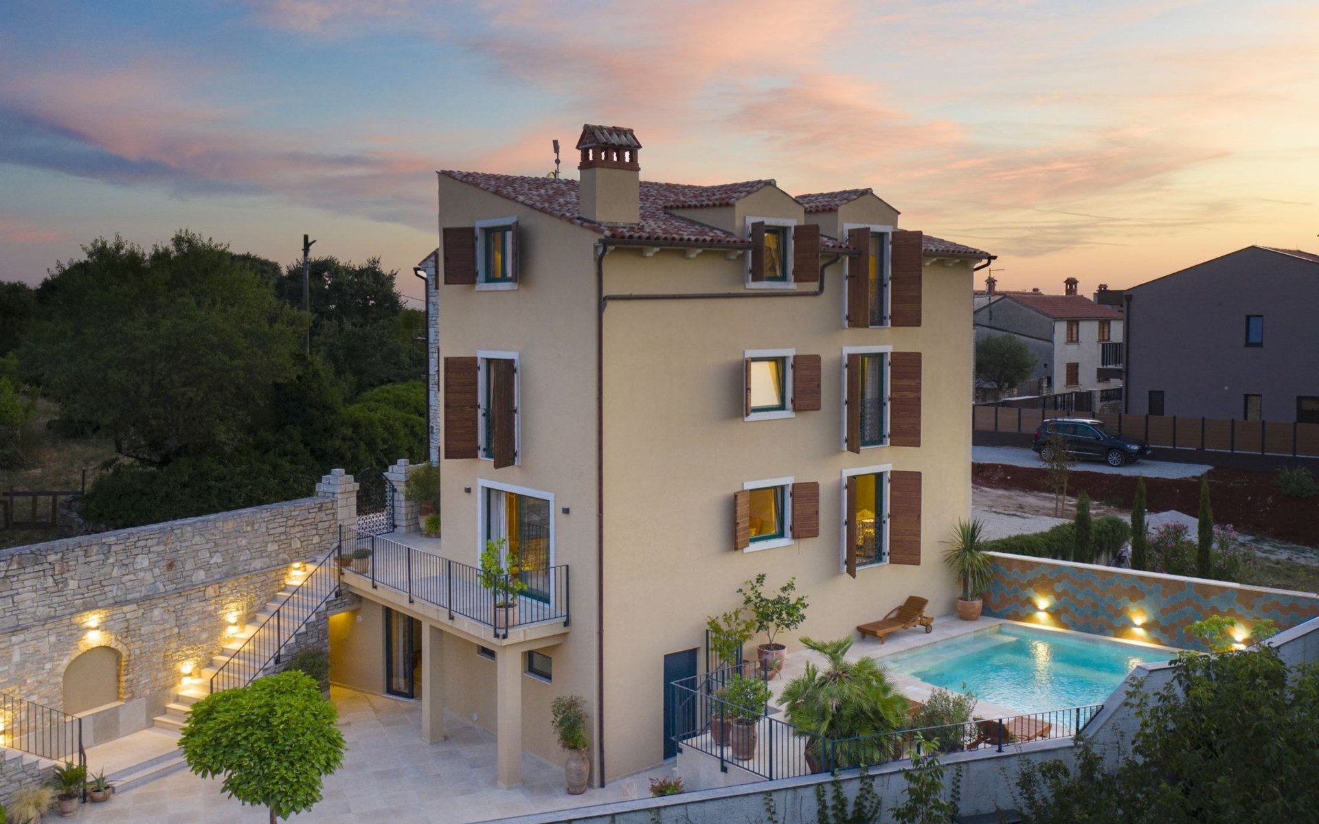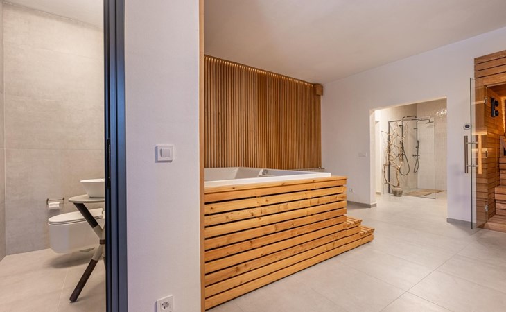 Introducing Villa Casa Nova, a luxurious sanctuary that combines contemporary amenities with traditional Istrian charm. Experience the friendly spirit of the small town of Bale, where medieval streets and modernism intertwine in visual harmony.Bale is a picturesque town located in Istria. Nestled in the heart of the Istrian peninsula, Bale is renowned for its rich history, charming medieval architecture, and idyllic surroundings. With its indoor space spanning 250 m2 and outdoor area measuring 400 m2, there's ample room to relax and indulge in the beauty of Villa Casa Nova. Boasting seven spacious bedrooms with private bathrooms, Villa Casa Nova provides ample accommodation for large groups or families seeking comfort and privacy.Indulge in the ultimate relaxation in the spa in the villa's basement, featuring a sauna, indoor jacuzzi, and shower. Escape the stresses of everyday life and rejuvenate your senses in this serene retreat.A well-equipped summer kitchen with a charcoal fireplace provides numerous possibilities. Whether you enjoy a casual breakfast or organize a dinner under the stars, this environment can make every meal an unforgettable experience.Step into the living room, where contemporary design meets elegance with its neutral color palette and stylish furnishings. It features a perfect space for moments of leisure or social gatherings.The kitchen is equipped with all the necessary appliances and has a dining table that can comfortably seat up to 12 people.WiFi and satellite channels are provided. For added entertainment, Villa Casa Nova boasts a game room featuring a mini-cinema and Play Station 5. Whether indulging in a movie night or engaging in friendly competition, there's something for everyone to enjoy in this luxurious retreat.Don't forget to take advantage of our complimentary passes to Mon Perin camp, just 6 km away. You can park there and experience the breathtaking beaches of Bale and St. Pavao. We also offer the option of catering services during your stay.In summary, Villa Casa Nova is not just a villa—it's an experience like no other. Discover the essence of luxury living amidst the captivating surroundings of Bale. Our guests are welcome to create cherished memories that will last a lifetime.The villa's exterior walls, adorned with authentic Istrian stone, pay homage to the region's rich architectural heritage, enhancing its authenticity. Guests can park up to 6 cars on our private parking plot.Villa Casa Nova features a 30 m2 private pool, inviting guests to bask in the sun and enjoy refreshing swims. Pool towels are provided, ensuring guests' comfort and convenience during their stay.Restaurants Konoba Cakula and Kod Kancelira are 450m away, serving traditional Istrian dishes.The local supermarket Butiga Ultra is only 450 m away, bigger supermarkets like Lidl and Kaufland are located in Rovinj 12 km away.Beach Bale is located just a short 6 km car ride away. This beach is perfect for those looking to relax, as it offers a few beach bars where you can enjoy a chilled drink while soaking up the sun. However, if you're feeling adventurous, you can also make use of the windsurfing and sailing school, or rent some water sports equipment to make the most of your day.Rovinj is another beautiful coastal town located just 12 km away from Bale. It boasts charming cobblestone streets that wind their way through a maze of colorful houses cascading down to the sparkling Adriatic Sea. There are plenty of cultural and historical attractions in Rovinj, from the iconic Church of St. Euphemia, to the charming piazzas and bustling markets that dot the streets below. You can wander through the narrow alleys, discovering hidden cafes, art galleries, and boutique shops at every turn.