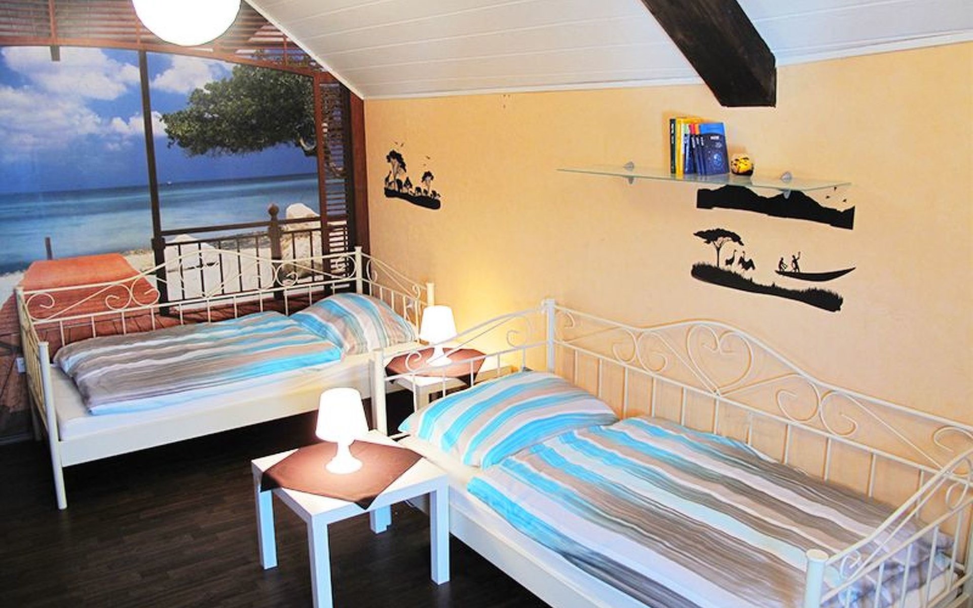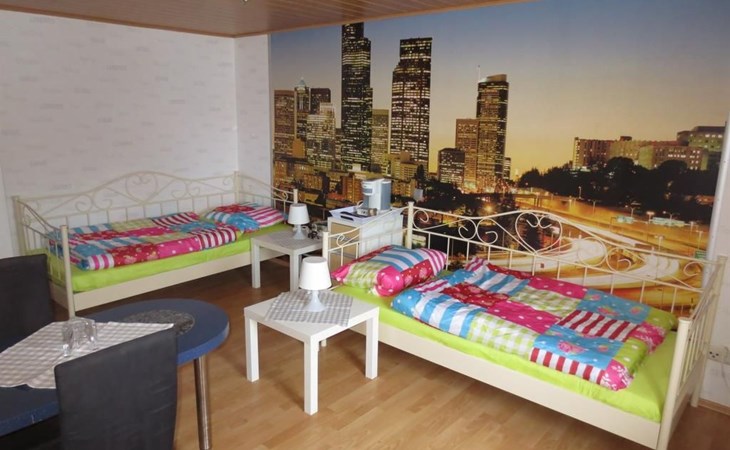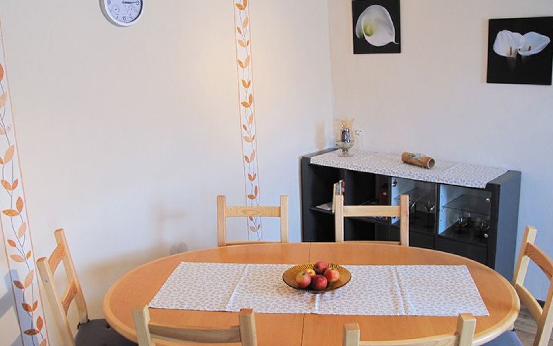 This holiday flat, renovated in 2014, is located on the first floor of a house in the municipality of Nettersheim, in the centre of a settlement.During your stay for 2 people you will have a living room, a kitchen, a bedroom with a double bed and a bathroom. For 3 persons or more, there is also a bedroom with 2 single beds. This makes this flat suitable for two, four or six people. The bright living room is furnished with a large sofa set and a satellite TV. The kitchen is fully equipped with, for example, a coffee machine, blender, toaster, microwave, a cooker with ceramic hob, oven, dishwasher, fridge with freezer compartment The inviting dining area offers space for up to six people. The large table can also be extended. The bedrooms are furnished once with a double bed, 180 cm wide and the other with two single beds, each 90 cm wide. Both bedrooms are also equipped with satellite TV. The bathroom has a shower, toilet, washbasin and hairdryer as well as the necessary towels. On request, you can also book this holiday home for five or six people for an additional charge. You will then have an additional bedroom and a second bathroom at your disposal. The additional bedroom also has two single beds, each 90 cm wide. The second bathroom is also equipped with a shower, washbasin and WC. If you are travelling with 3 people and need a bedroom for each person, this is only possible in consultation with the landlord as a surcharge is then payable on arrival.The 40 m² roof terrace is very large and has a charcoal barbecue and a covered area with garden furniture. A car parking space is available during your stay. It is also possible to store six bicycles in the garage.It is only about 100 m to the town centre. Here you will find a doctor, a pharmacy and a bus stop / taxi bus. For motorsport fans it is 30km to the Nürburgring.