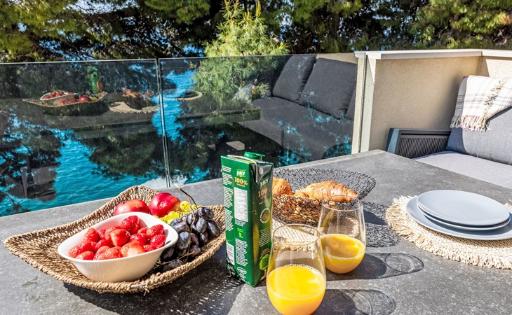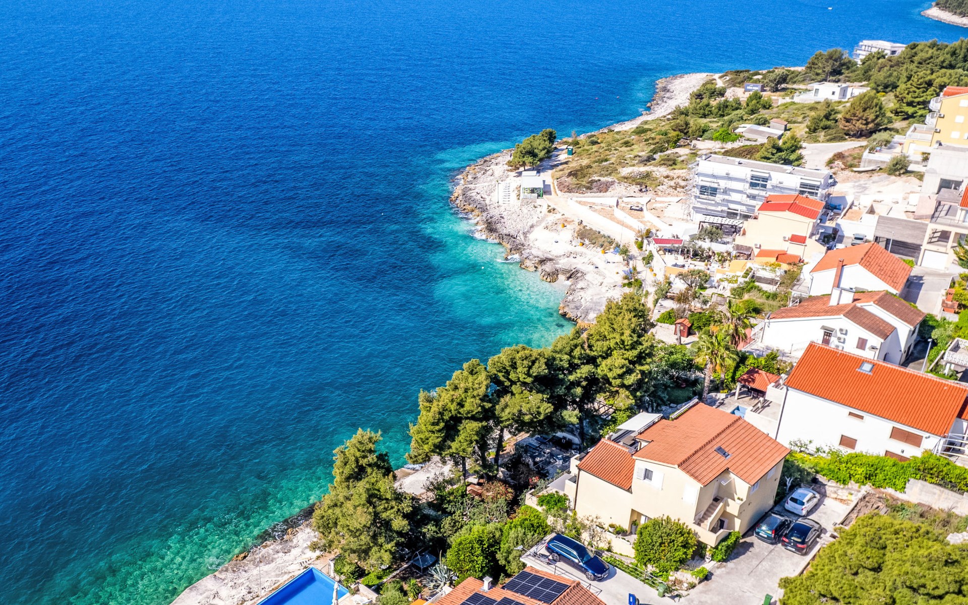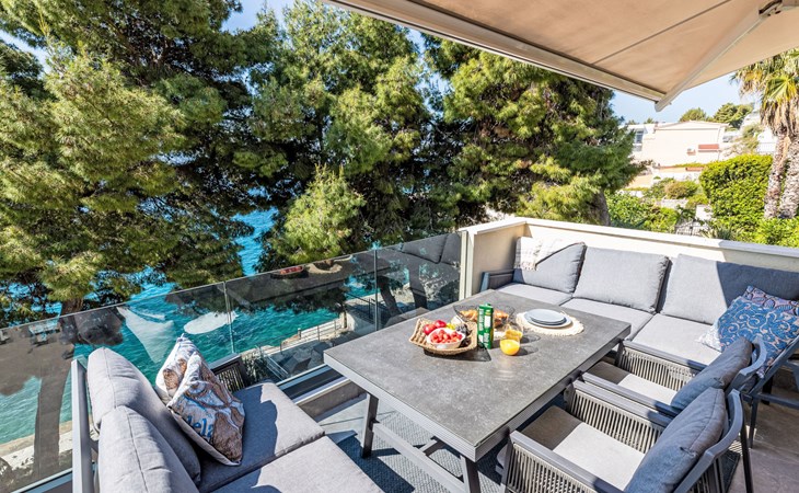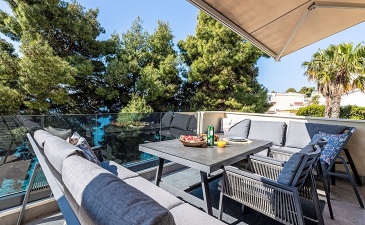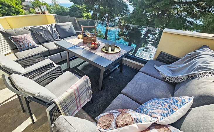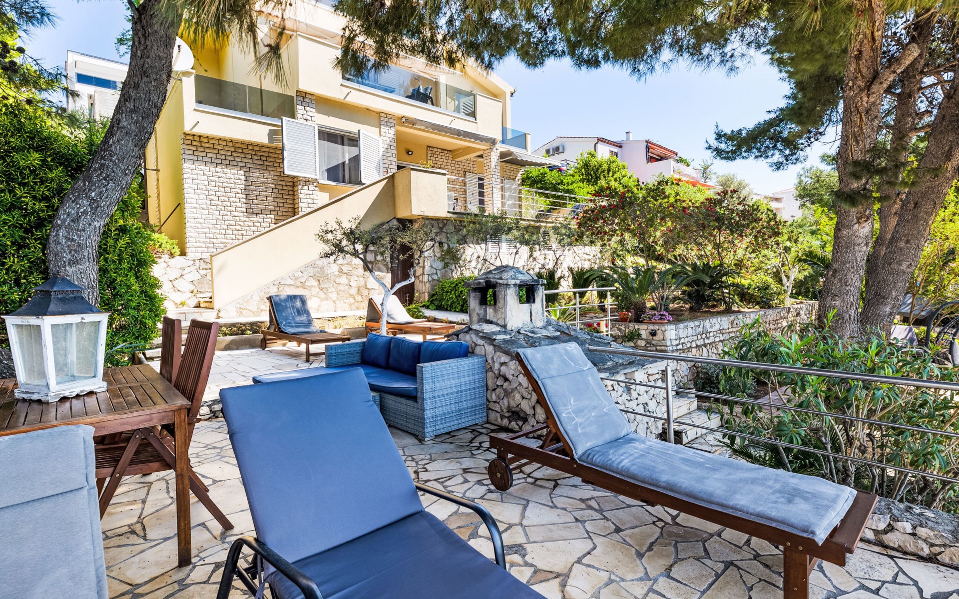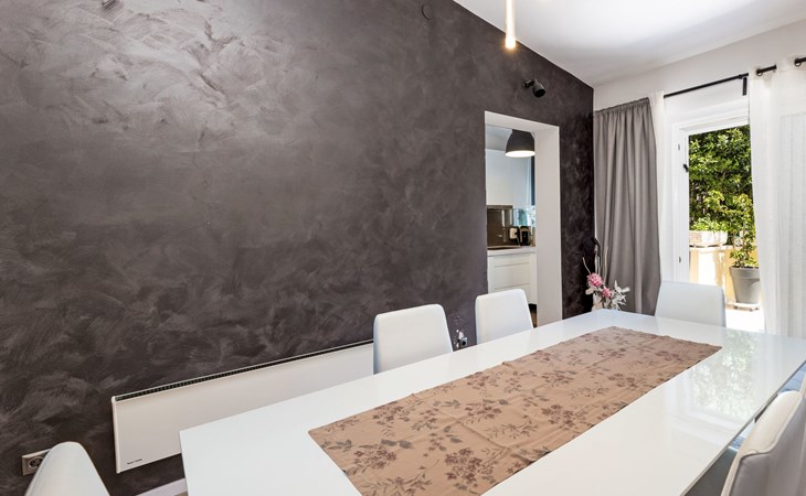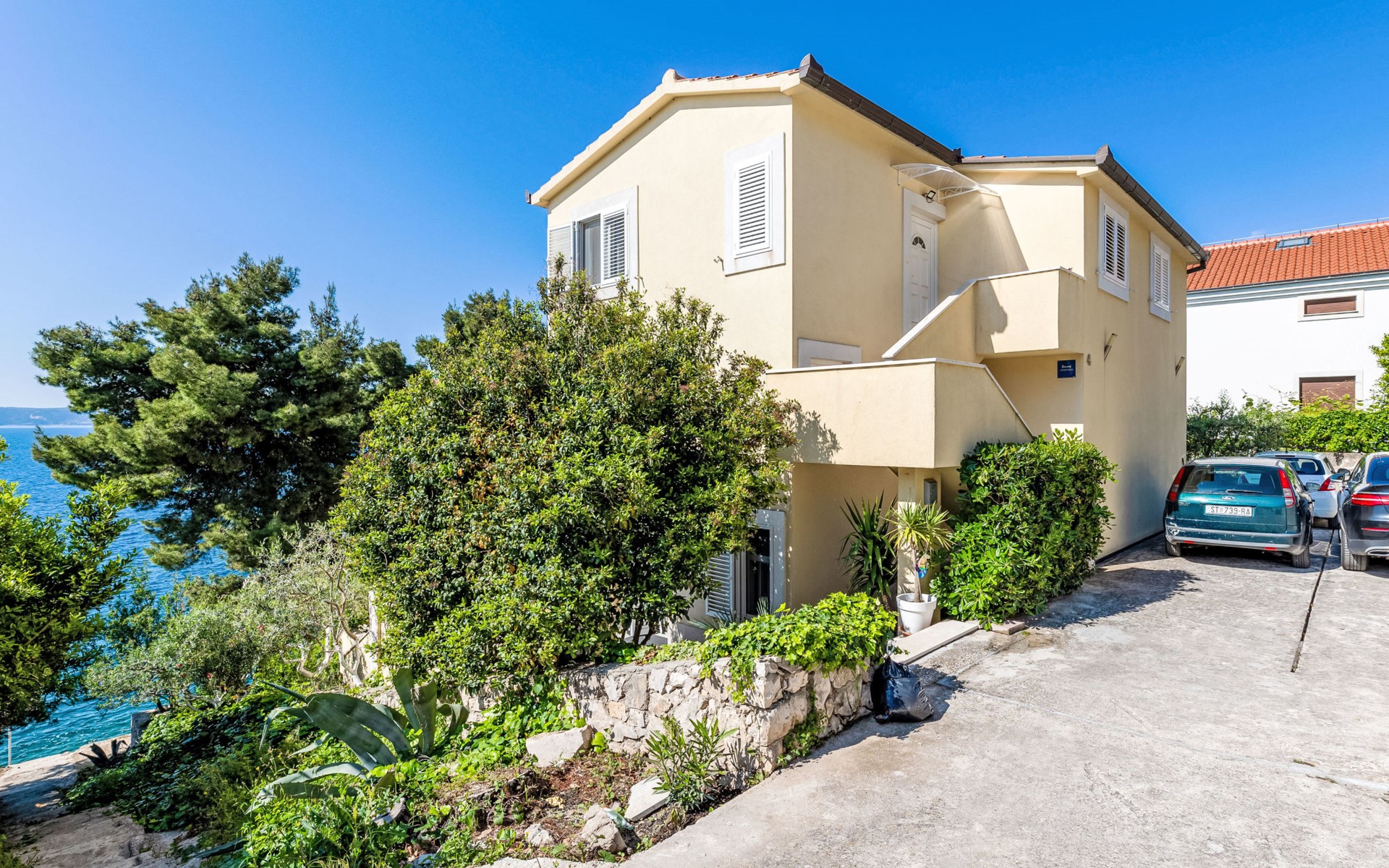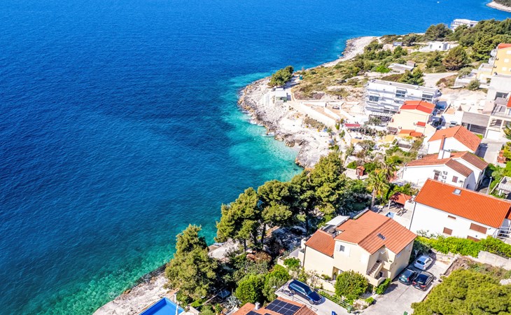 Okrug gornji 5 km van Trogir: Huis met 3 woningen "Tina". Rustige, zonnige ligging, 20 m van zee, 20 m van het strand, aan een doodlopende weg. Voor medegebruik: terrein 630 m2. Buitendouche, terras (20 m2), tuinmeubelen, barbecue. In het huis: internetaansluiting. Steile toegangsweg. Parkeerplaats (voor 3 auto's). Winkel, restaurant 250 m, bushalte 1.1 km, kiezelstrand 250 m, rotsstrand 20 m.