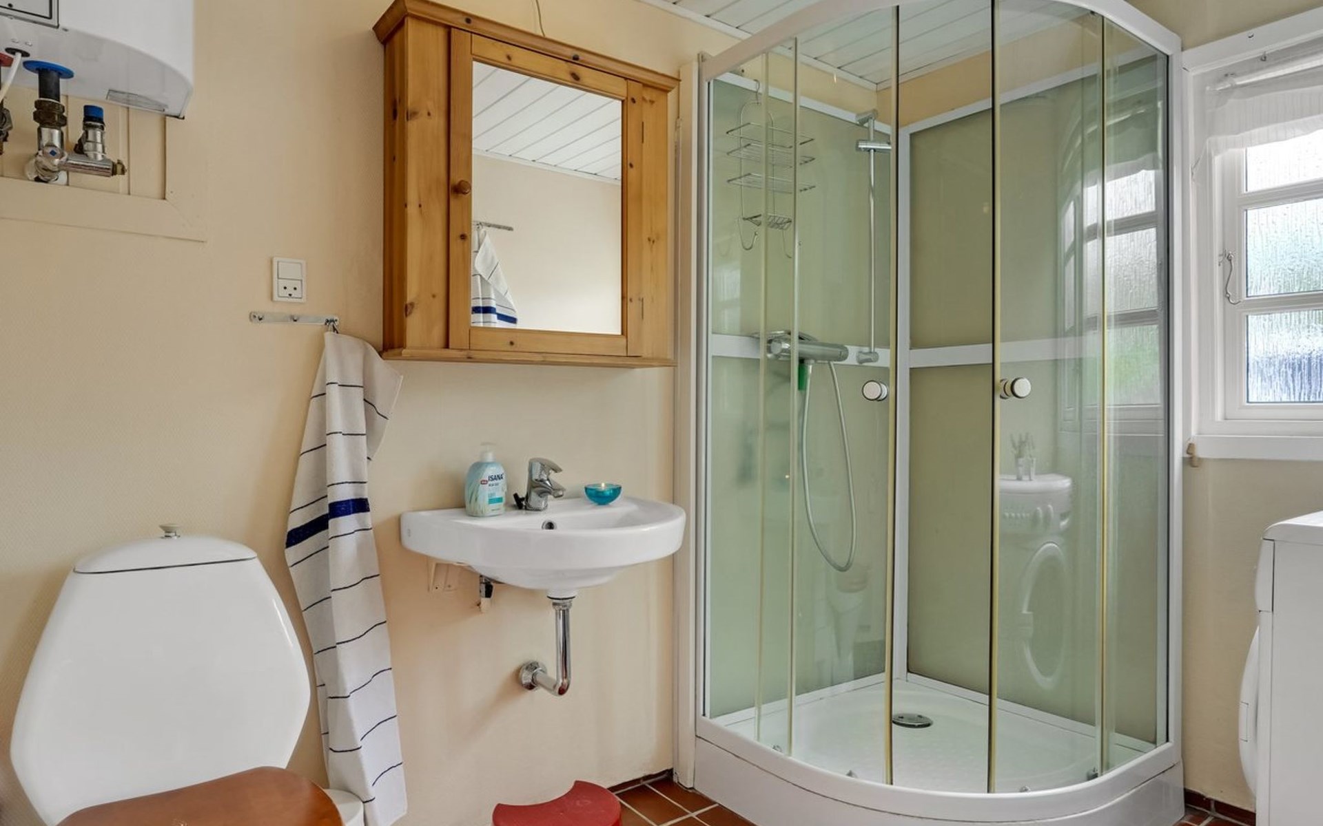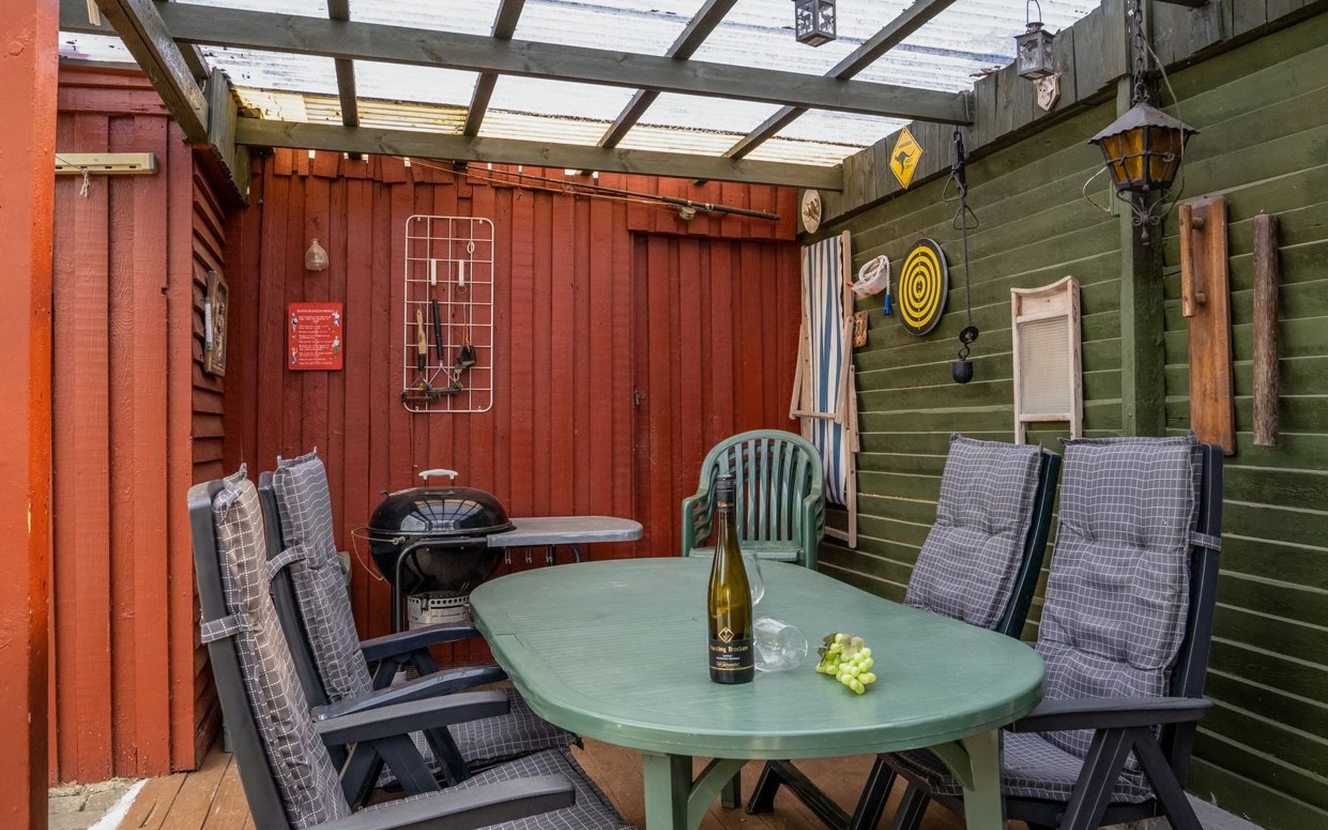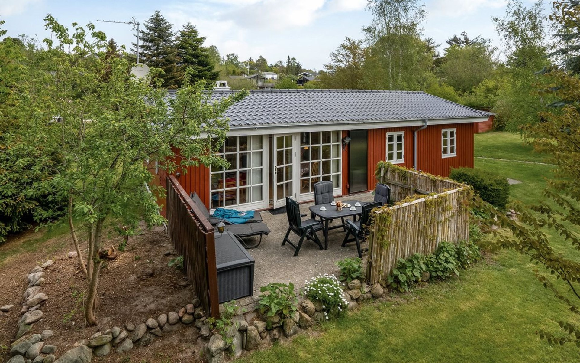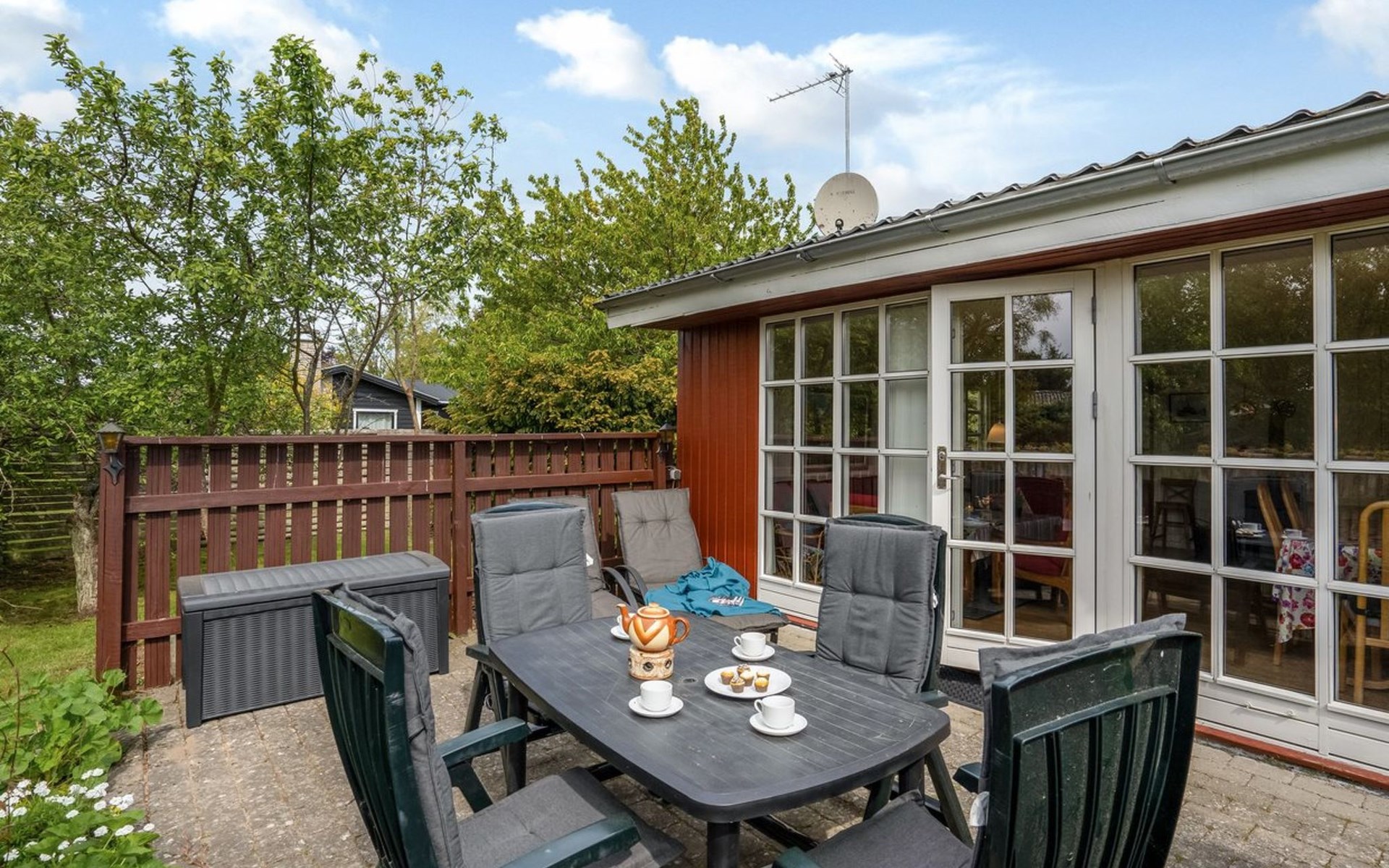 Eengezinswoning, bouwjaar 1965. 200 m van zee. Voor alleengebruik: terrein 1.235 m2, verzorgde tuin. Terras (20 m2), barbecue, stookplaats, kinderspeelplaats (schommel). In het huis: wasmachine. Parkeerplaats bij het huis. Levensmiddelenwinkel 800 m.