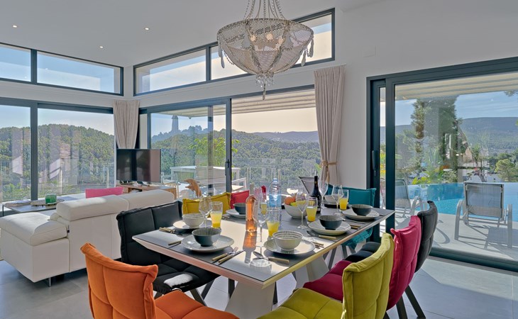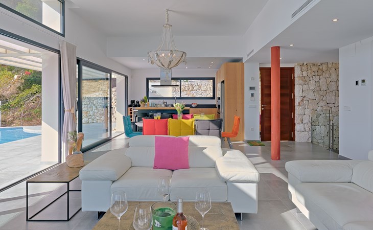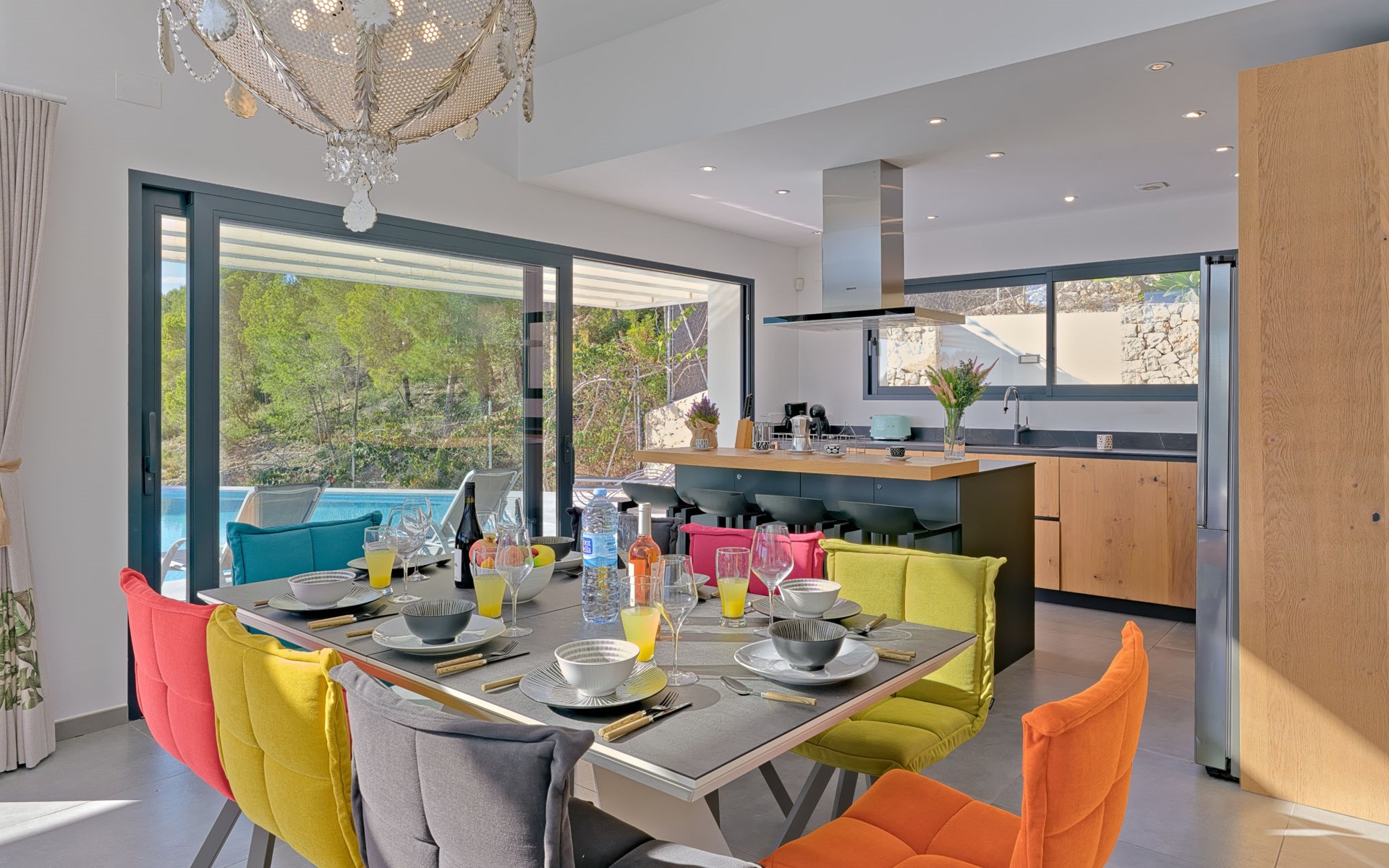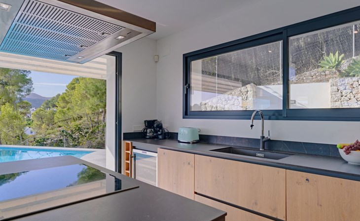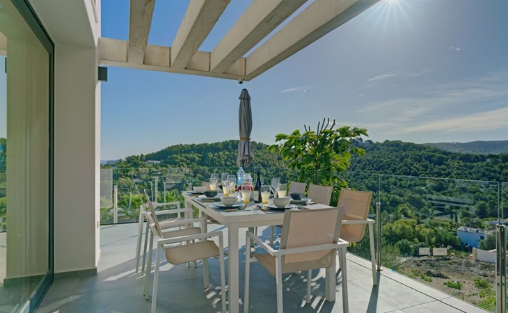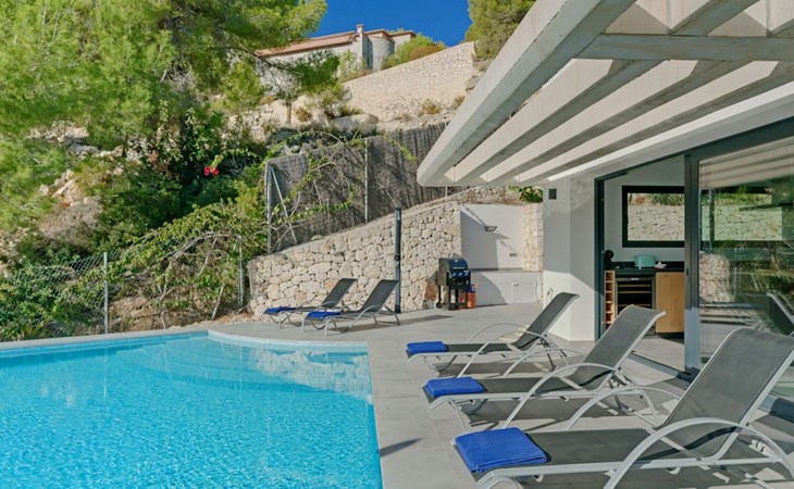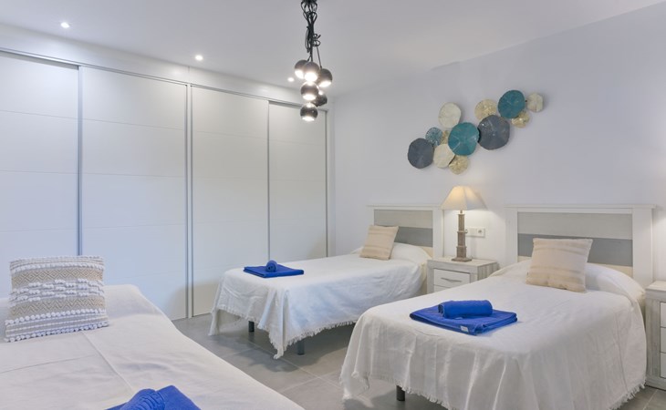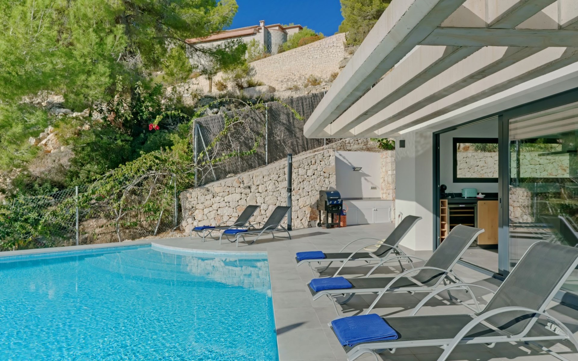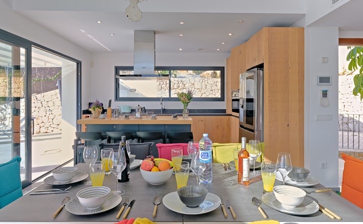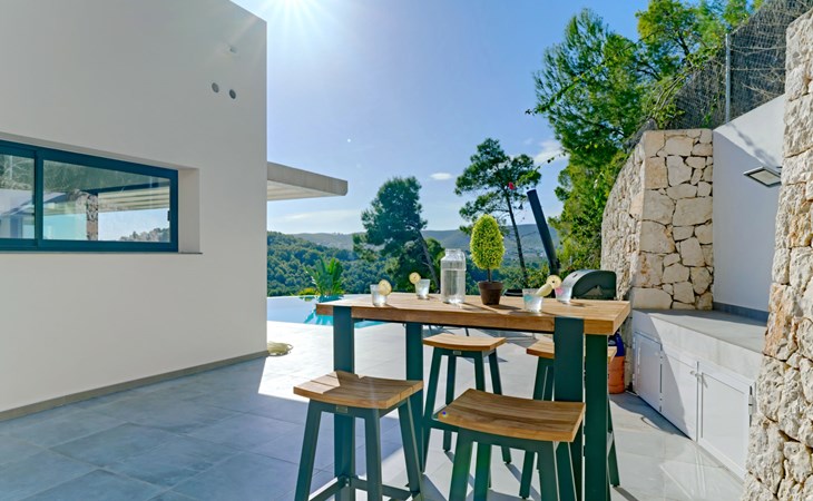 Zeer groot, zeer moderne, comfortabele villa "Juno", van 3 verdiepingen. In de wijk Capsades, rustige, zonnige ligging, 2.9 km van zee, 2.9 km van het strand. Voor alleengebruik: openluchtzwembad verwarmd (10 x 9 m, 40 - 190 cm diepte, seizoensgebonden beschikbaarheid: 01.Jan. - 31.Dec.) met zeewater en trap. Onregelmatig zwembad. Buitendouche, prieel, tuinmeubelen, barbecue, parkeerplaats (voor 6 auto's) op het terrein. Supermarkt 2.2 km, restaurant 2 km, café 2.5 km, bushalte 3 km, zandstrand "El Arenal" 1.9 km, stenenstrand "La Granadella" 9 km, rotsstrand "Cala Blanca Segundo Muntanyar" 3.9 km. Jachthaven 2.2 km, jachthaven 2.2 km, golfterrein (9 holes) 4.8 km, surfschool 2.2 km, zeilschool 2.2 km, tennis 2 km. De eigenaar accepteert geen jeugdgroepen.