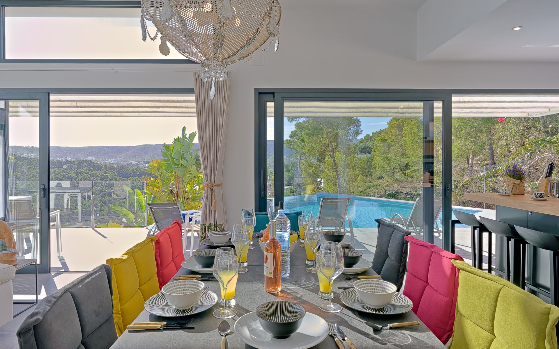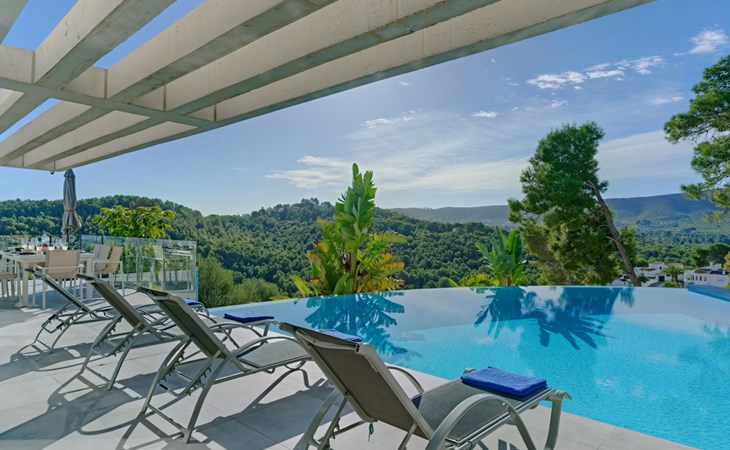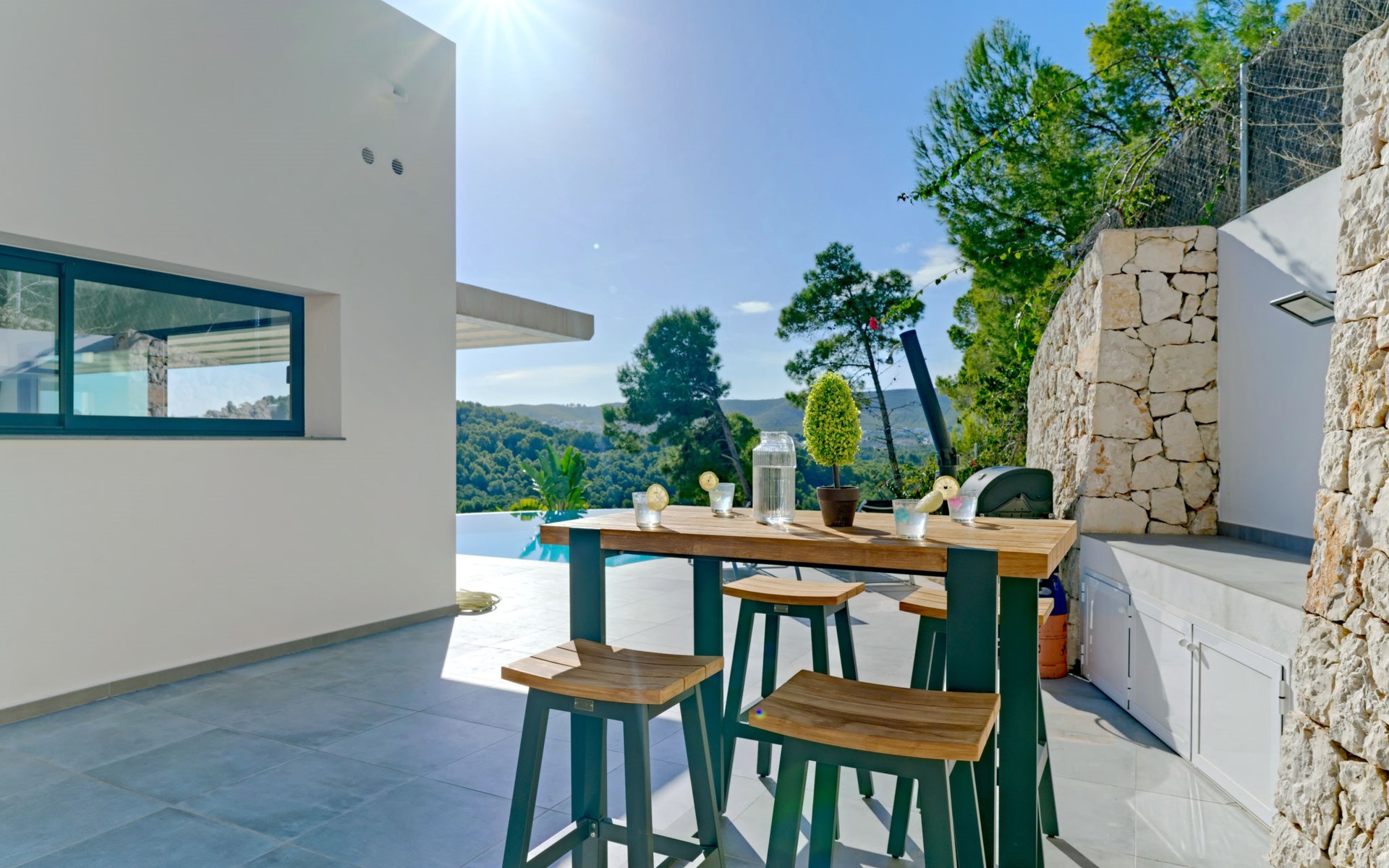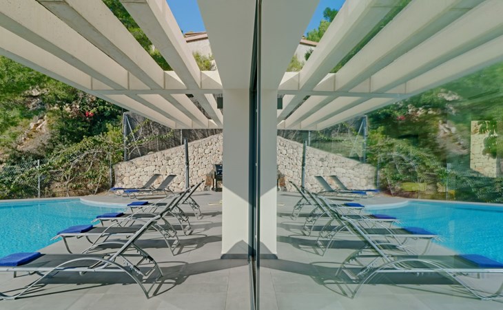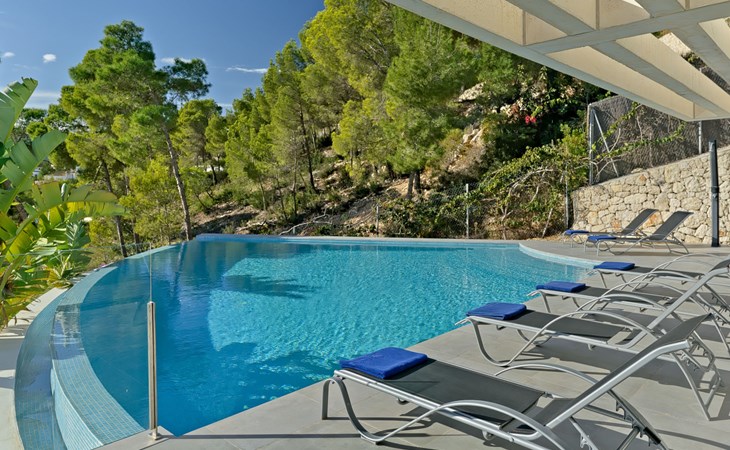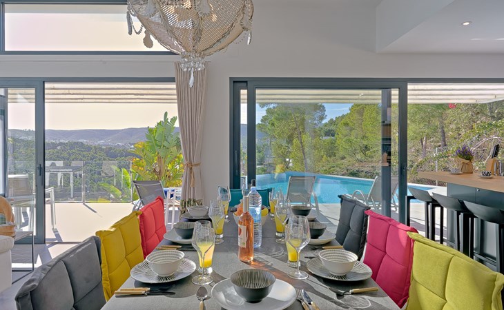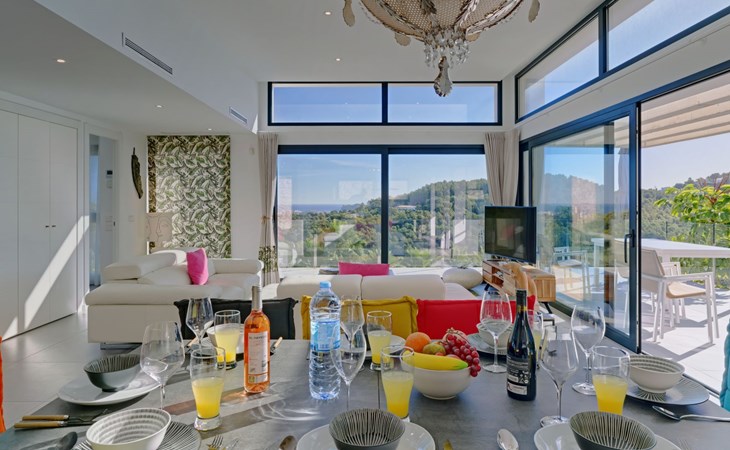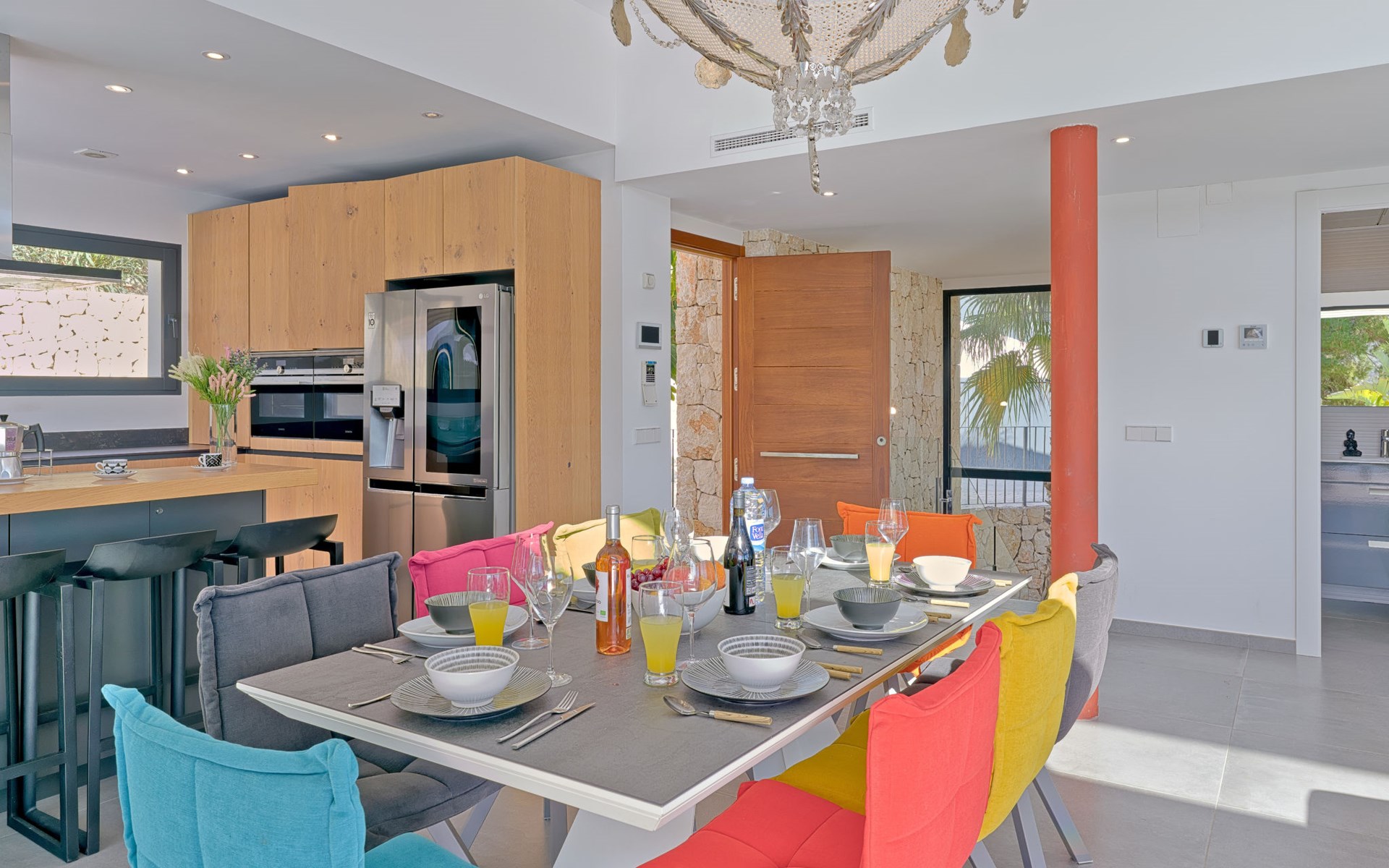 Zeer groot, zeer moderne, comfortabele villa "Juno", van 3 verdiepingen. In de wijk Capsades, rustige, zonnige ligging, 2.9 km van zee, 2.9 km van het strand. Voor alleengebruik: openluchtzwembad verwarmd (10 x 9 m, 40 - 190 cm diepte, seizoensgebonden beschikbaarheid: 01.Jan. - 31.Dec.) met zeewater en trap. Onregelmatig zwembad. Buitendouche, prieel, tuinmeubelen, barbecue, parkeerplaats (voor 6 auto's) op het terrein. Supermarkt 2.2 km, restaurant 2 km, café 2.5 km, bushalte 3 km, zandstrand "El Arenal" 1.9 km, stenenstrand "La Granadella" 9 km, rotsstrand "Cala Blanca Segundo Muntanyar" 3.9 km. Jachthaven 2.2 km, jachthaven 2.2 km, golfterrein (9 holes) 4.8 km, surfschool 2.2 km, zeilschool 2.2 km, tennis 2 km. De eigenaar accepteert geen jeugdgroepen.