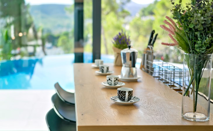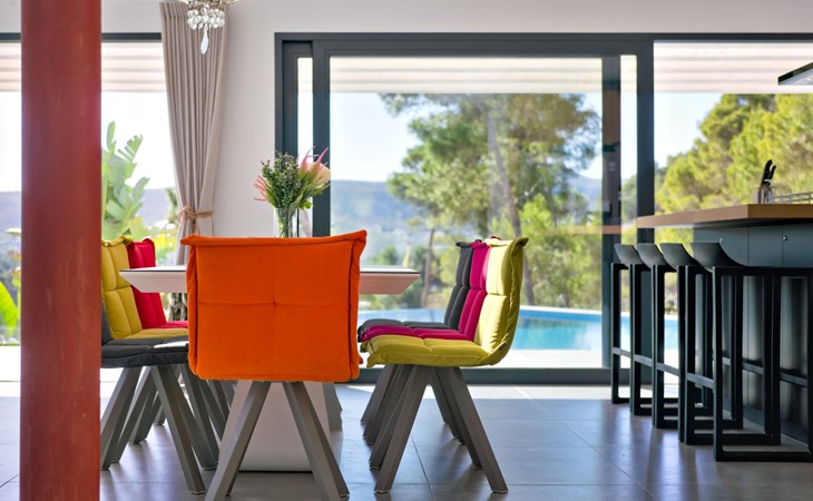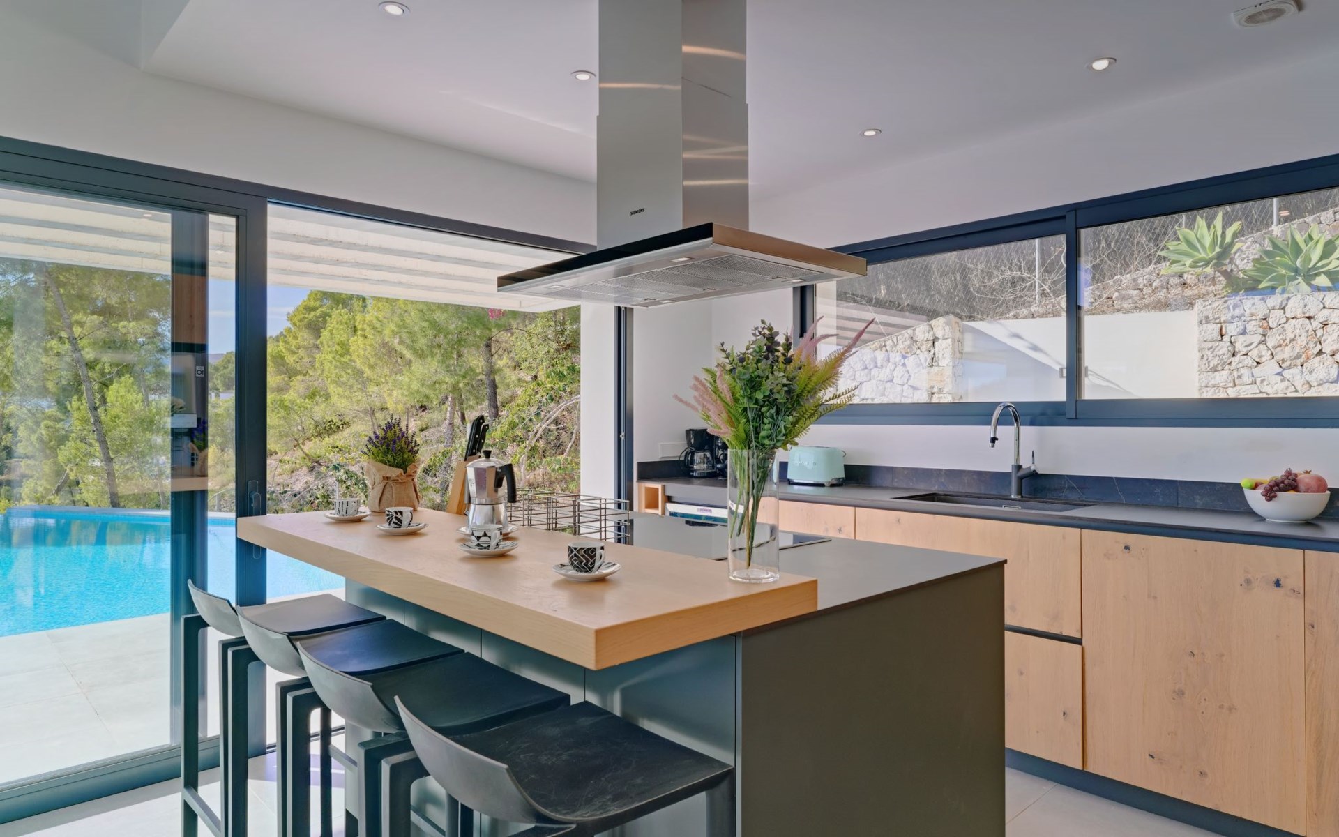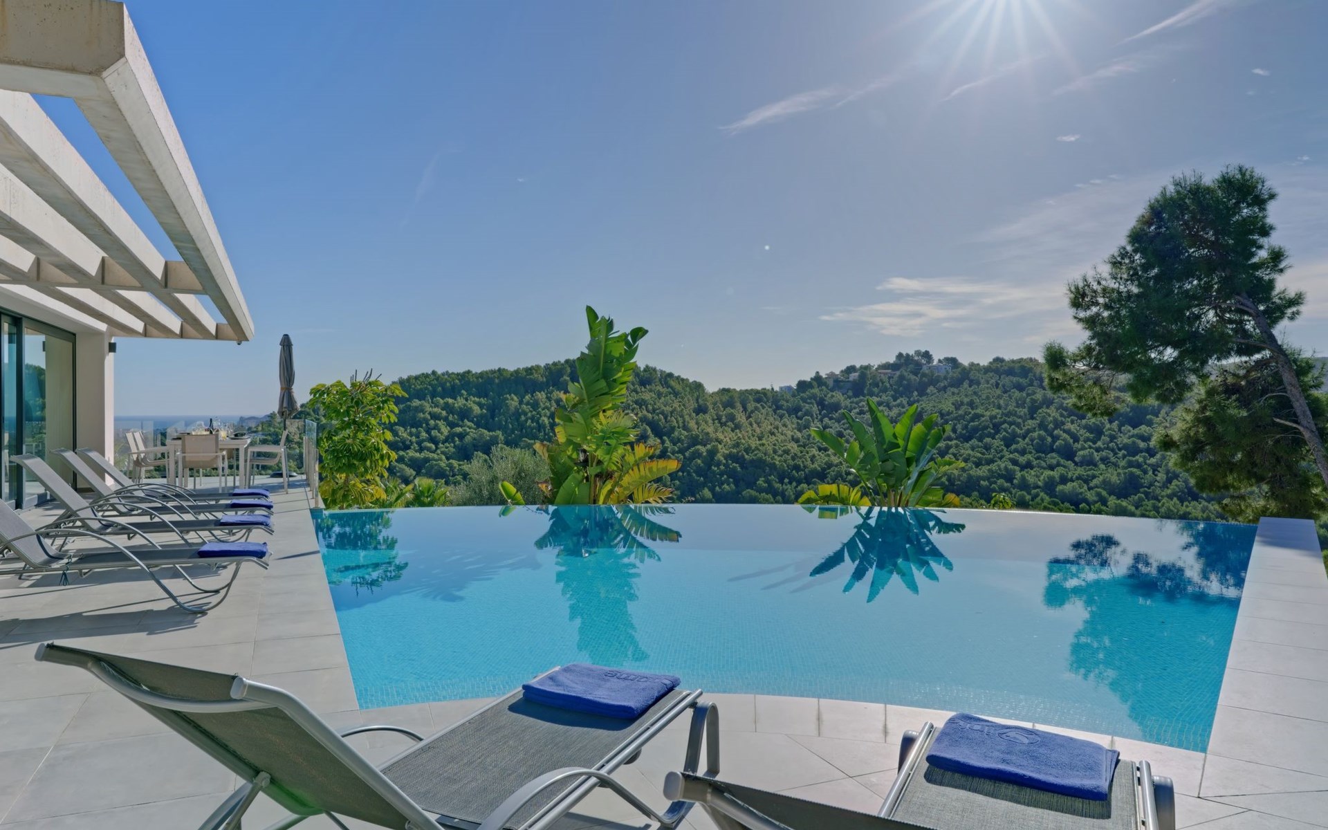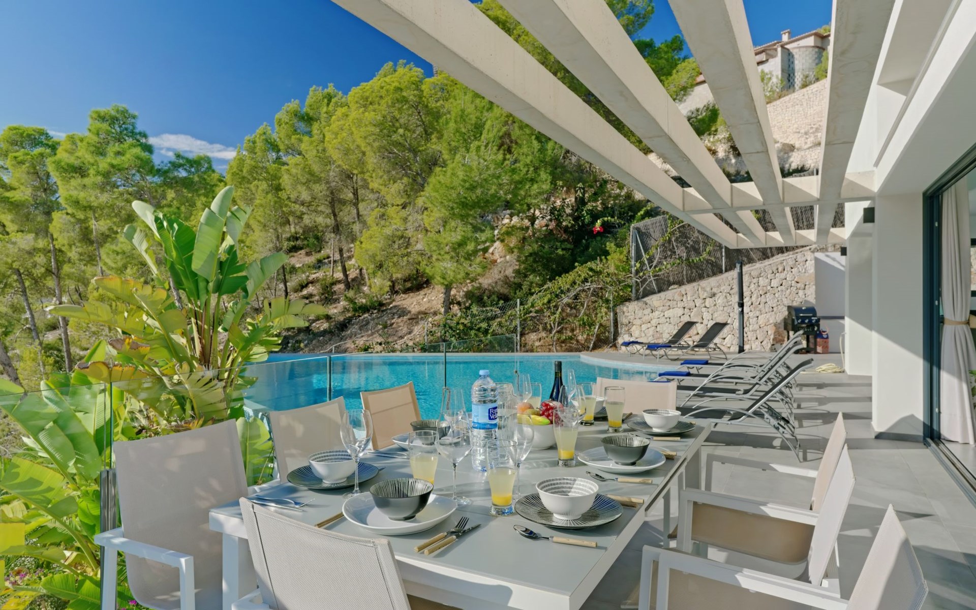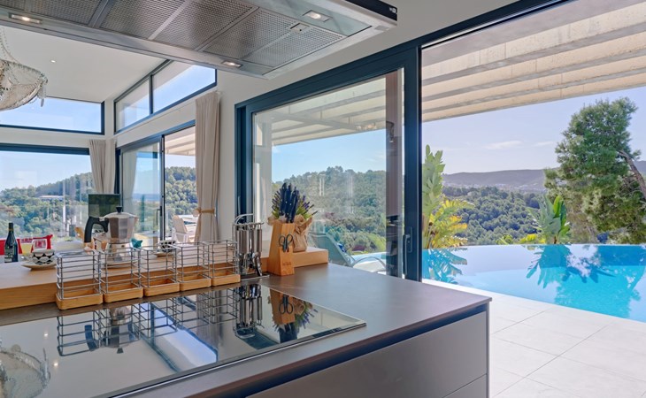 Zeer groot, zeer moderne, comfortabele villa "Juno", van 3 verdiepingen. In de wijk Capsades, rustige, zonnige ligging, 2.9 km van zee, 2.9 km van het strand. Voor alleengebruik: openluchtzwembad verwarmd (10 x 9 m, 40 - 190 cm diepte, seizoensgebonden beschikbaarheid: 01.Jan. - 31.Dec.) met zeewater en trap. Onregelmatig zwembad. Buitendouche, prieel, tuinmeubelen, barbecue, parkeerplaats (voor 6 auto's) op het terrein. Supermarkt 2.2 km, restaurant 2 km, café 2.5 km, bushalte 3 km, zandstrand "El Arenal" 1.9 km, stenenstrand "La Granadella" 9 km, rotsstrand "Cala Blanca Segundo Muntanyar" 3.9 km. Jachthaven 2.2 km, jachthaven 2.2 km, golfterrein (9 holes) 4.8 km, surfschool 2.2 km, zeilschool 2.2 km, tennis 2 km. De eigenaar accepteert geen jeugdgroepen.