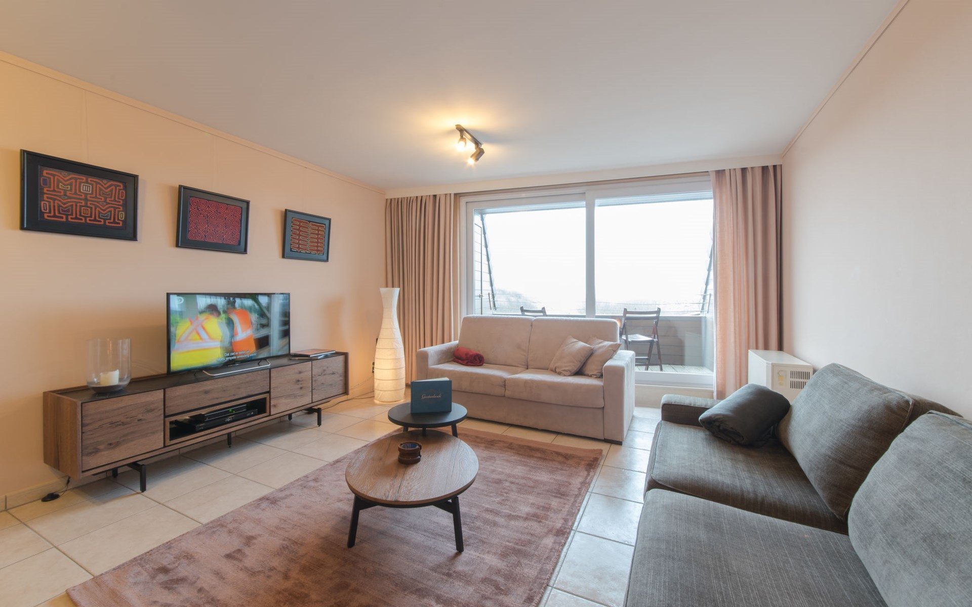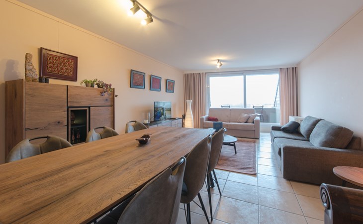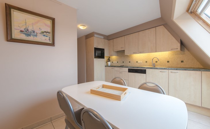 Residentie "Meiboom". In het centrum van Bredene, 150 m van zee, 100 m van het strand, de straat oversteken. In het huis: lift. Openbare parkeerplaatsen 50 m. Winkel 50 m, supermarkt, restaurant, bakkerij, fietsverhuur 50 m, tram 100 m, station "Oostende" 4 km, overdekt zwembad 4 km. Golfterrein (18 holes) 9 km, surfschool 200 m, tennis 2 km, midgetgolf 100 m. Attracties in de buurt: Markt (dinsdagmorgen) 100 m, De Haan 5 km, Brugge 30 km, Sea Life Blankenberge 14 km, familiepark De Sierk 3 km, Plopsaland De Panne 43 km. Wandelgebied Landerijenpad 12 km, Spuikompad 10 km, Duinpanpad 6 km. De omgeving is gevoelig voor geluidsoverlast. Gelieve geen lawaai te maken en de rust te bewaren.