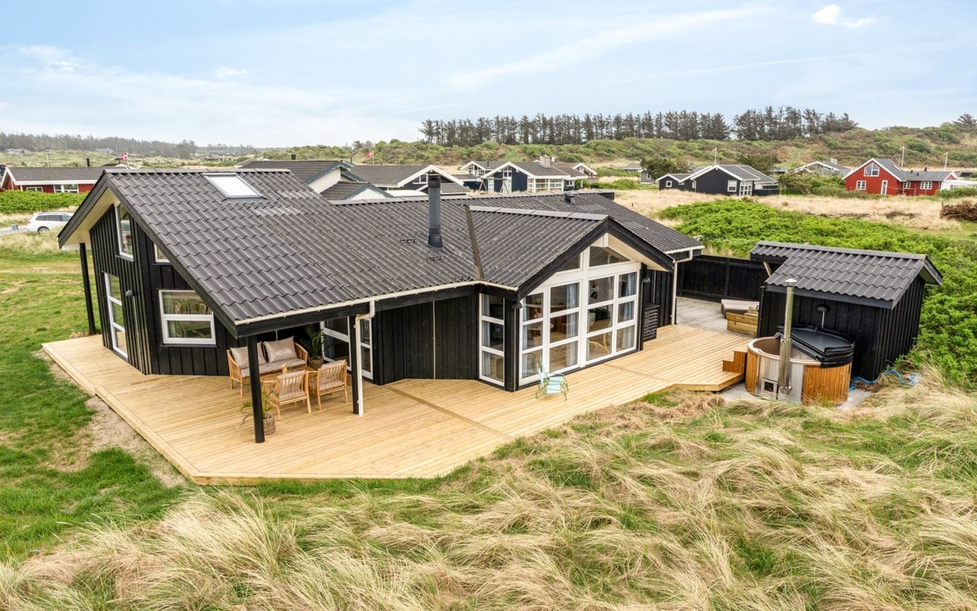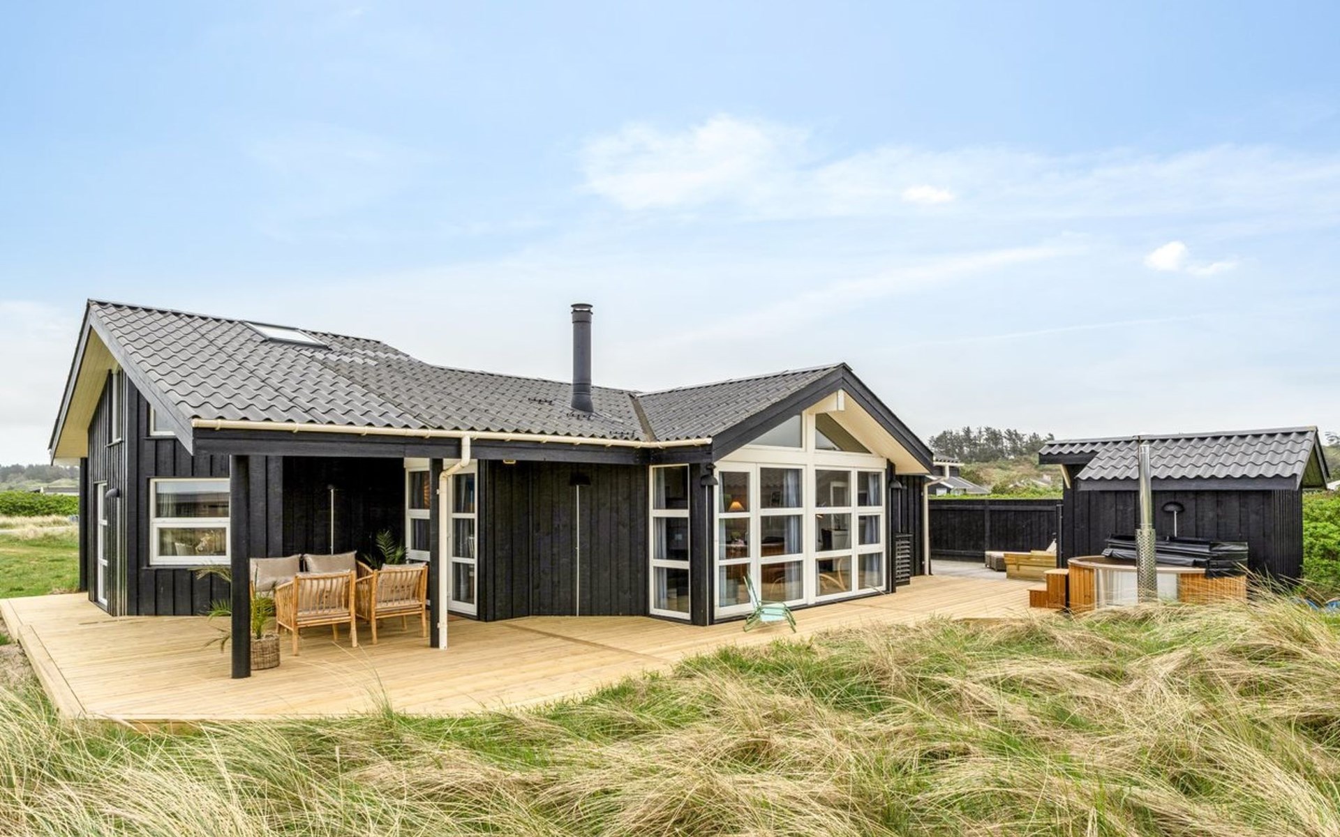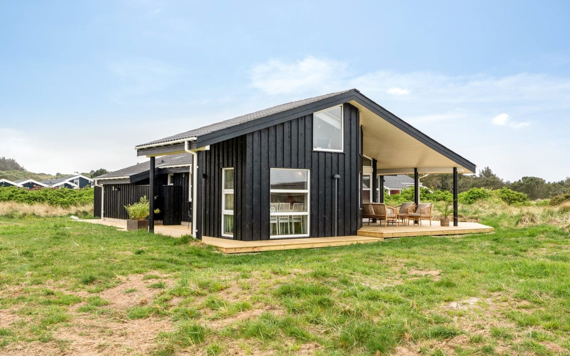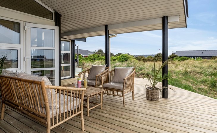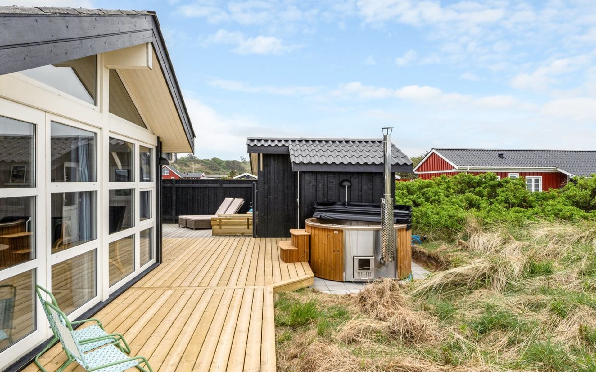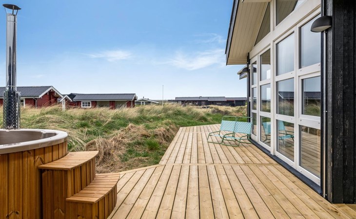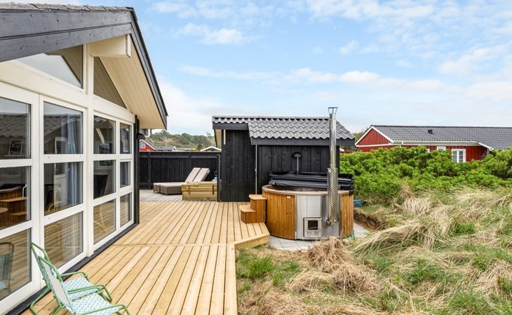 Eengezinswoning, bouwjaar 2001. 280 m van zee. Voor alleengebruik: wild terrein 1.275 m2. Buitendouche, barbecue, kinderspeelplaats. In het huis: wasmachine. Parkeerplaats bij het huis. Levensmiddelenwinkel 800 m. De eigenaar accepteert geen jeugdgroepen.
