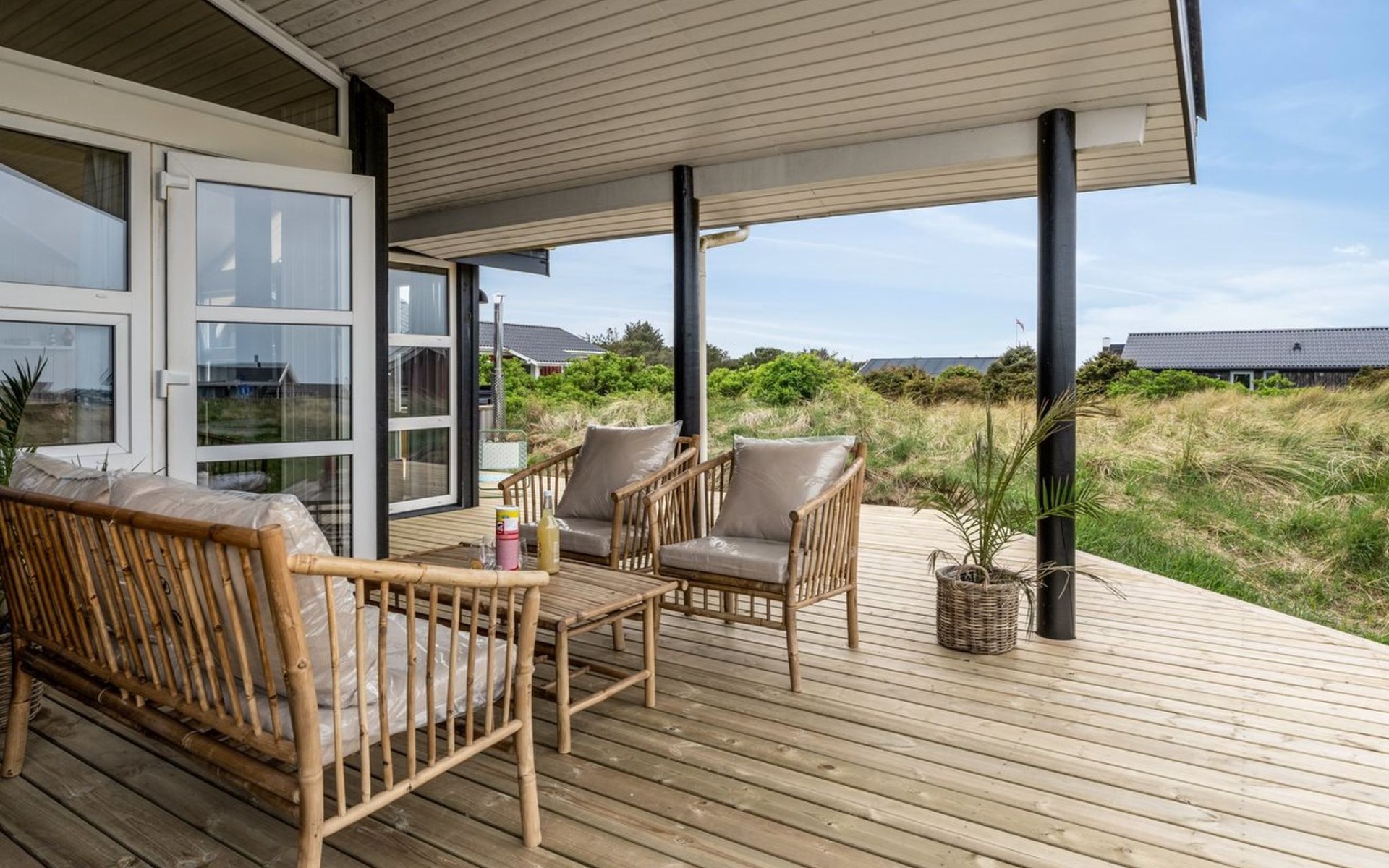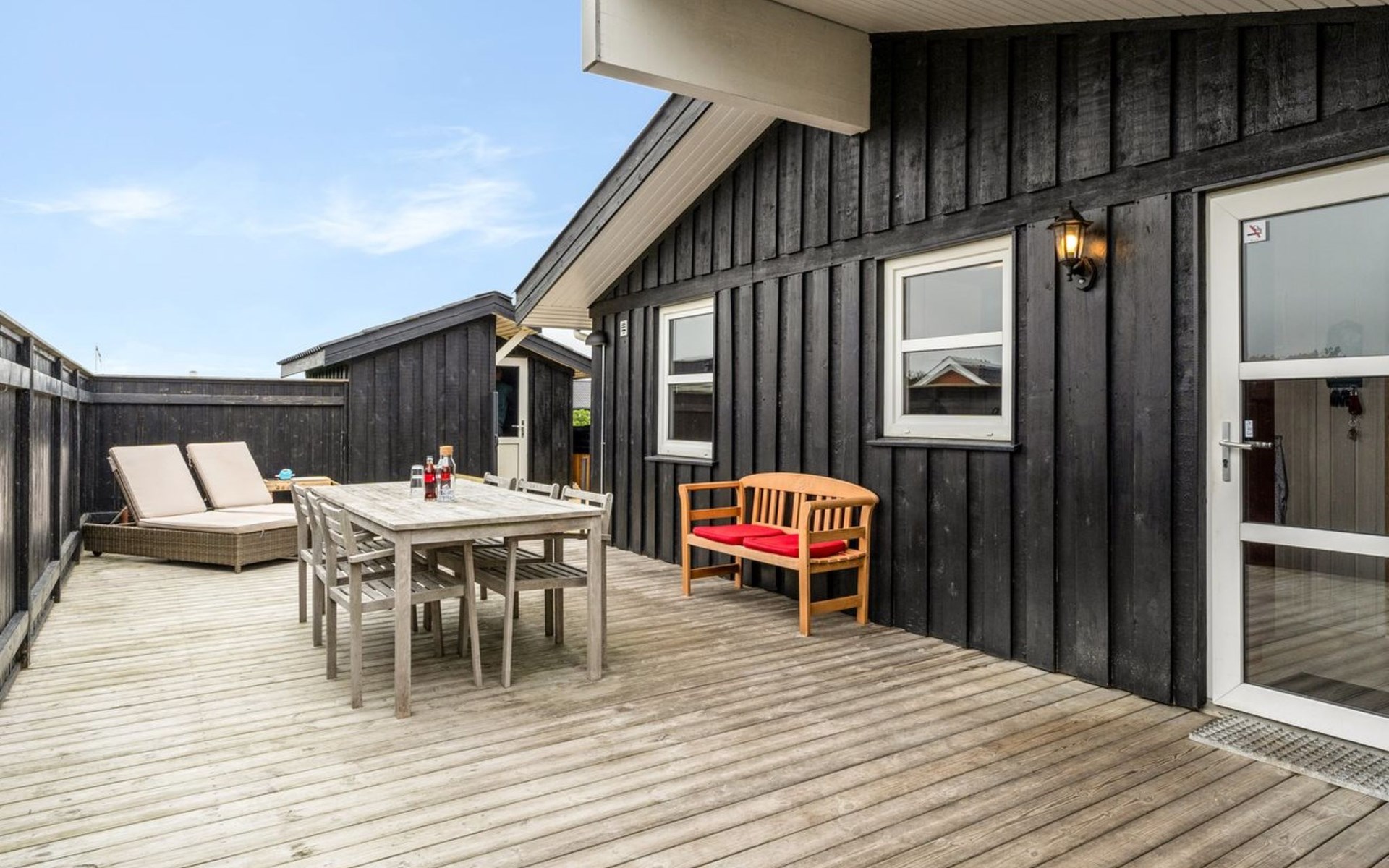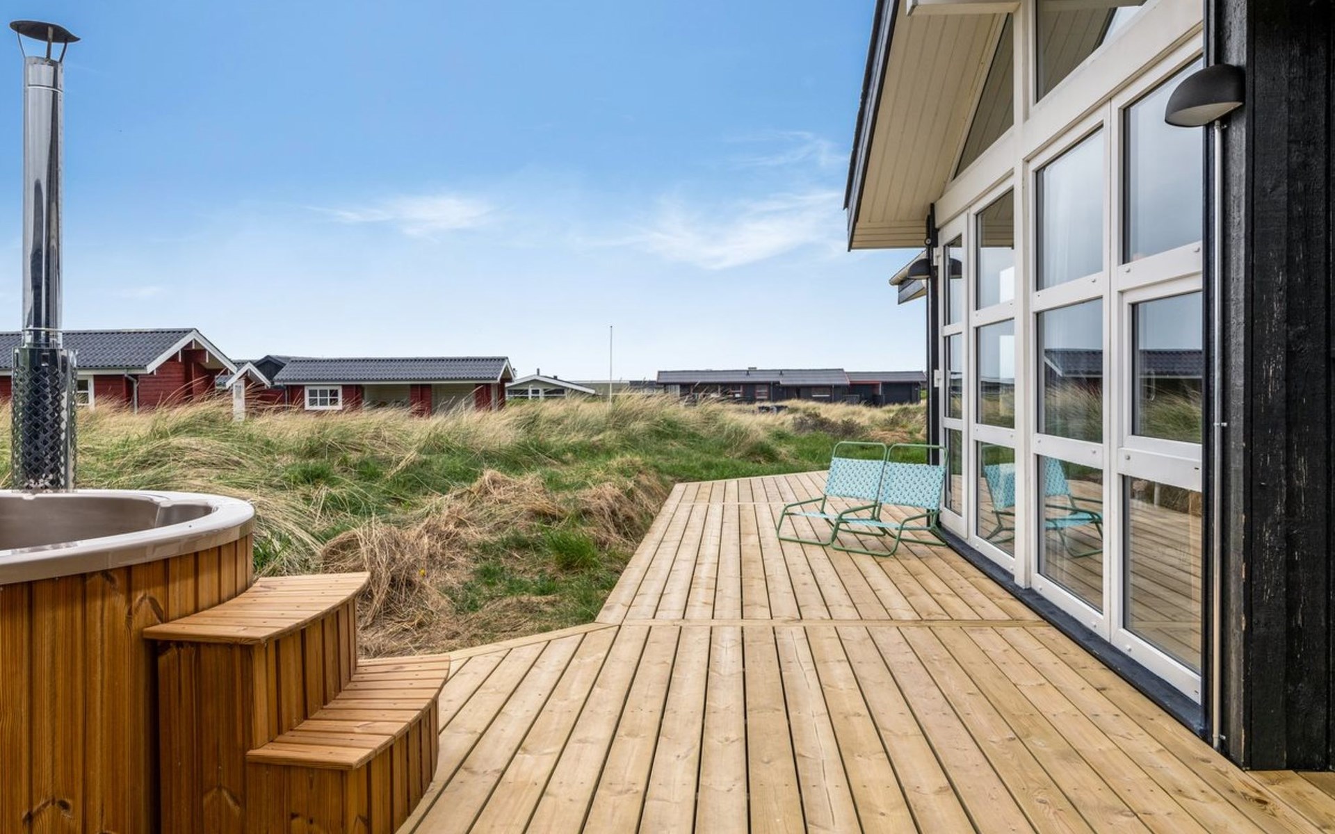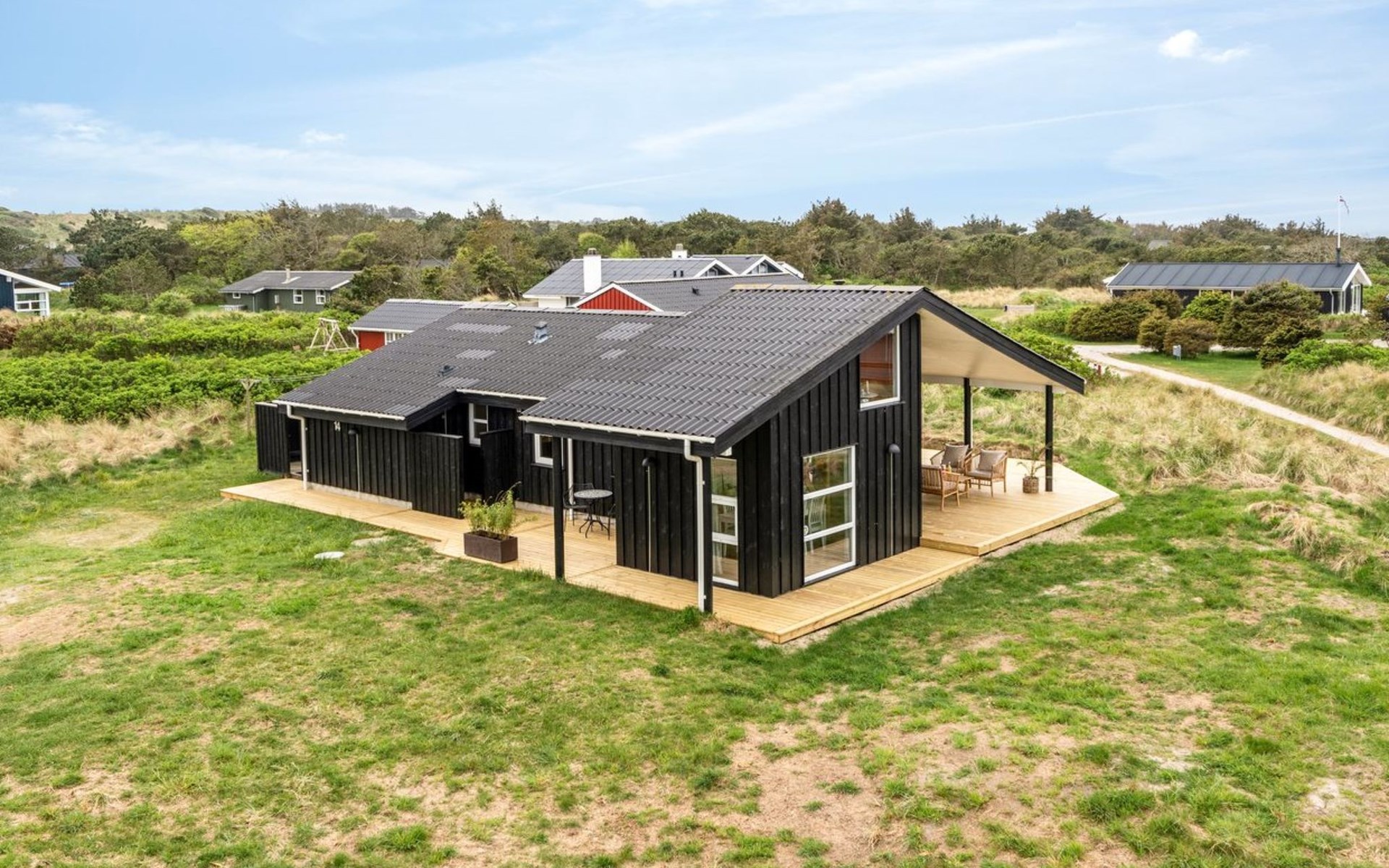Eengezinswoning, bouwjaar 2001. 280 m van zee. Voor alleengebruik: wild terrein 1.275 m2. Buitendouche, barbecue, kinderspeelplaats. In het huis: wasmachine. Parkeerplaats bij het huis. Levensmiddelenwinkel 800 m. De eigenaar accepteert geen jeugdgroepen.