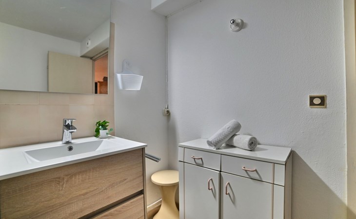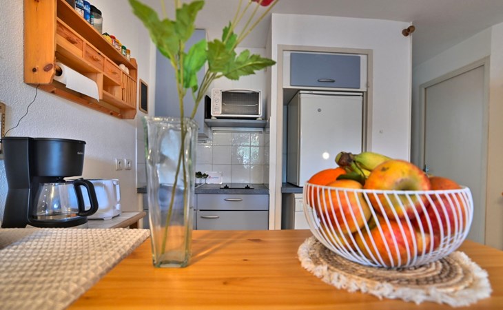 Residentie "l'Oasis", van 4 verdiepingen, omgeven door bomen. In de plaats, 5 km van het centrum van Dolus d'Oleron, 800 m van de bosrand, 1.2 km van zee, 1.2 km van het strand. Voor medegebruik: terrein (omheind), planten en bomen, openluchtzwembad hoekig omheind (6 x 12 m, 72 m2, 185 cm diepte, seizoensgebonden beschikbaarheid: 01.Jun. - 15.Sep.). Buitendouche, tennisbaan (2 x hard court), jeu de boules. In het complex: parkeerplaats. Winkel 5 km, levensmiddelenwinkel 5 km, supermarkt 4 km, winkelcentrum 4 km, restaurant 4 km, bar 4 km, bakkerij 4 km, bushalte"Les Chasseries" (Dolus)" 4 km, station "Rochefort sur mer" 40 km, zandstrand "plage de vert-bois" 1.2 km. Jachthaven 7 km, golfterrein (9 holes) 9 km, surfschool 1.2 km, zeilschool 4 km. Attracties in de buurt: Centre aquatique iléo 5 km, phare de Chassiron 25 km, port de la cotinière 7 km, corderie royale rochefort 39 km, la rochelle 76 km. Auto noodzakelijk.