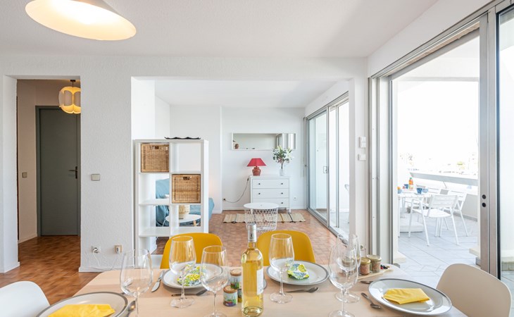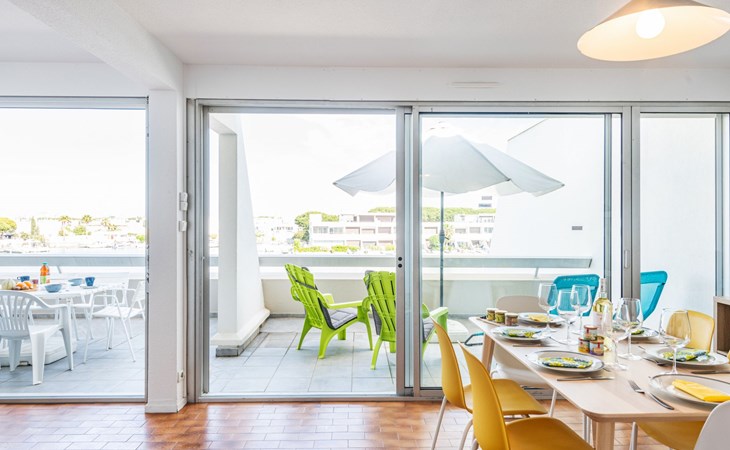Residentie "Les Arpèges". In de wijk les Marinas II, in de plaats, 500 m van zee, 500 m van het strand. Winkel 600 m, levensmiddelenwinkel, supermarkt 3 km, restaurant 600 m, station "Grau du roi" 6 km, zandstrand "Sud" 500 m, openluchtzwembad 5.2 km, thermaalbad "Thalazur" 1.2 km. Jachthaven 500 m. Attracties in de buurt: Casino Flamingo 3.9 km, Seacquarium 5 km, Les Arènes Grau du Roi 6.3 km, Grande Motte 10 km, Aigues-Mortes 12 km, Nîmes 54 m. Wandelgebied Réserve naturelle de Camargue. De sleuteloverdracht vindt plaats bij het agentschap Interhome in Port Camargue, 4 km. Vliegveld 24 km van het huis.