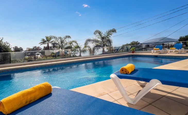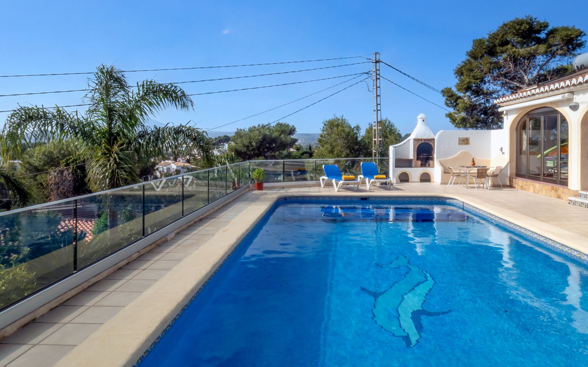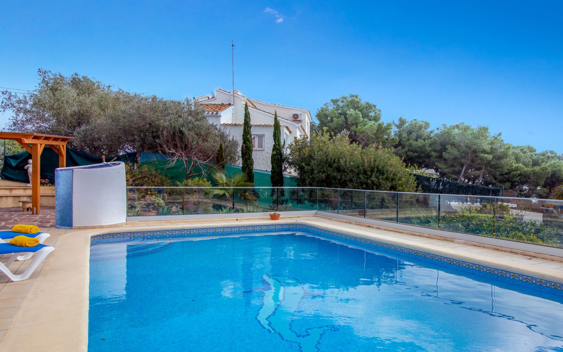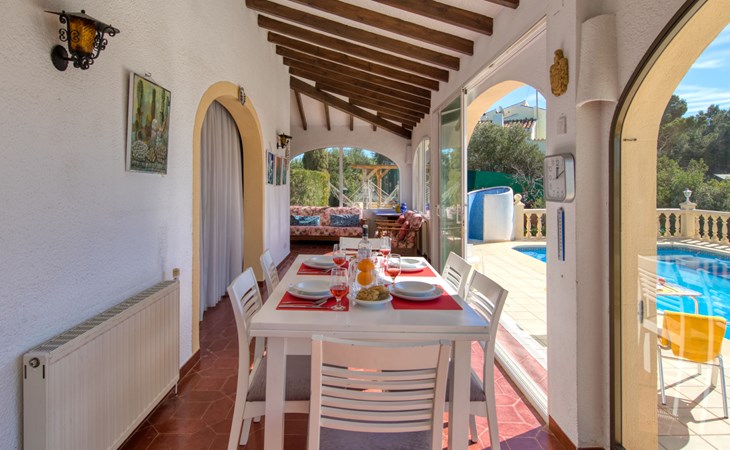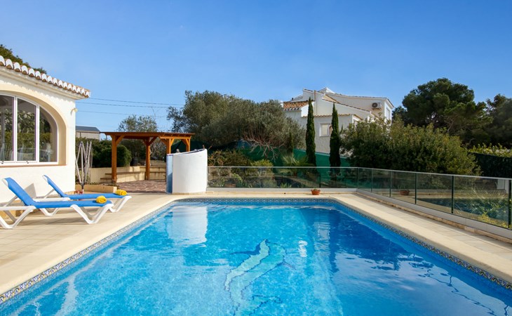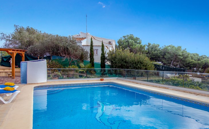 Huis "Marina". In de wijk Marina, 1 km van zee. Voor alleengebruik: terrein 1.400 m2 (omheind) met planten en bomen, openluchtzwembad (5 x 10 m, seizoensgebonden beschikbaarheid: 01.Jan. - 31.Dec.). In het huis: dakterras, centrale verwarming. Supermarkt 3.3 km, restaurant 3.3 km, bar 3.3 km, bushalte "Toscamar" 3.7 km, zandstrand "Arenal" 7.4 km, baai 1 km. Golfterrein (9 holes) 7 km, tennis 3.3 km. Groepen jongeren uitsluitend op aanvraag.