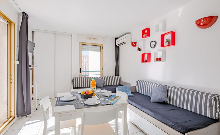 Port Fréjus: Residentie "L'Open", van 5 verdiepingen. 190 appartementen in de woning. 150 m van zee, 150 m van het strand. Voor medegebruik: openluchtzwembad hoekig (10 x 20 m, 110 - 180 cm diepte, seizoensgebonden beschikbaarheid: 15.Mei. - 15.Okt.) met trap. In het huis: lift. Winkel 100 m, supermarkt 1 km, restaurant, bar 50 m, bushalte "Port Fréjus Ouest" 80 m, station "Saint-Raphaël Valescure" 2 km, zandstrand "Base Nature" 500 m, duikschool 20 m, openluchtzwembad 500 m, thermaalbad "Thalassotherapie" 50 m. Jachthaven 10 m, golfterrein (18 holes) 8 km. Attracties in de buurt: Base nature 200 m, Cannes 40 km, Saint-tropez 40 km, Nice 70 km, Gorges du Verdon 90 km. Bekende meren kunnen gemakkelijk worden bereikt: Sainte-Croix 90 km. Wandelgebied Estérel 5 km. De sleuteloverdracht vindt plaats bij het agentschap Interhome in Port Fréjus.