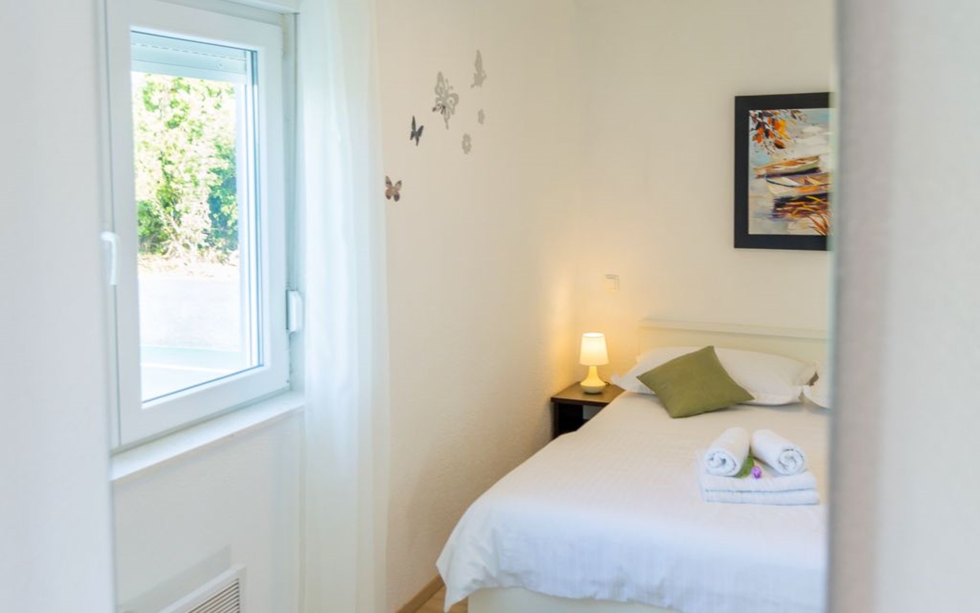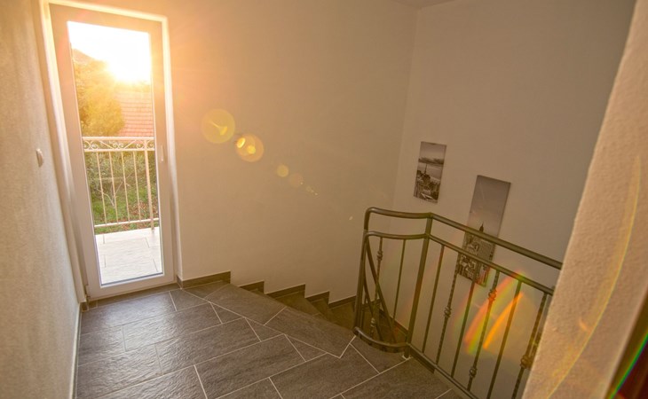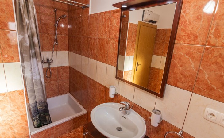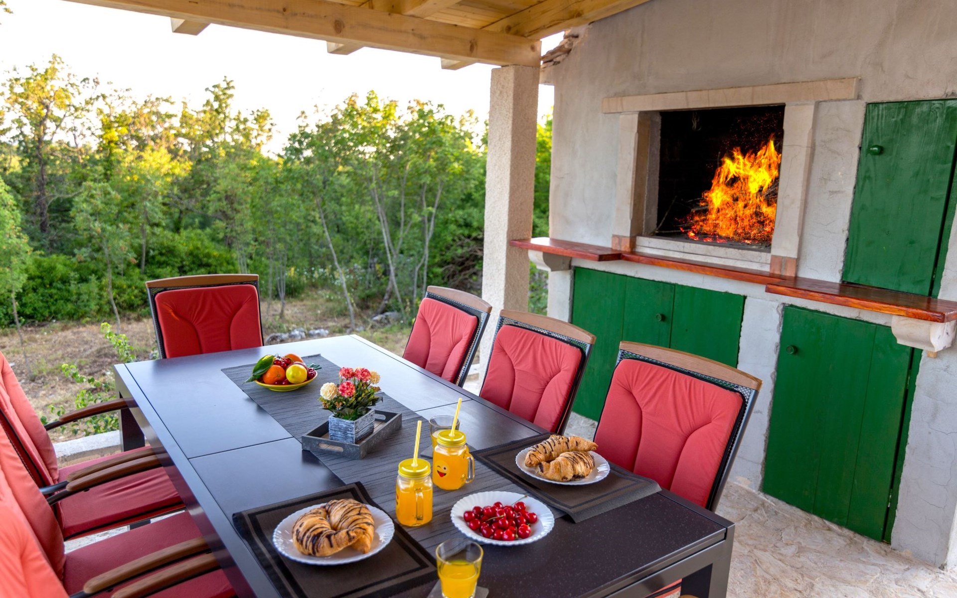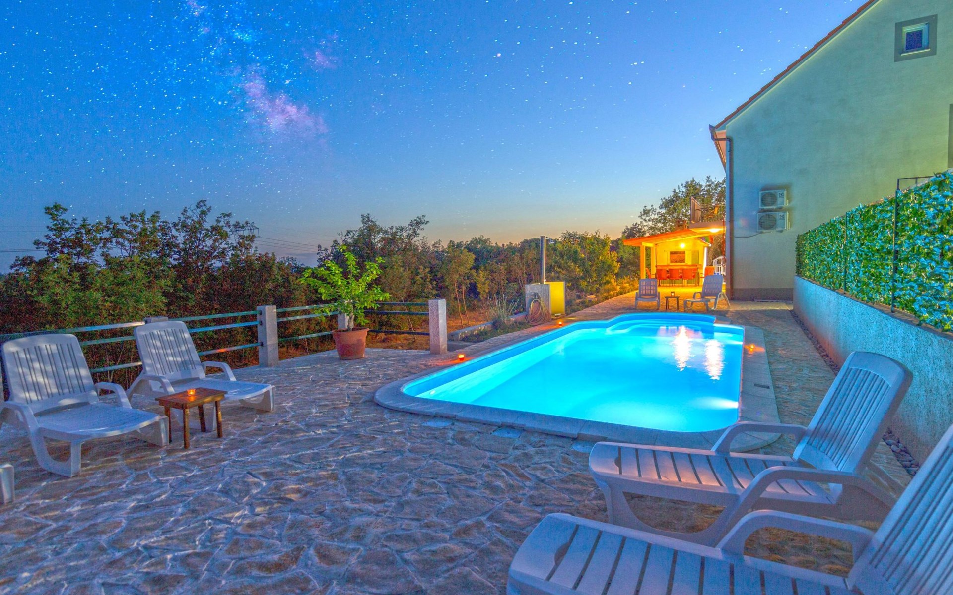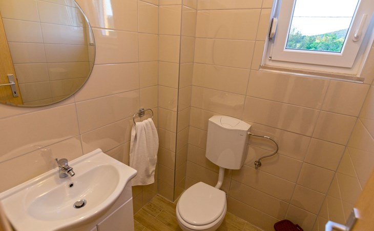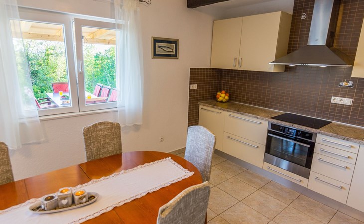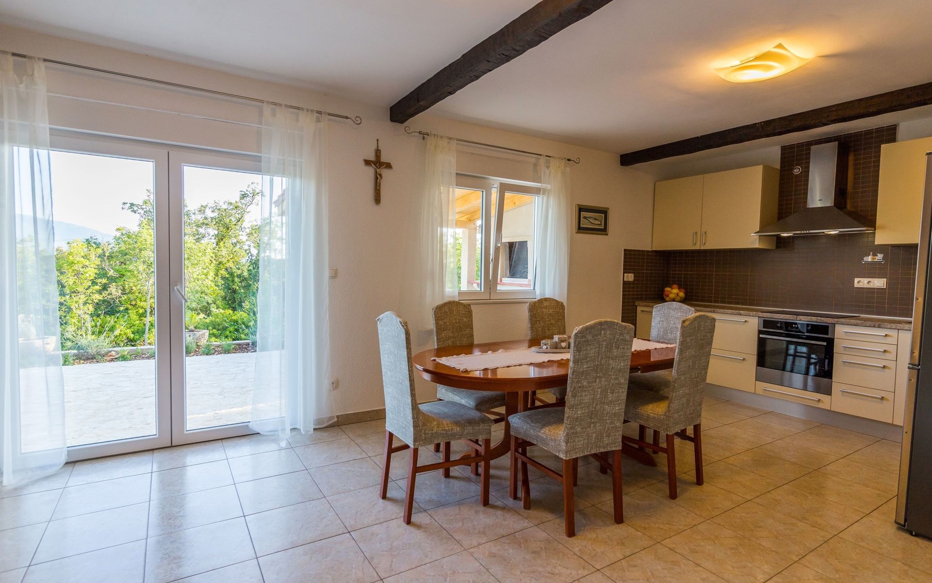 The house is a two-story, detached property located in Lovreć, near the town of Imotski, in the Split-Dalmatia County, Croatia. The property comprises a ground floor, first floor, and a roof. Both the ground floor and the first floor are separate apartments, each equipped with a kitchen, living room, dining area, two bedrooms, a bathroom, and a toilet. The living room on the first floor opens onto a balcony, while the ground floor opens to an outdoor area with a loggia, a swimming pool, a tennis court, and a children's playground. The tennis court is multifunctional and can also be used for mini football or basketball. The green areas around the house are mostly part of the property, so it’s not a problem if tennis or other balls end up there. The pool is private, spacious enough for a larger number of users, with heated water and an outdoor shower. The house is oriented north-south, with bedrooms on the north side and living areas on the south side. There are no neighbors on the south side of the house, ensuring privacy. On the north side, there is only a country road and parking spaces for cars, with a fence to close off the parking area. The entire house is rented as a single unit and can accommodate 1-12 people, ensuring that it is never shared between two groups or families who do not know each other. It is ideal for family vacations with children or for a group of friends wanting to spend their holiday together. The property is relatively close to larger well-known centers in Split-Dalmatia County (Imotski, Split, Omiš, Makarska, Dubrovnik).