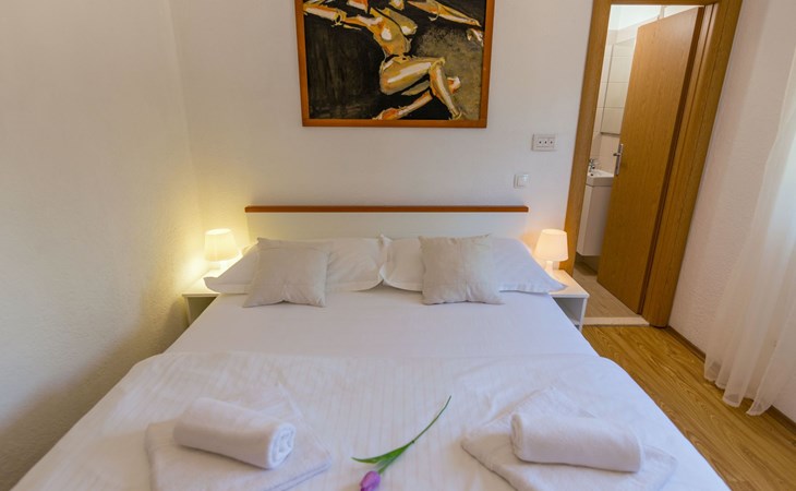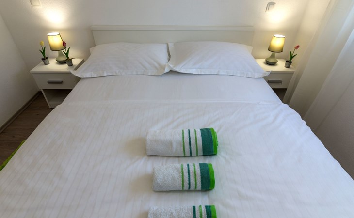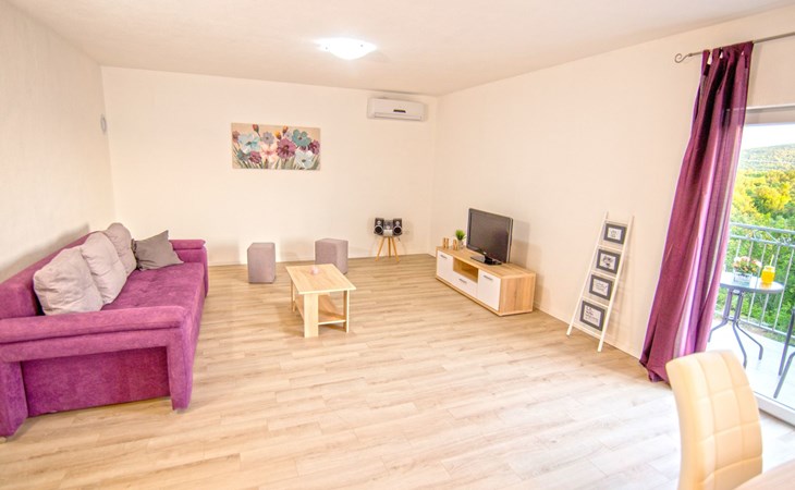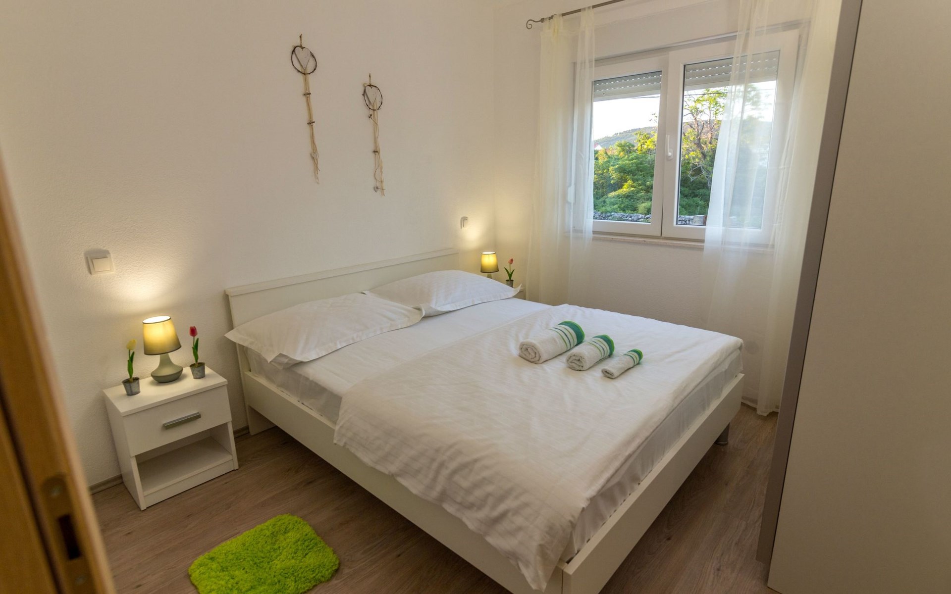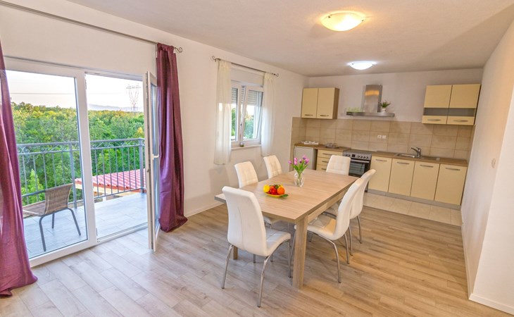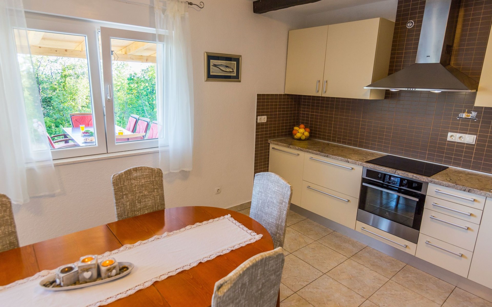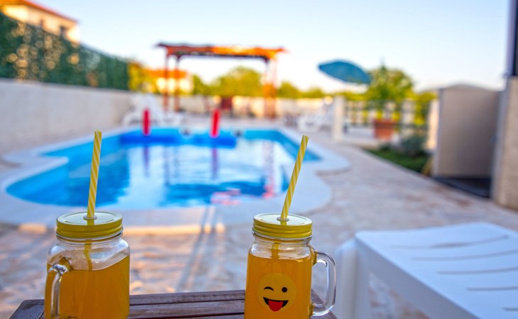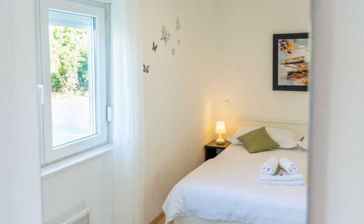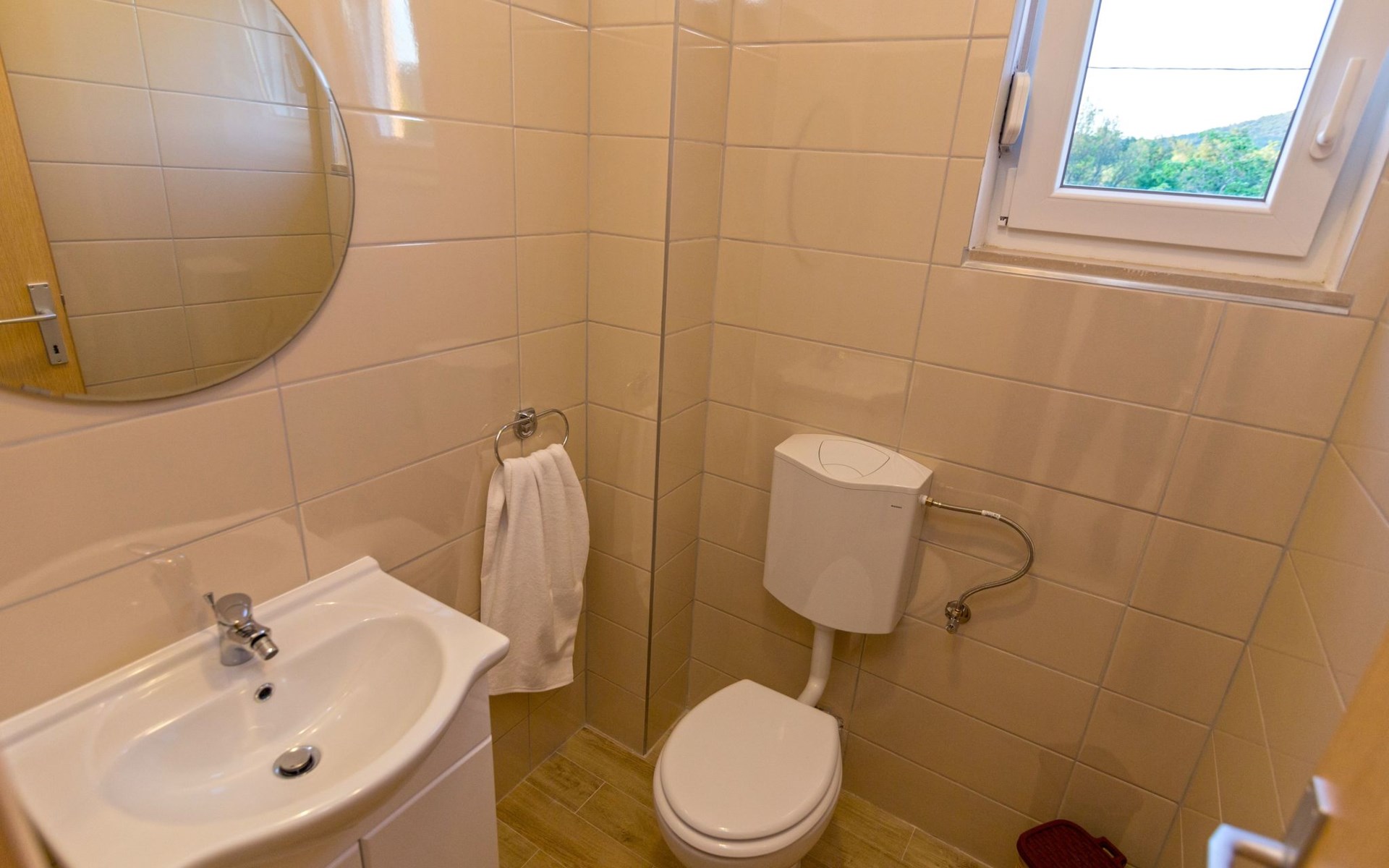 The house is a two-story, detached property located in Lovreć, near the town of Imotski, in the Split-Dalmatia County, Croatia. The property comprises a ground floor, first floor, and a roof. Both the ground floor and the first floor are separate apartments, each equipped with a kitchen, living room, dining area, two bedrooms, a bathroom, and a toilet. The living room on the first floor opens onto a balcony, while the ground floor opens to an outdoor area with a loggia, a swimming pool, a tennis court, and a children's playground. The tennis court is multifunctional and can also be used for mini football or basketball. The green areas around the house are mostly part of the property, so it’s not a problem if tennis or other balls end up there. The pool is private, spacious enough for a larger number of users, with heated water and an outdoor shower. The house is oriented north-south, with bedrooms on the north side and living areas on the south side. There are no neighbors on the south side of the house, ensuring privacy. On the north side, there is only a country road and parking spaces for cars, with a fence to close off the parking area. The entire house is rented as a single unit and can accommodate 1-12 people, ensuring that it is never shared between two groups or families who do not know each other. It is ideal for family vacations with children or for a group of friends wanting to spend their holiday together. The property is relatively close to larger well-known centers in Split-Dalmatia County (Imotski, Split, Omiš, Makarska, Dubrovnik).